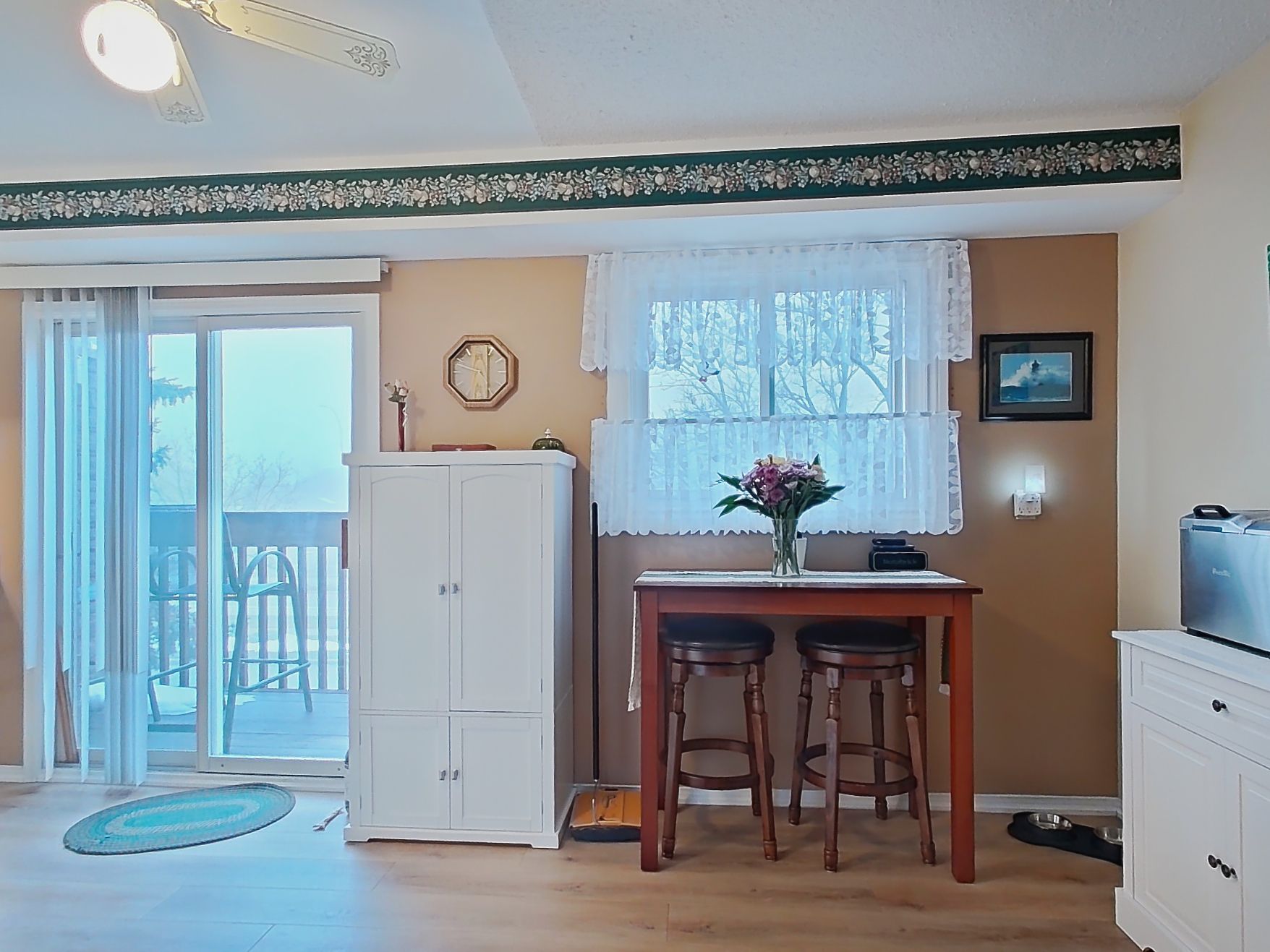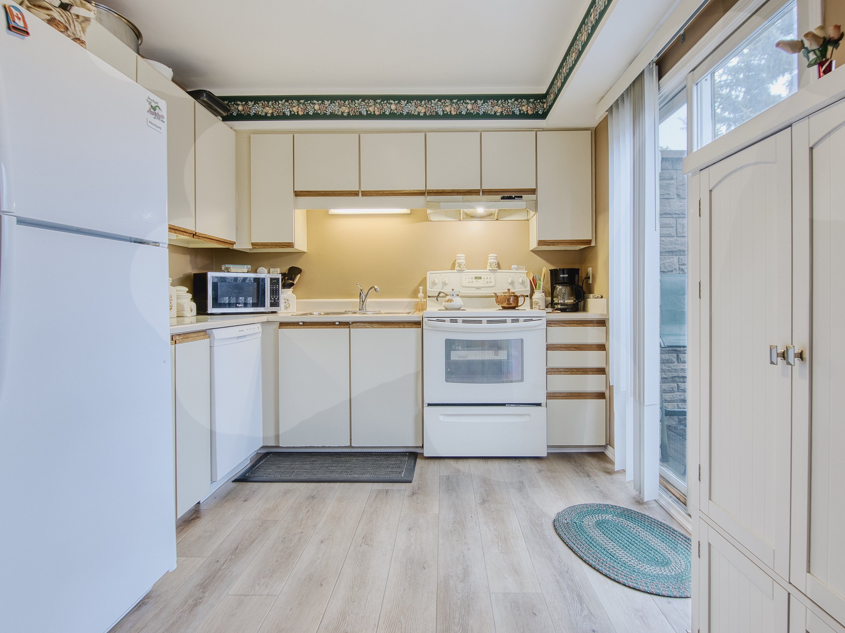 • Eat-in kitchen with balcony and separate dining room for versatility.