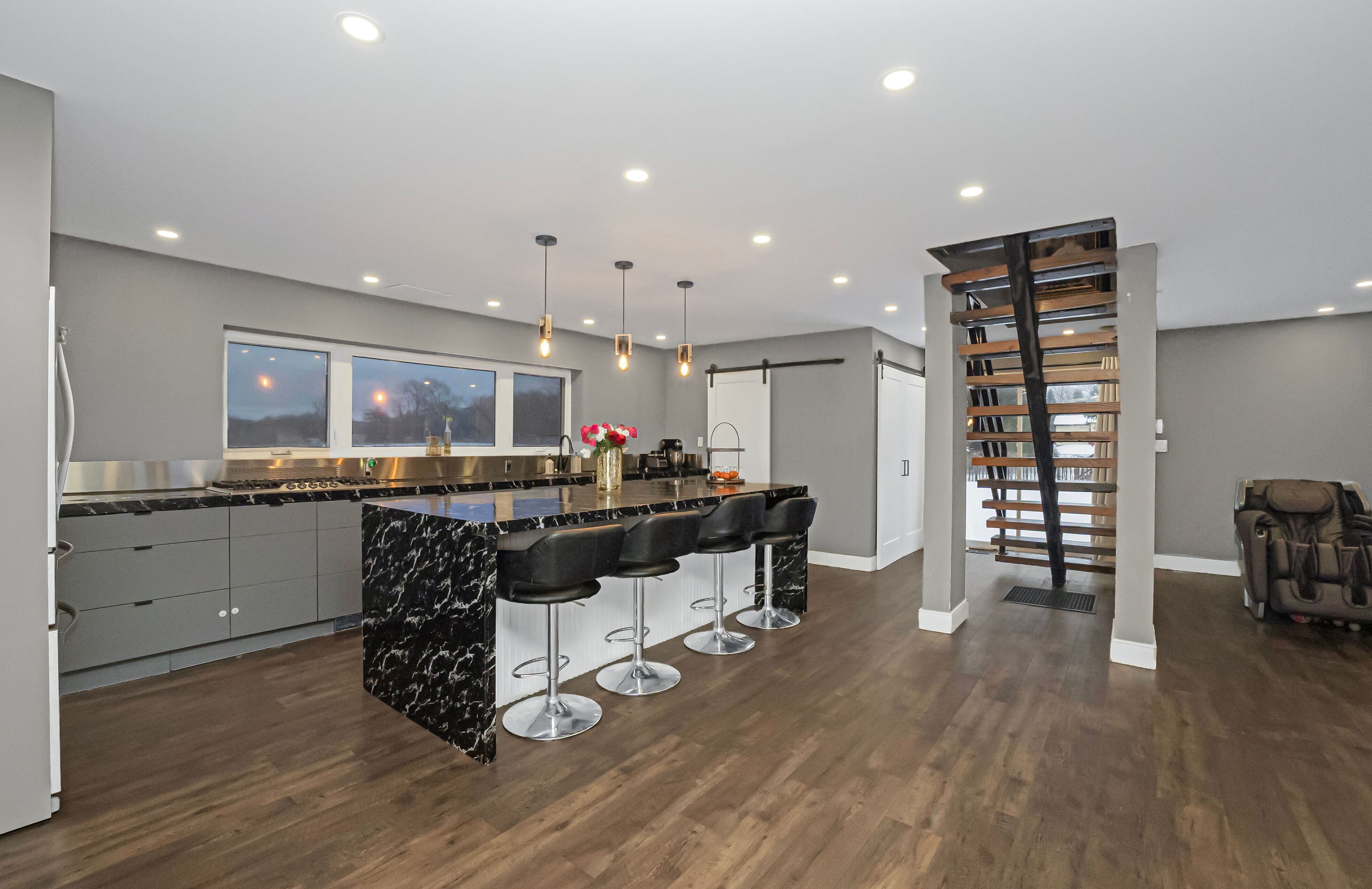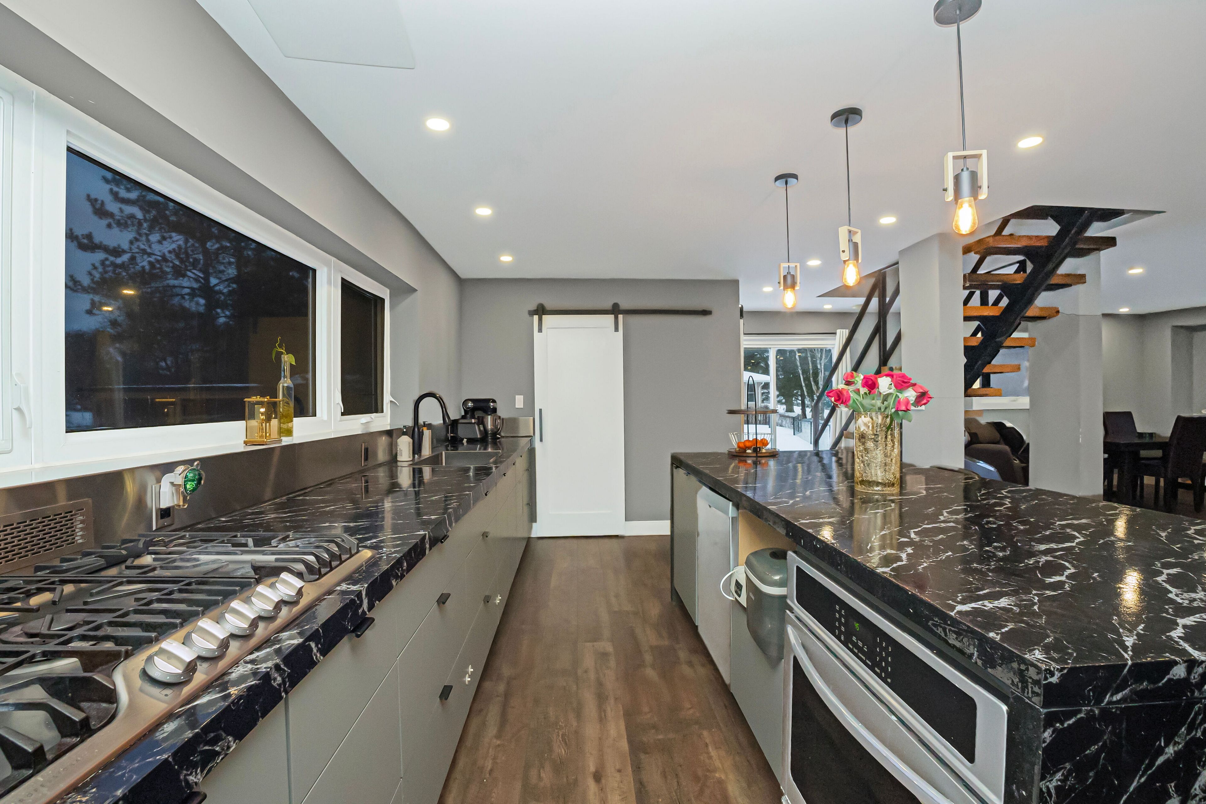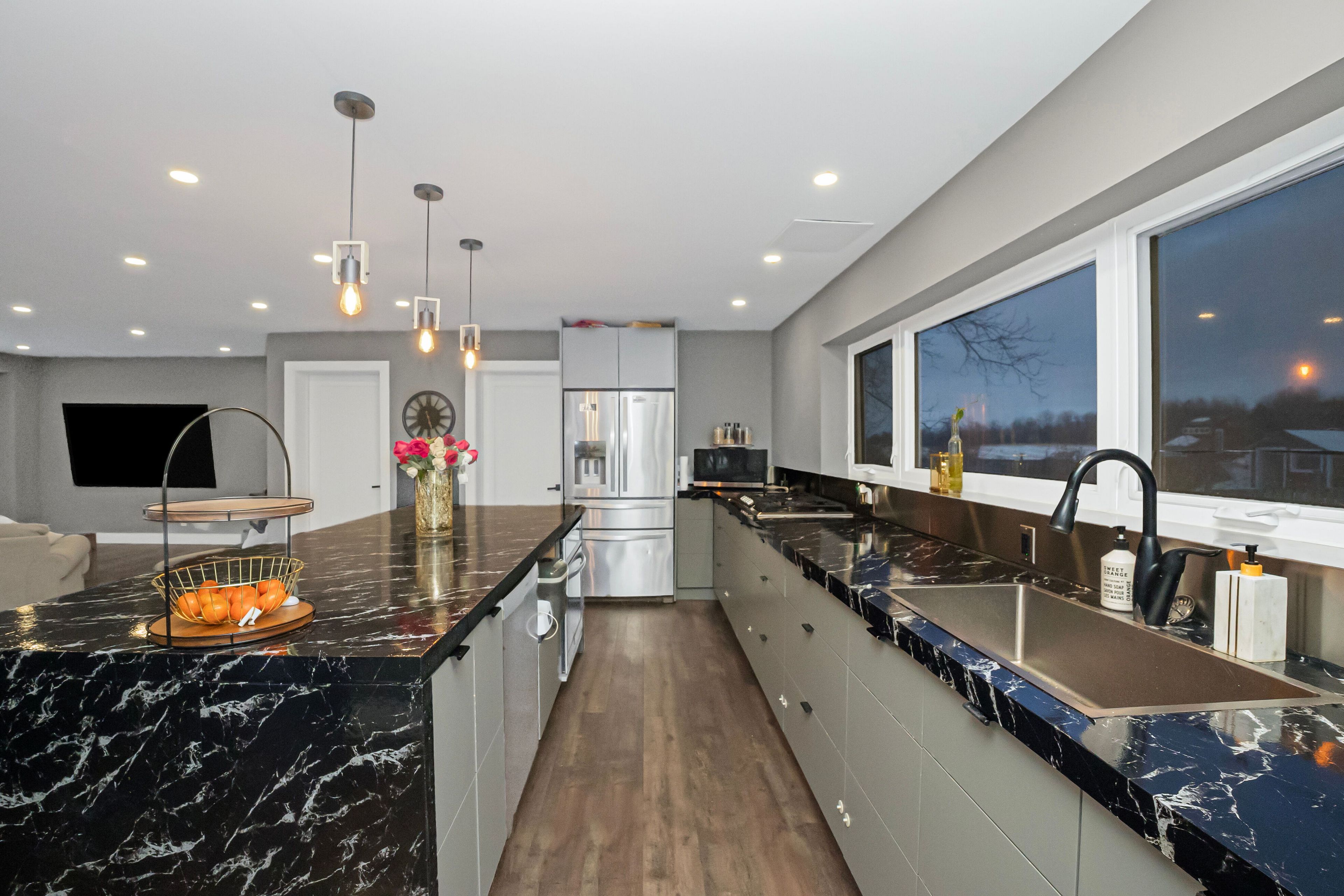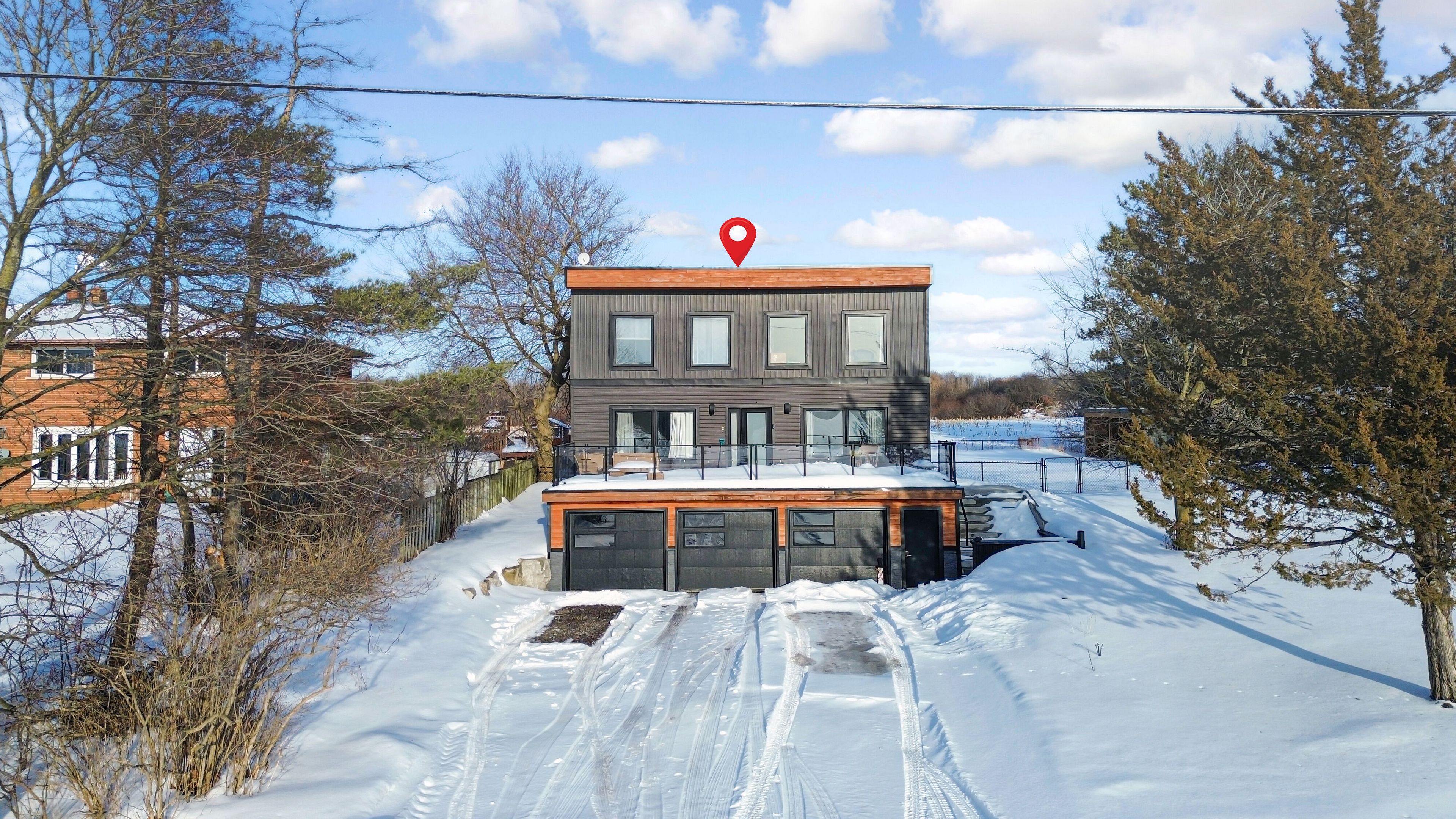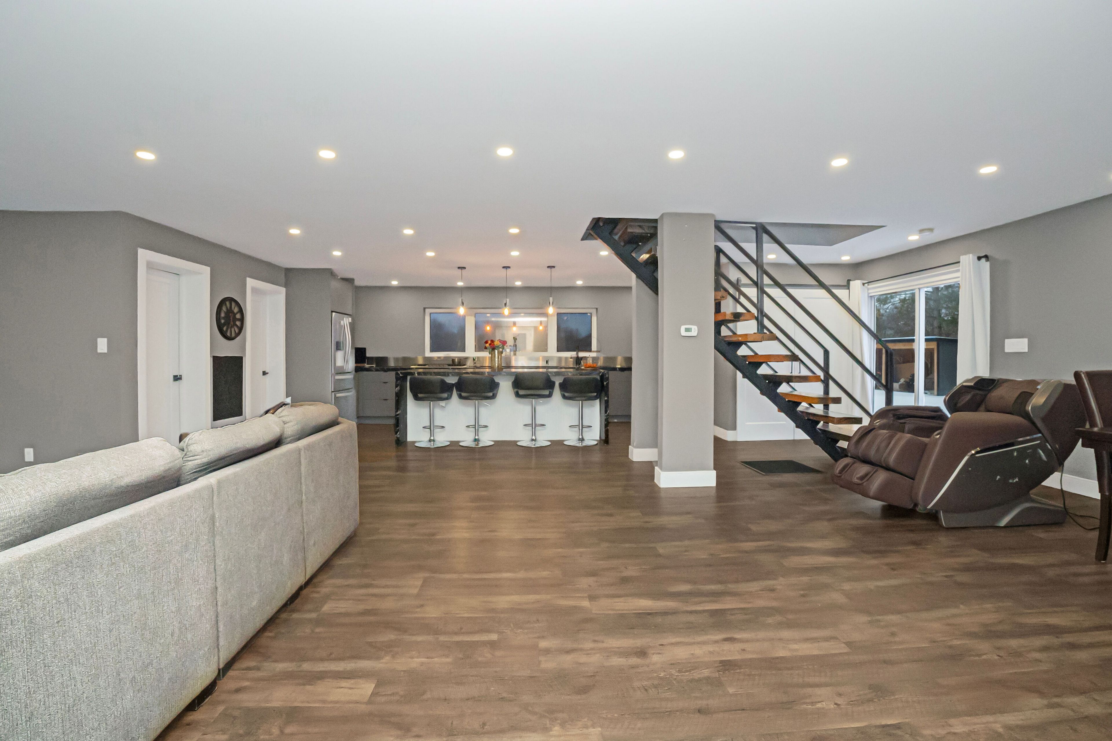 A home that truly must be seen to be appreciated! Step inside this beautifully designed open-concept home where every detail has been carefully considered. The main level offers a bright, spacious layout perfect for everyday living and elegant entertaining. The chef's kitchen features generous counter space, custom concrete countertops, and a large center island with built-in appliances, designed to be both functional and stylish. A walk-in pantry keeps small appliances out of sight, while oversized windows fill the space with natural light and showcase stunning views. A striking custom staircase, crafted with reclaimed wood from the historic well and canal, adds warmth, character, and unique charm. Upstairs, the primary suite is a peaceful retreat with sweeping views, a spa-style ensuite, and a large walk-in closet with room for a sitting area or home gym. The soaker tub, perfectly placed to overlook the horizon, is ideal for relaxing. Two additional bedrooms are spacious and bright, with a second full bathroom that continues the spa-inspired design, featuring a sleek glass-and-tile shower and serene rural views. Outside, a generous patio captures golden sunsets and pastoral scenery, perfect for unwinding or entertaining. Adding versatility, a ground-level one-bedroom apartment with heated floors offers comfort year-round, ideal for extended family or rental income. An oversized three-car garage provides ample storage for recreational gear, with easy access to nearby snowmobile and atv trails. This exceptional home is more than a residence-it's a lifestyle. Schedule your private viewing today to experience its charm, functionality, and optional furnished living
