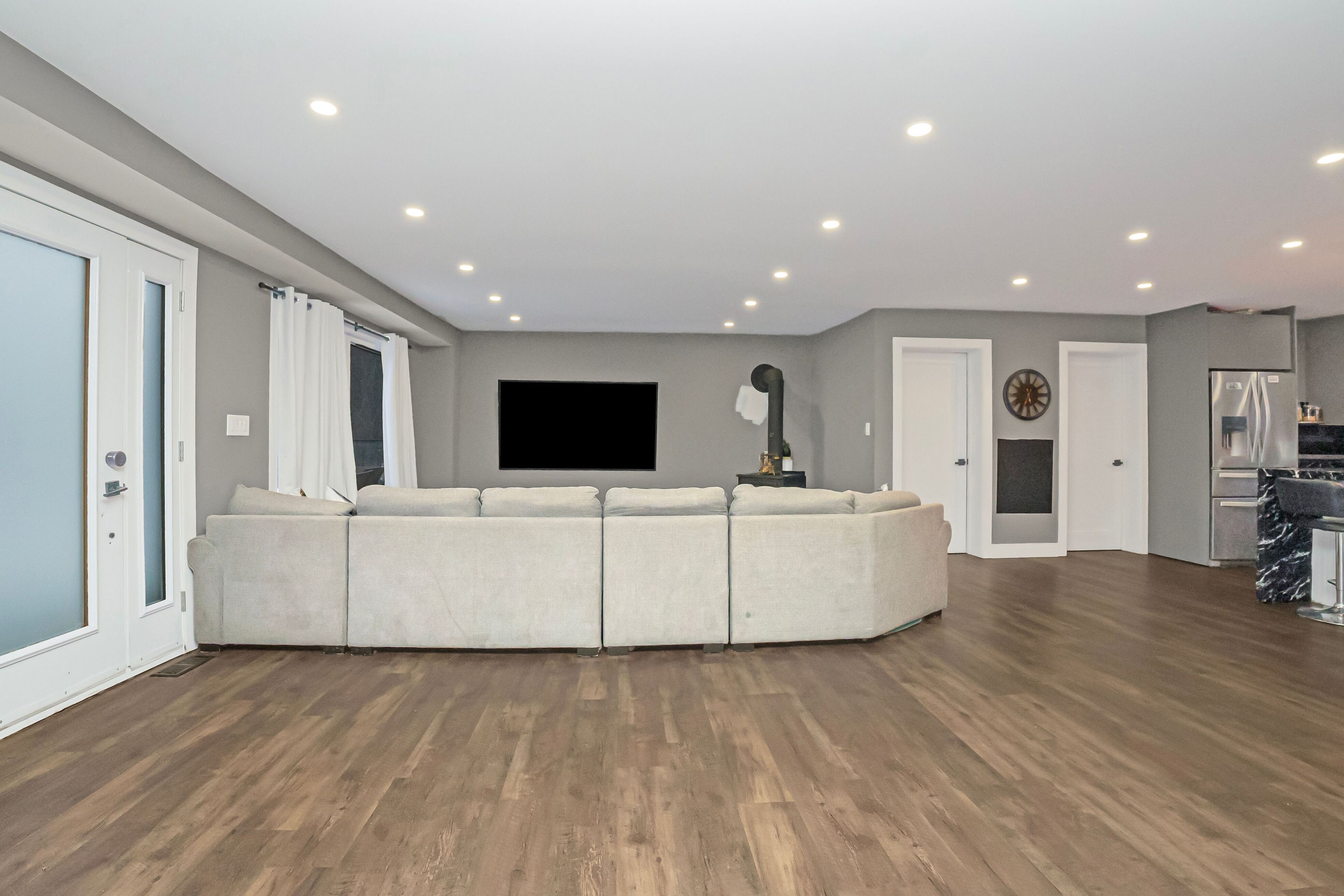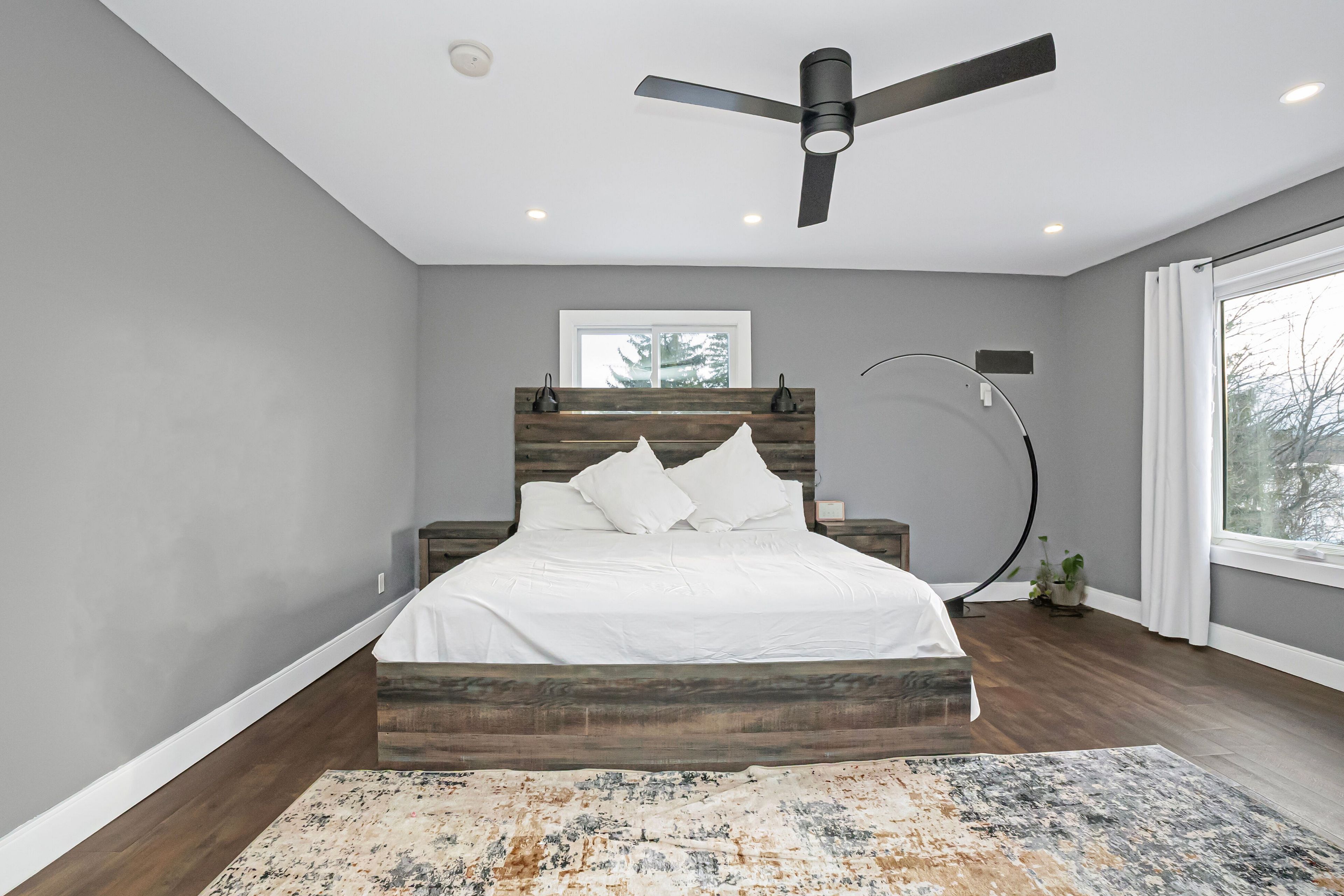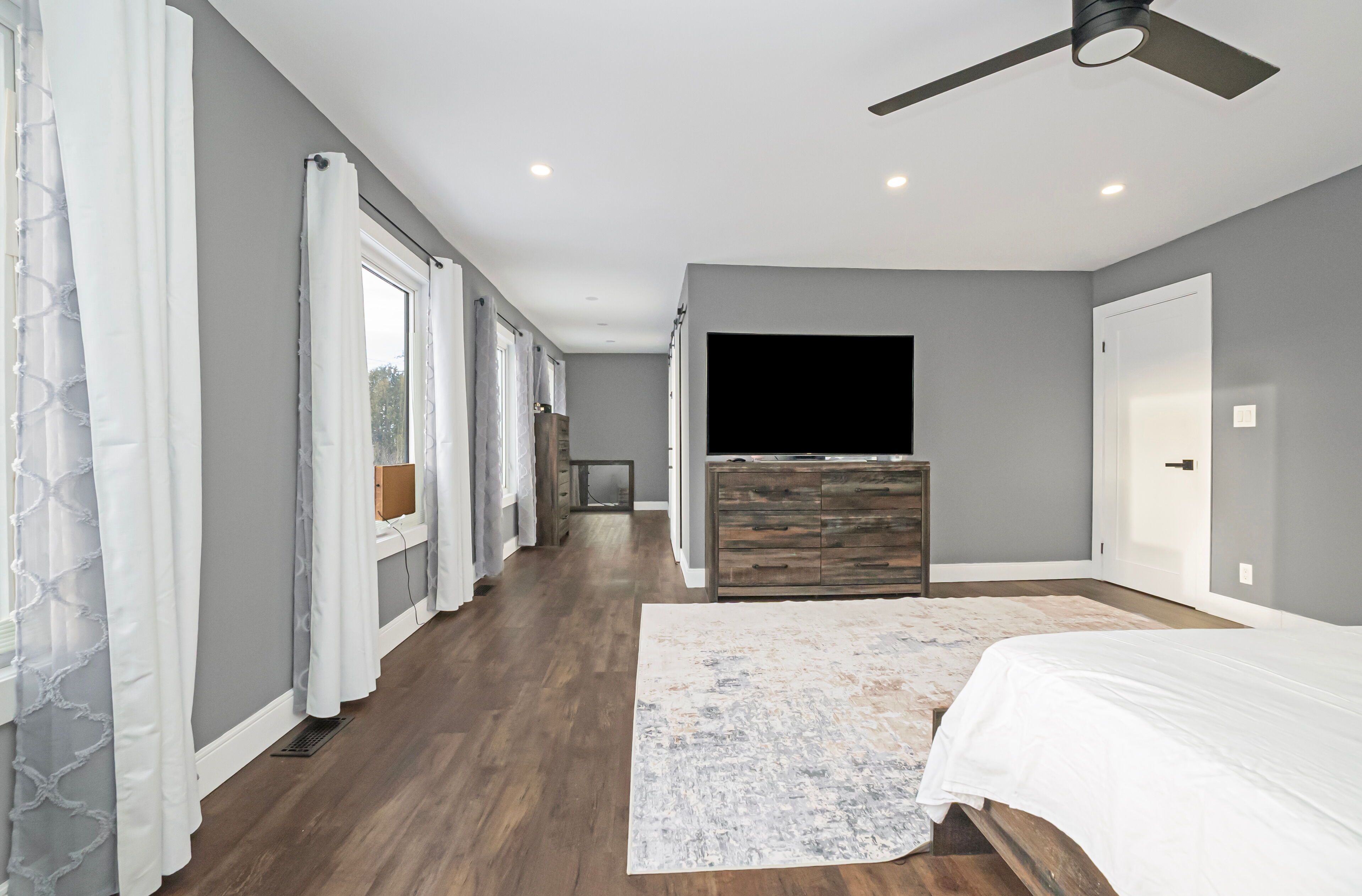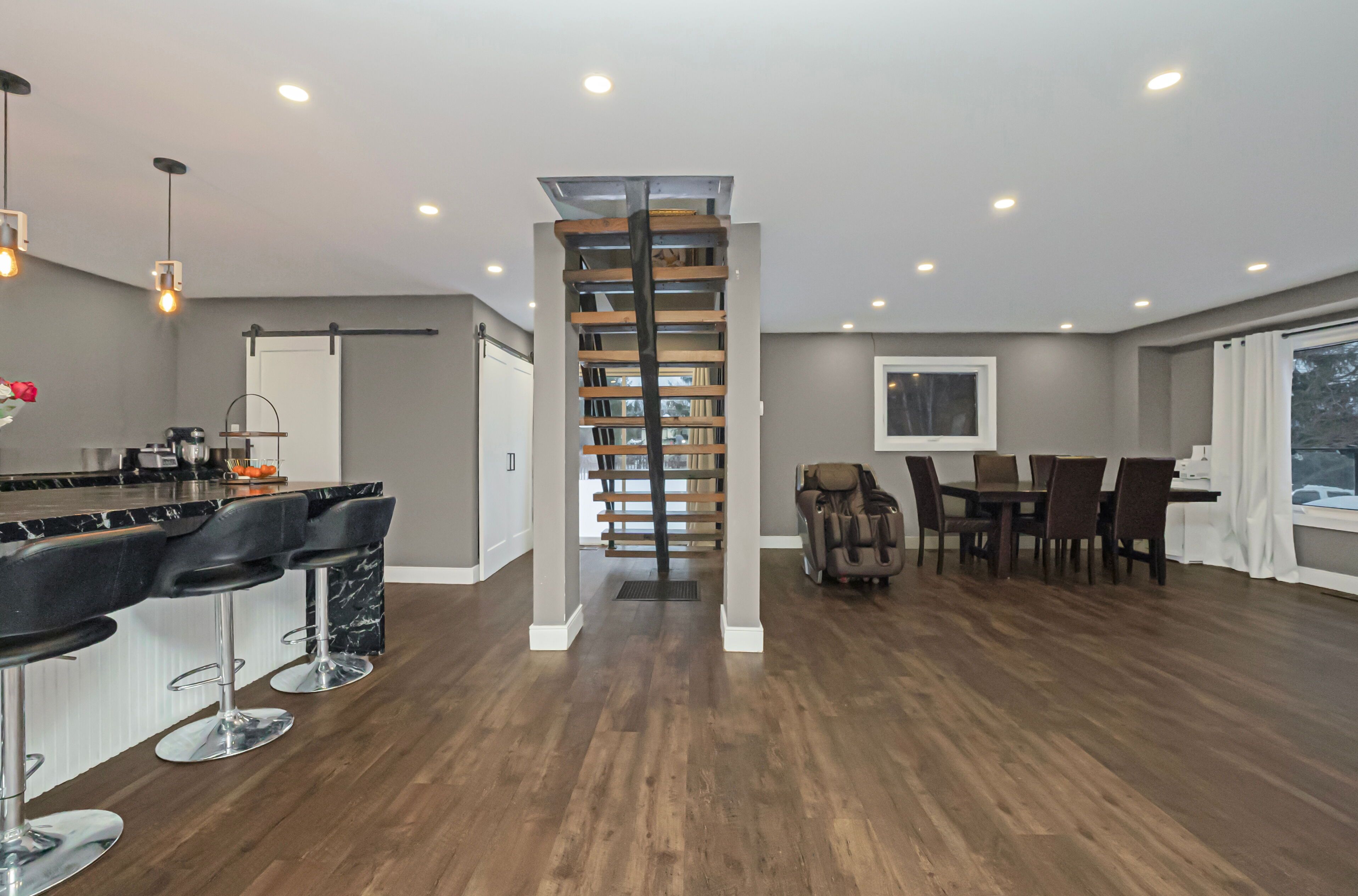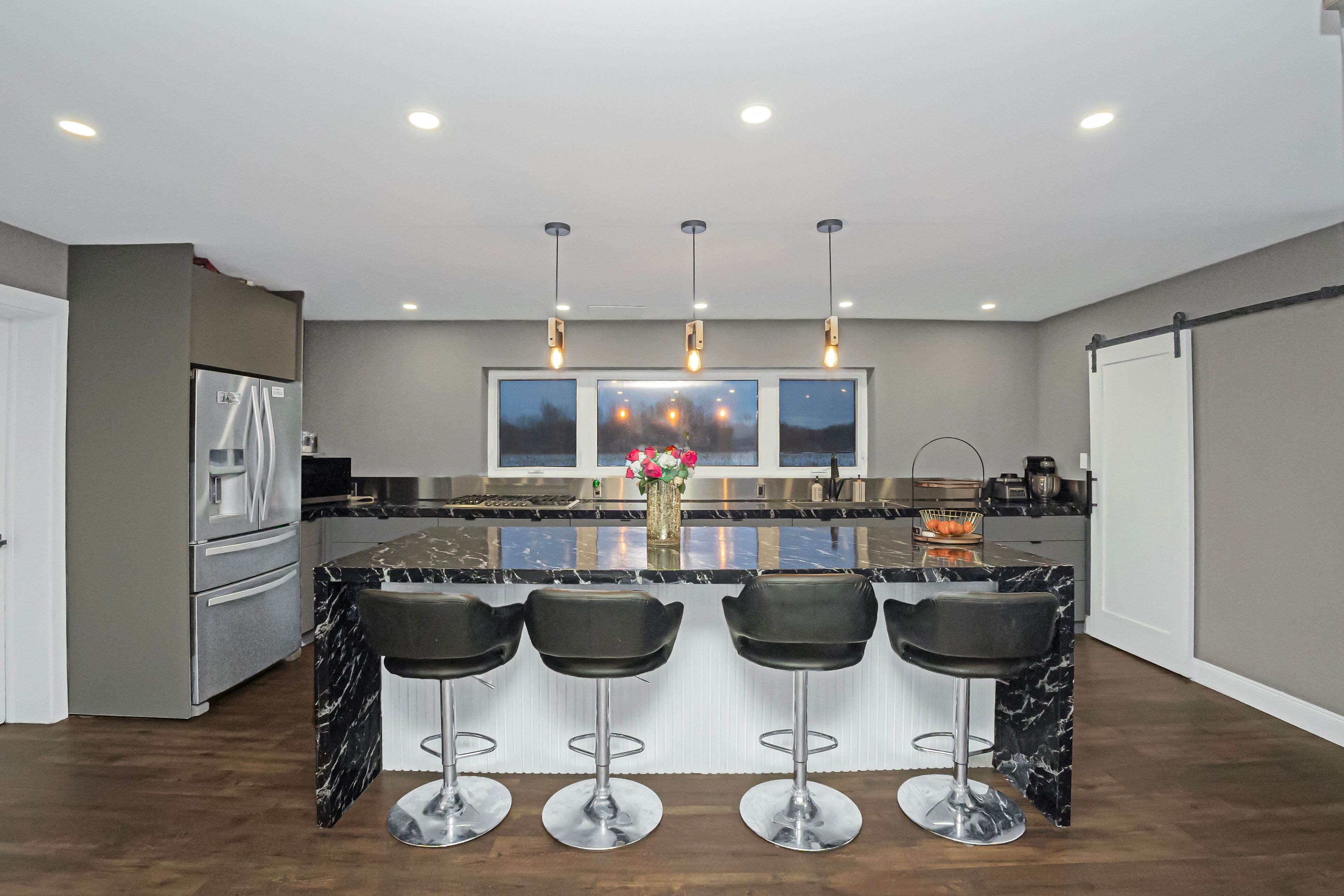 A home that truly must be seen to be appreciated! Step inside this beautifully designed open-concept home where every detail has been carefully considered. The main level offers a bright, spacious layout perfect for everyday living and elegant entertaining. The chef's kitchen features generous counter space, custom concrete countertops, and a large center island with built-in appliances, designed to be both functional and stylish. A walk-in pantry keeps small appliances out of sight, while oversized windows fill the space with natural light and showcase stunning views. A striking custom staircase, crafted with reclaimed wood from the historic well and canal, adds warmth, character, and unique charm. Upstairs, the primary suite is a peaceful retreat with sweeping views, a spa-style ensuite, and a large walk-in closet with room for a sitting area or home gym. The soaker tub, perfectly placed to overlook the horizon, is ideal for relaxing. Two additional bedrooms are spacious and bright, with a second full bathroom that continues the spa-inspired design, featuring a sleek glass-and-tile shower and serene rural views. Outside, a generous patio captures golden sunsets and pastoral scenery, perfect for unwinding or entertaining. Adding versatility, a ground-level one-bedroom apartment with heated floors offers comfort year-round, ideal for extended family or rental income. An oversized three-car garage provides ample storage for recreational gear, with easy access to nearby snowmobile and atv trails. This exceptional home is more than a residence-it's a lifestyle. Schedule your private viewing today to experience its charm, functionality, and optional furnished living