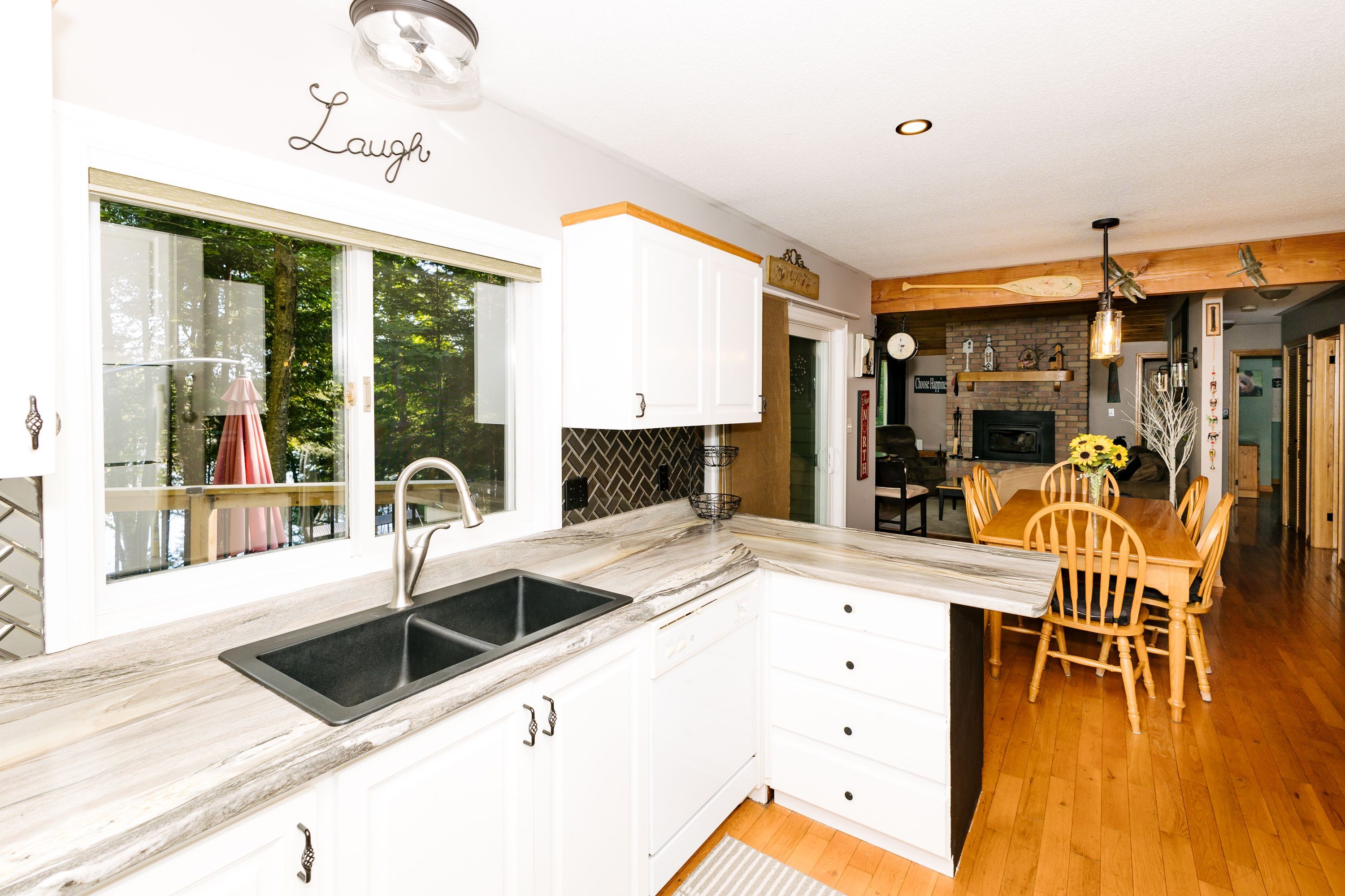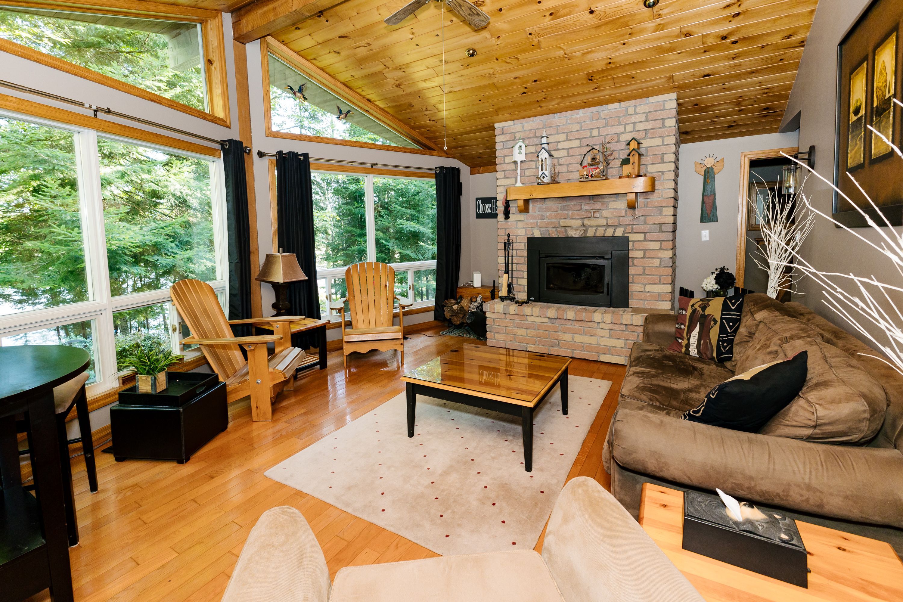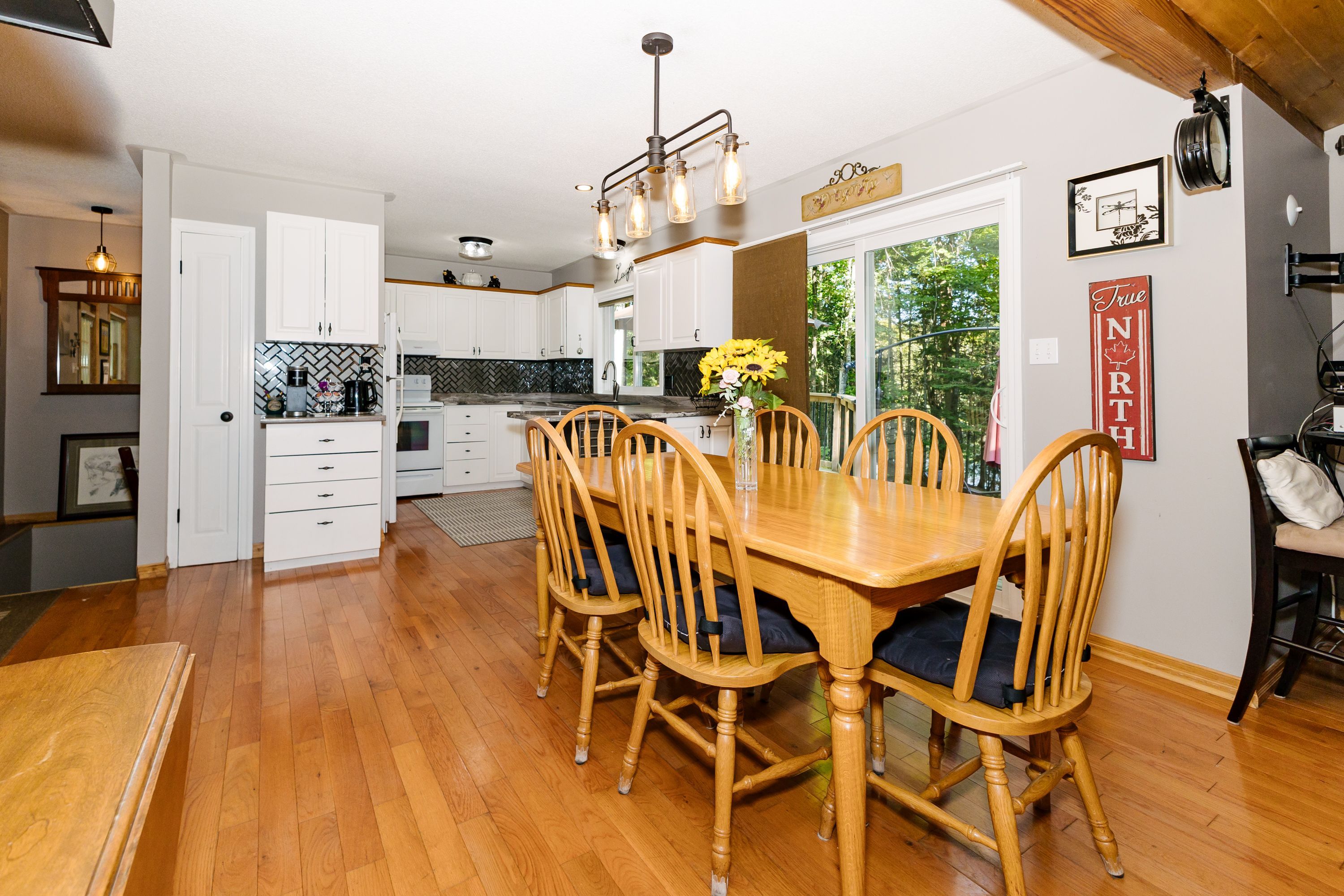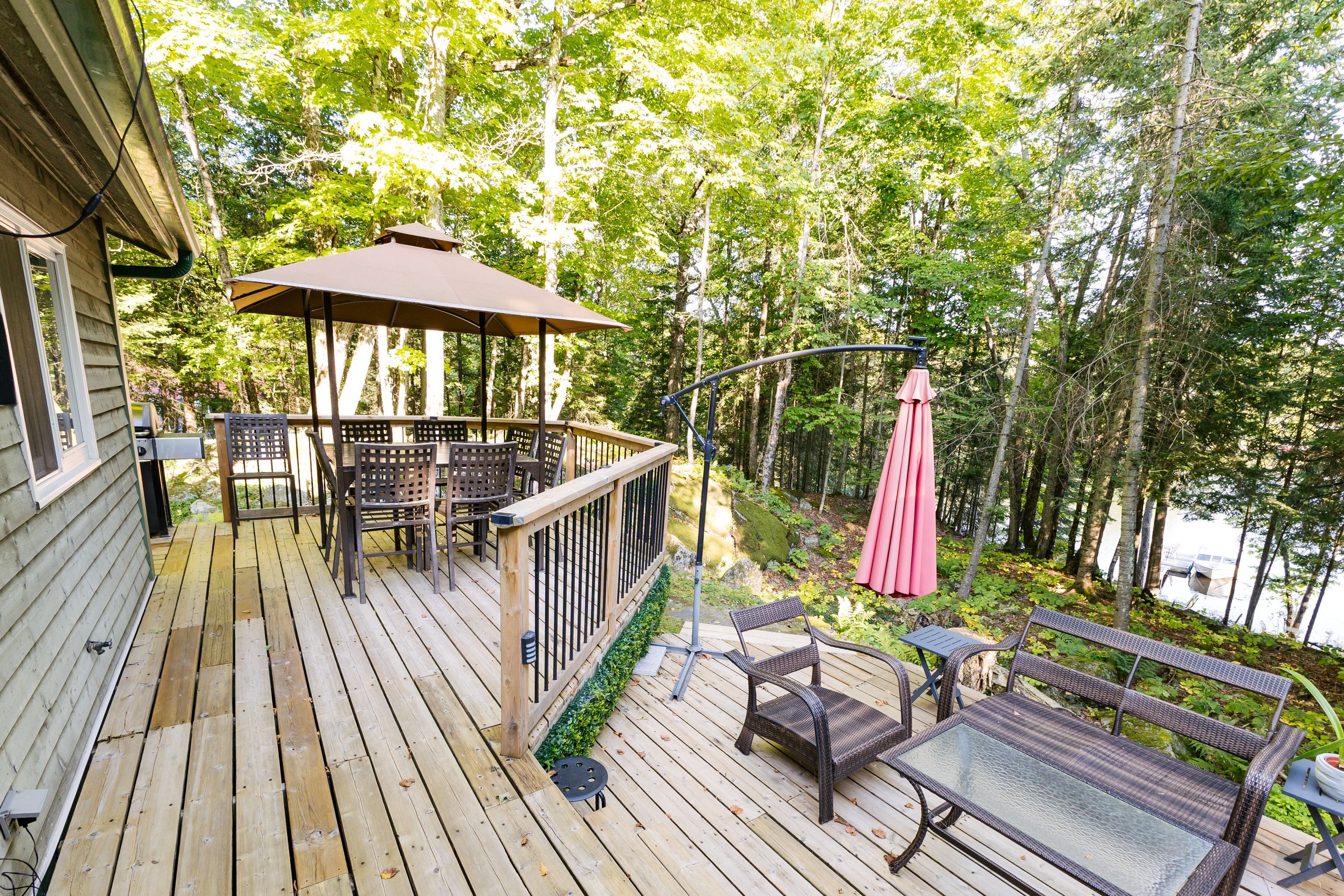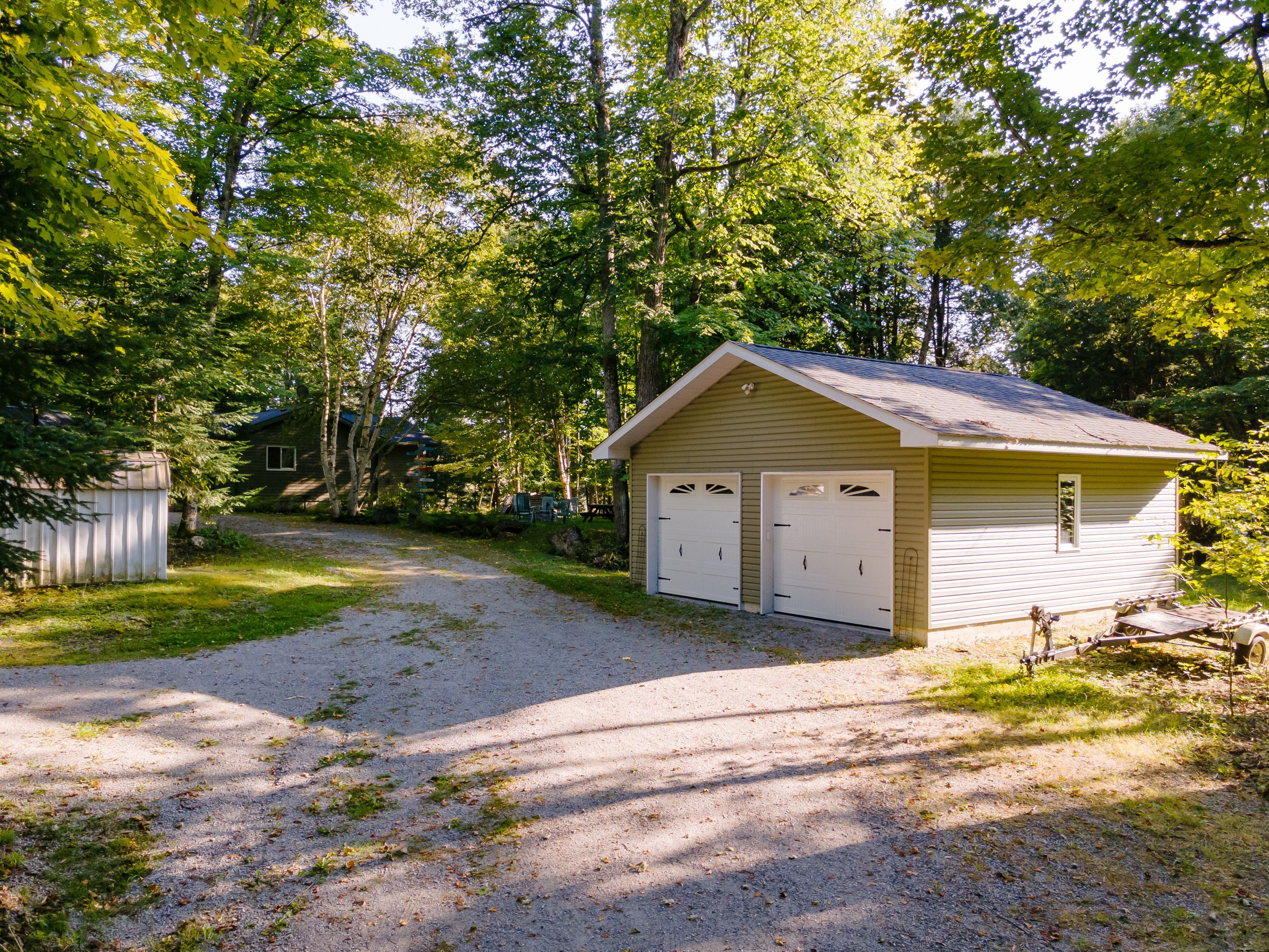Experience the ultimate in lakeside living at this serene cottage retreat on soyers lake, part of a picturesque 5-lake chain offering miles of boating. This meticulously maintained, four-season home provides privacy and tranquility, situated at the end of a quiet road with a level lot and a gentle slope to the water. Enjoy stunning southeast-facing views and the convenience of being close to marinas and the charming town of haliburton. The property features 3 beds + 1 bedroom, 2 bathrooms, open-concept design, cathedral ceilings and floor-to-ceiling windows that creates an airy, light-filled environment. The large living room frames the lake view and has a beautiful fireplace creating a comfortable and relaxed setting. The spacious dining room opens up to the outdoor living area. Hardwood floors throughout the upstairs hint at the quality and care of this spacious home. The large walkout basement offers a generous recreation room with in-law suite potential or additional living space, perfect for extended family or guests. The expansive deck is ideal for entertaining or relaxing while soaking in the serene views through the trees and gorgeous rock outcroppings. The gentle slope to the water, with private dock, makes it easy to enjoy swimming and water activities. Enjoy peace and tranquility in this secluded setting. An impressive 24/24 detached garage/ workshop with hydro offers lots of opportunities and convenience. Gather around the firepit amongst the perennial gardens, one of the many outdoor recreation zones. This exceptional property combines the best of nature and modern living, making it perfect for family getaways or year-round residence. Don't miss the opportunity to own this lakeside gem on sought after soyers lake. Schedule your private tour today and experience the serene beauty and unmatched privacy of this haliburton retreat!