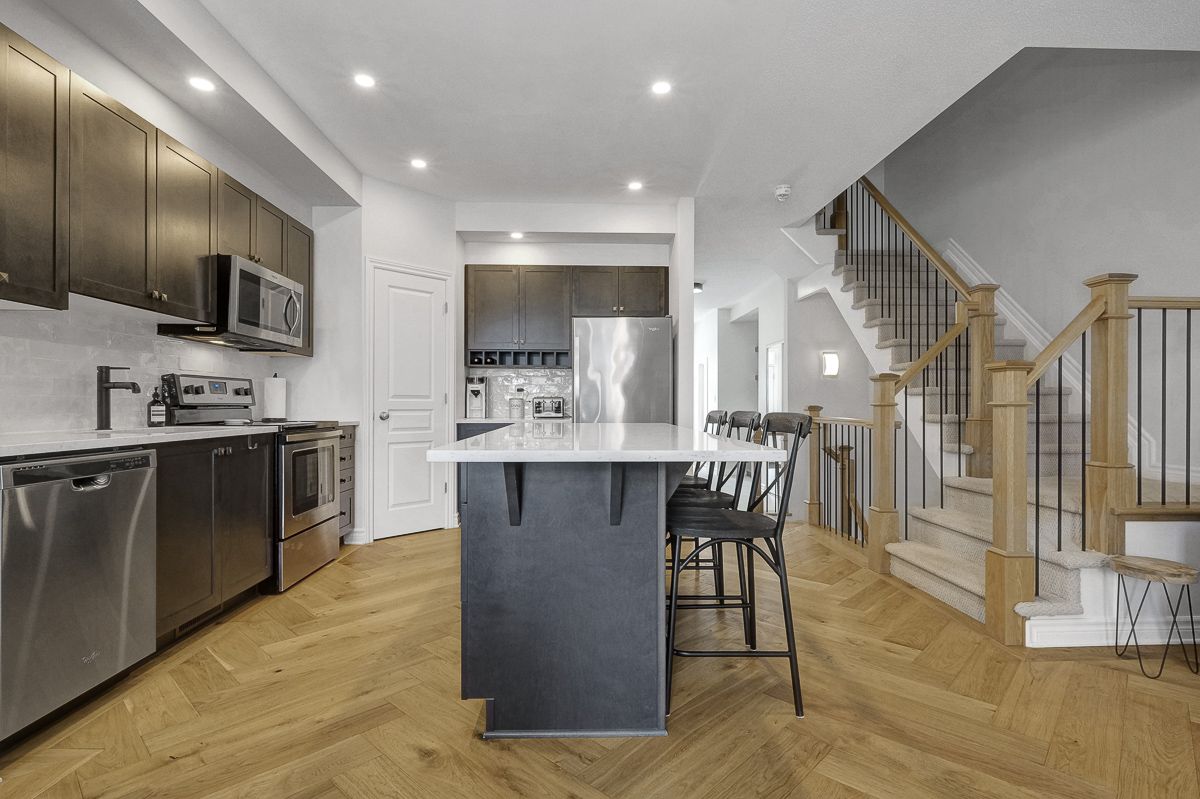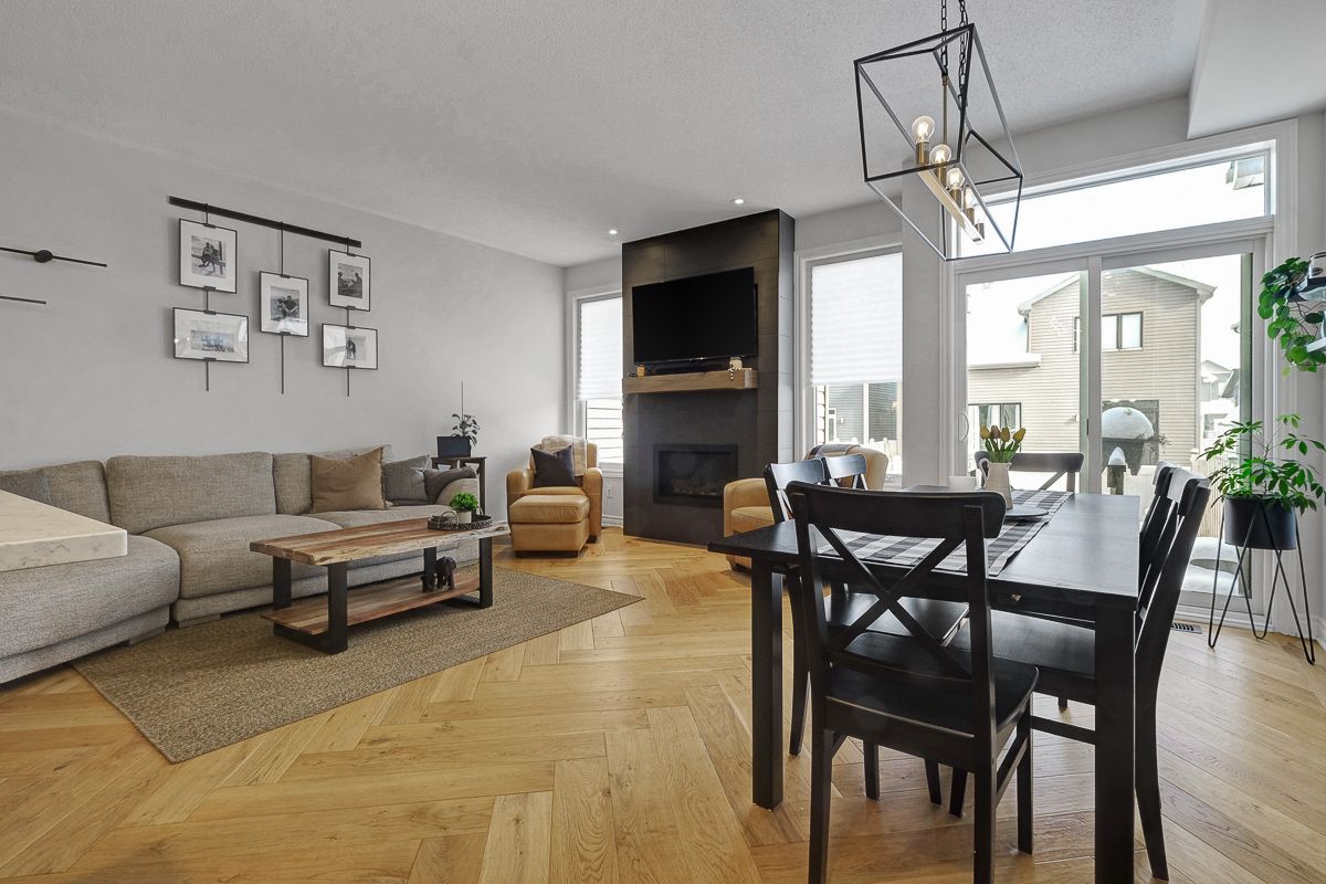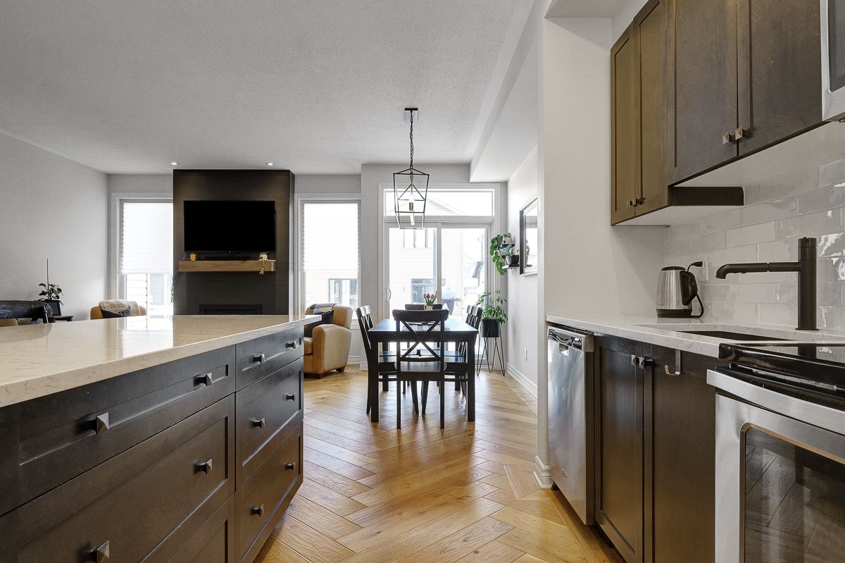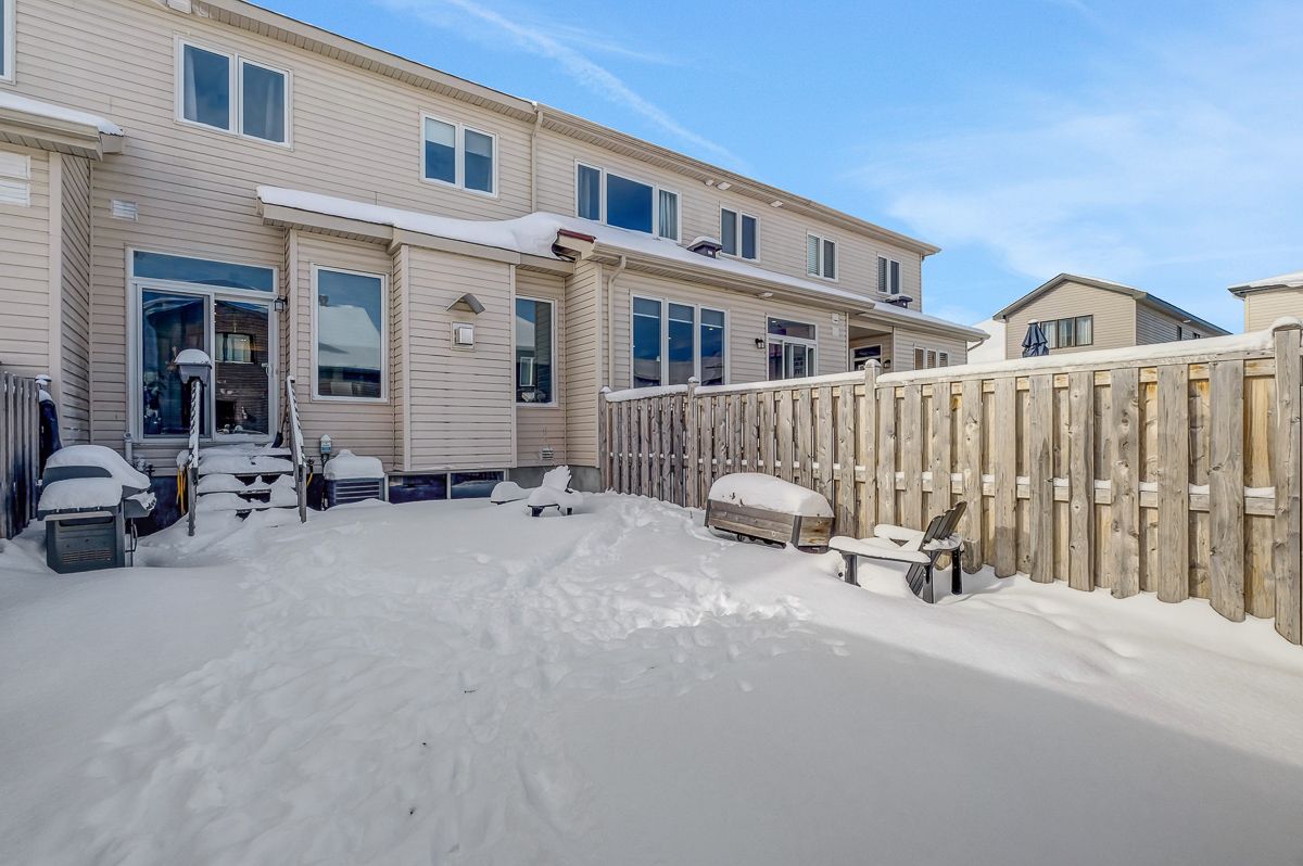 Welcome to this stunning, like-new valecraft stanley ii townhome in the heart of stittsville. As a former model home, it showcases an impressive selection of custom upgrades throughout. Offering 2,135 sq. Ft. Of living space, including a beautifully finished lower level, this home delivers both style and functionality. Soaring ceilings create an inviting first impression, while the built-in bench and coat rack add everyday convenience and smart organization. The open-concept great room is highlighted by gorgeous herringbone-pattern hardwood flooring and a striking tiled fireplace that serves as a true focal point. The modern kitchen features a large centre island, pantry, quartz countertops, and a perfectly paired backsplash-ideal for both cooking and entertaining. The adjacent dining area easily accommodates casual meals, formal dinners, or family game nights. Upstairs, you'll find three generously sized bedrooms, including a spacious primary suite complete with a luxurious ensuite and walk-in closet. A neutral main bath and convenient second-floor laundry complete this level. The finished lower level extends your living space with a comfortable family room, ample storage, and a rough-in for a fourth bathroom. The attached garage with inside entry has been upgraded with unique wall finishes and practical storage hooks. Step outside to enjoy the fully fenced backyard, perfect for relaxing or entertaining. Ideally located close to parks, schools, and excellent commuting routes, this home offers comfort, style, and convenience in one exceptional package. Open house: sunday, 2-4 pm. This move-in-ready home is waiting to welcome you-come see it for yourself!