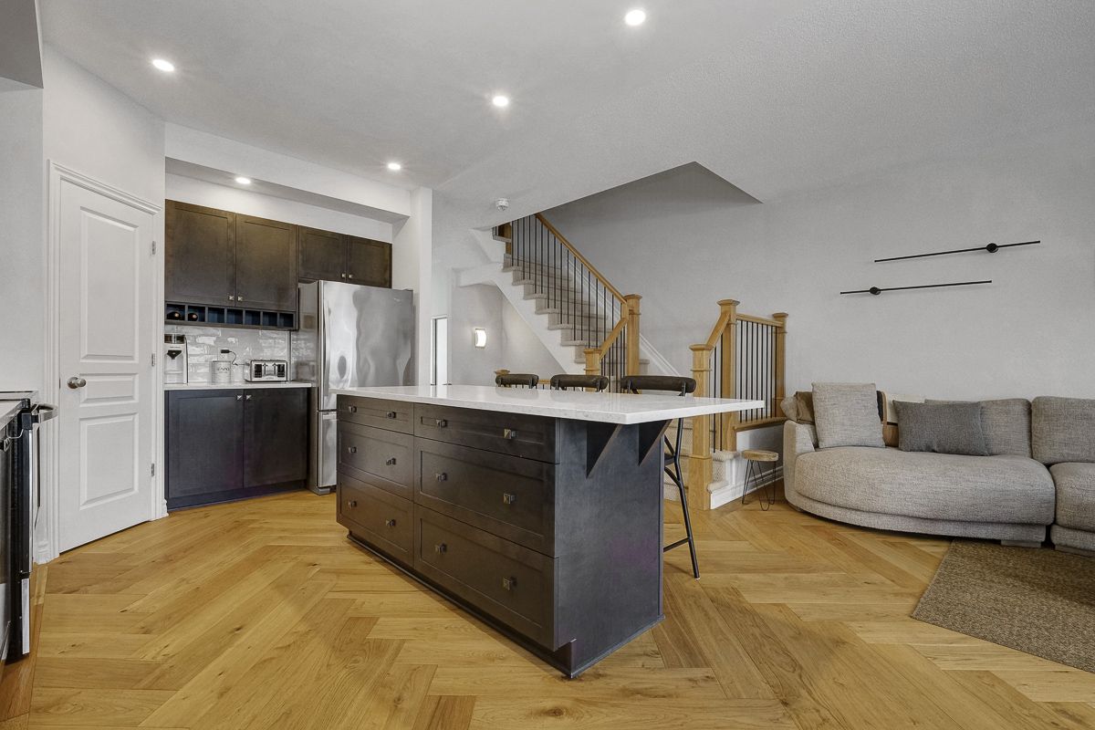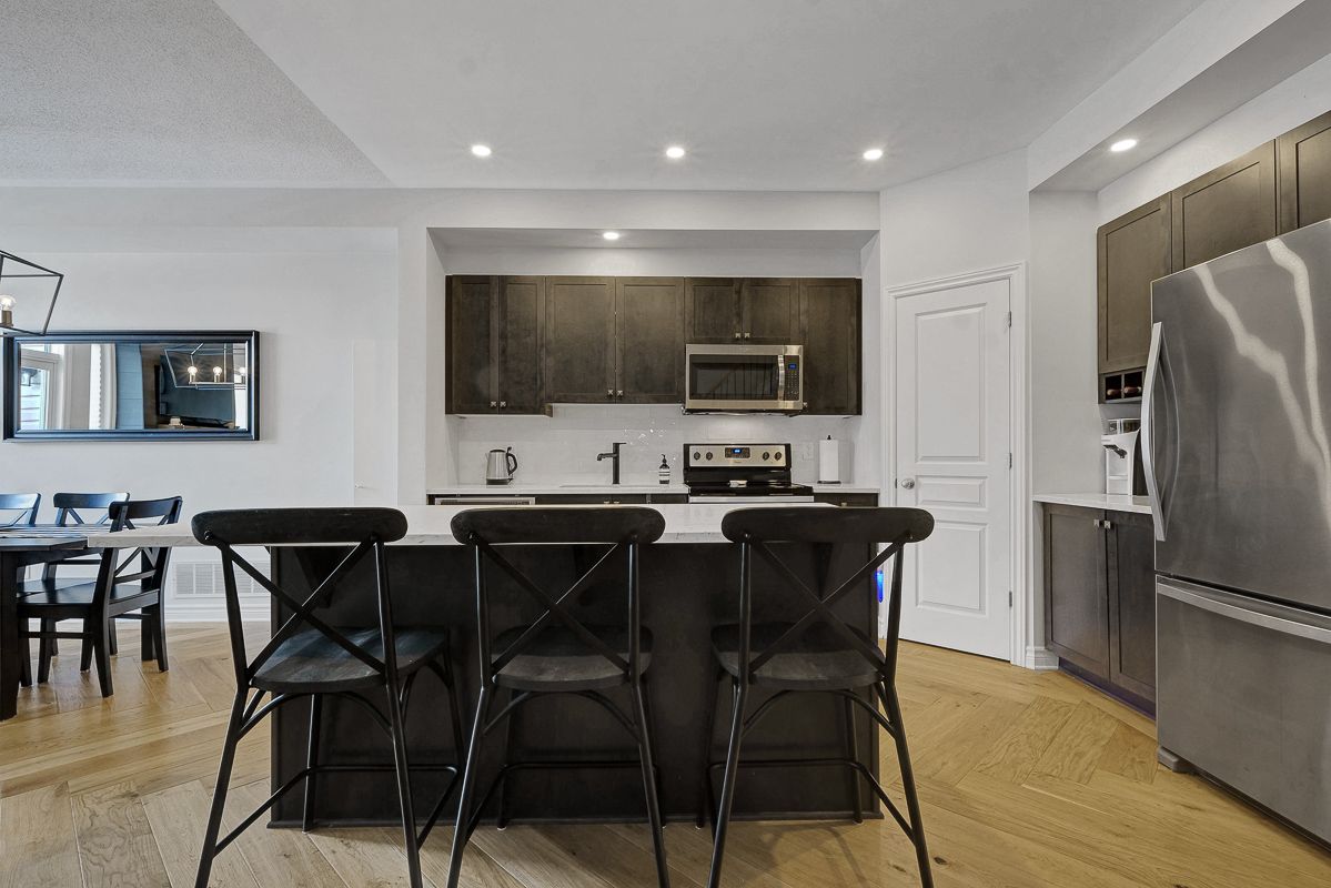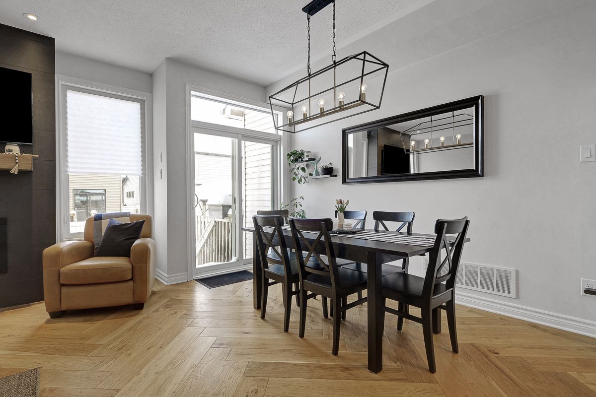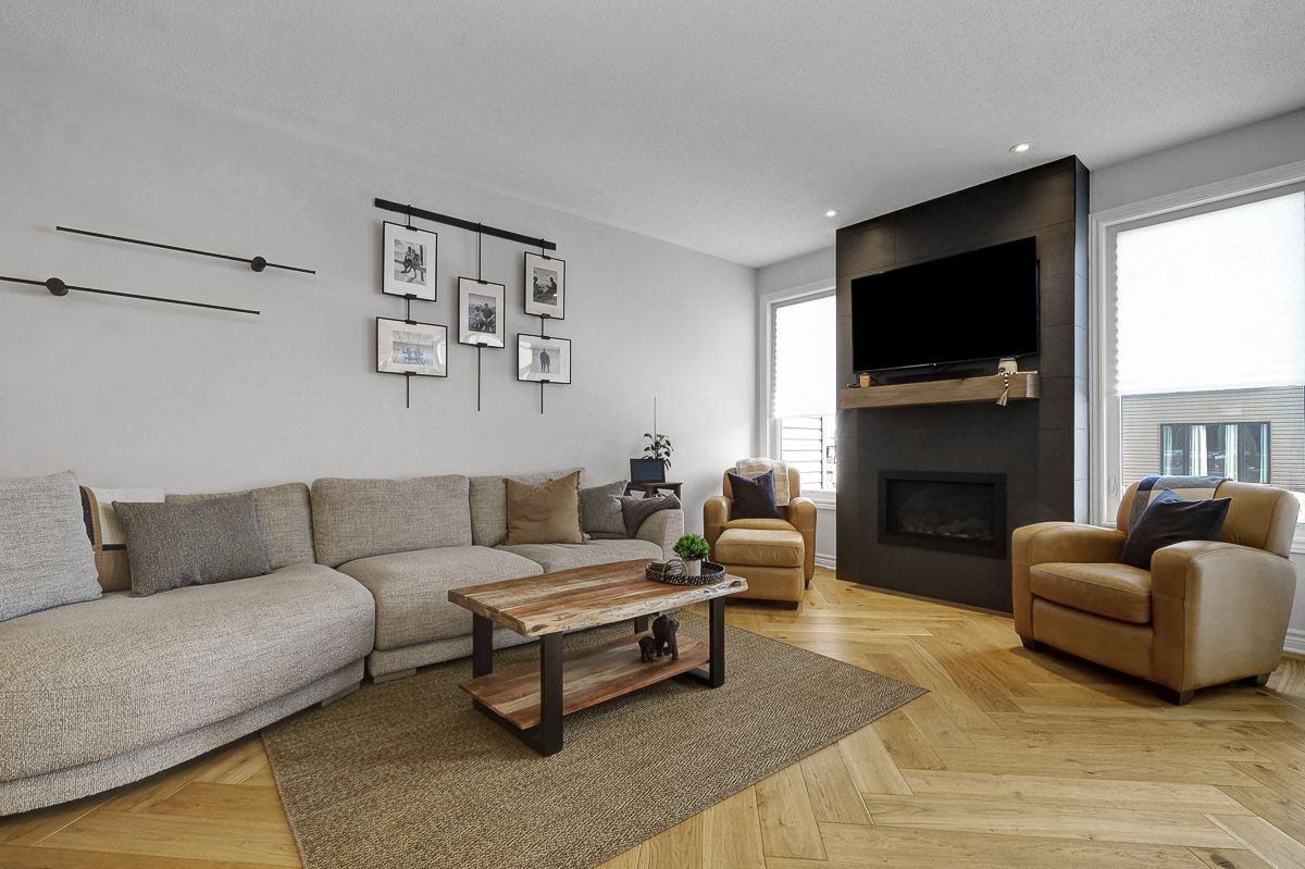 Welcome to this stunning, like-new valecraft stanley ii townhome in the heart of stittsville. As a former model home, it showcases an impressive selection of custom upgrades throughout. Offering 2,135 sq. Ft. Of living space, including a beautifully finished lower level, this home delivers both style and functionality. Soaring ceilings create an inviting first impression, while the built-in bench and coat rack add everyday convenience and smart organization. The open-concept great room is highlighted by gorgeous herringbone-pattern hardwood flooring and a striking tiled fireplace that serves as a true focal point. The modern kitchen features a large centre island, pantry, quartz countertops, and a perfectly paired backsplash-ideal for both cooking and entertaining. The adjacent dining area easily accommodates casual meals, formal dinners, or family game nights. Upstairs, you'll find three generously sized bedrooms, including a spacious primary suite complete with a luxurious ensuite and walk-in closet. A neutral main bath and convenient second-floor laundry complete this level. The finished lower level extends your living space with a comfortable family room, ample storage, and a rough-in for a fourth bathroom. The attached garage with inside entry has been upgraded with unique wall finishes and practical storage hooks. Step outside to enjoy the fully fenced backyard, perfect for relaxing or entertaining. Ideally located close to parks, schools, and excellent commuting routes, this home offers comfort, style, and convenience in one exceptional package. Open house: sunday, 2-4 pm. This move-in-ready home is waiting to welcome you-come see it for yourself!