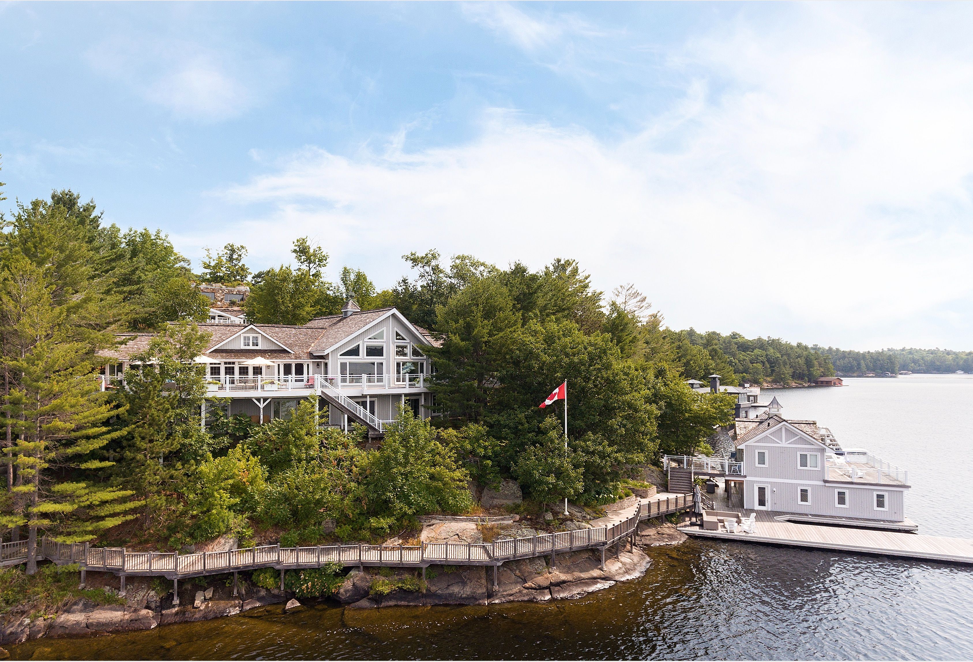 Upper lake muskoka prime beaumaris to port carling corridor. A kingdom. An oasis. Timeless waterside elegance abounds at this 2. 7 acre sunrise to sunset point of land. 7 bedroom, 8 bathroom sprawling water's edge cottage boasting more than half a circumference of dauntingly beautiful views for miles, with grand principal living spaces flowing seamlessly to extensive decking, seasonal westerly muskoka room, pantry, 2 fireplaces, separate main floor family room with guest suite above, and main floor owner's suite with private office/den. Finished lower level walkout with suites of bedrooms, and magnificent mechanicals. Handsome 2 slip 2 storey boathouse with living quarters, and expansive s. W. Swim/sitting dock, 3rd exterior slip, granite paths, deep water, classic rock shelf shoreline, with views spanning from east to south to west on a true point of land. Detached 4-car garage with spa including bathroom, sauna, and steam room, with full gymnasium above. Plus, a separate 800 sq. Ft. Hilltop observatory with rooftop granite terrace to drink in even more impressive water views. Exclusively located just 6 minutes to port carling by boat or car, with endless features including generators, central air, intercom, the list goes on. This lake front estate not only affords one of the most sought after addresses, it truly serves up 'something for everyone'. Being marketed and sold mostly furnished and equipped, turnkey, for today's muskoka family seeking the very best.