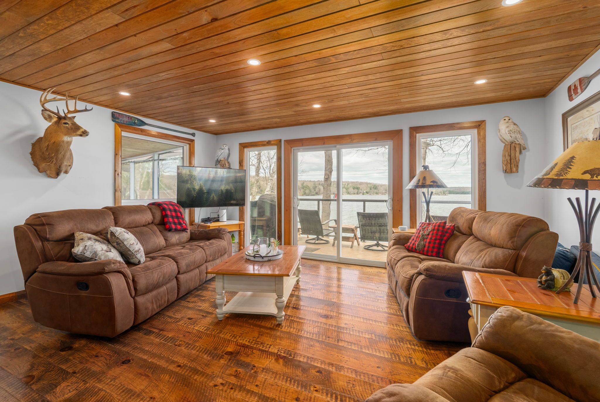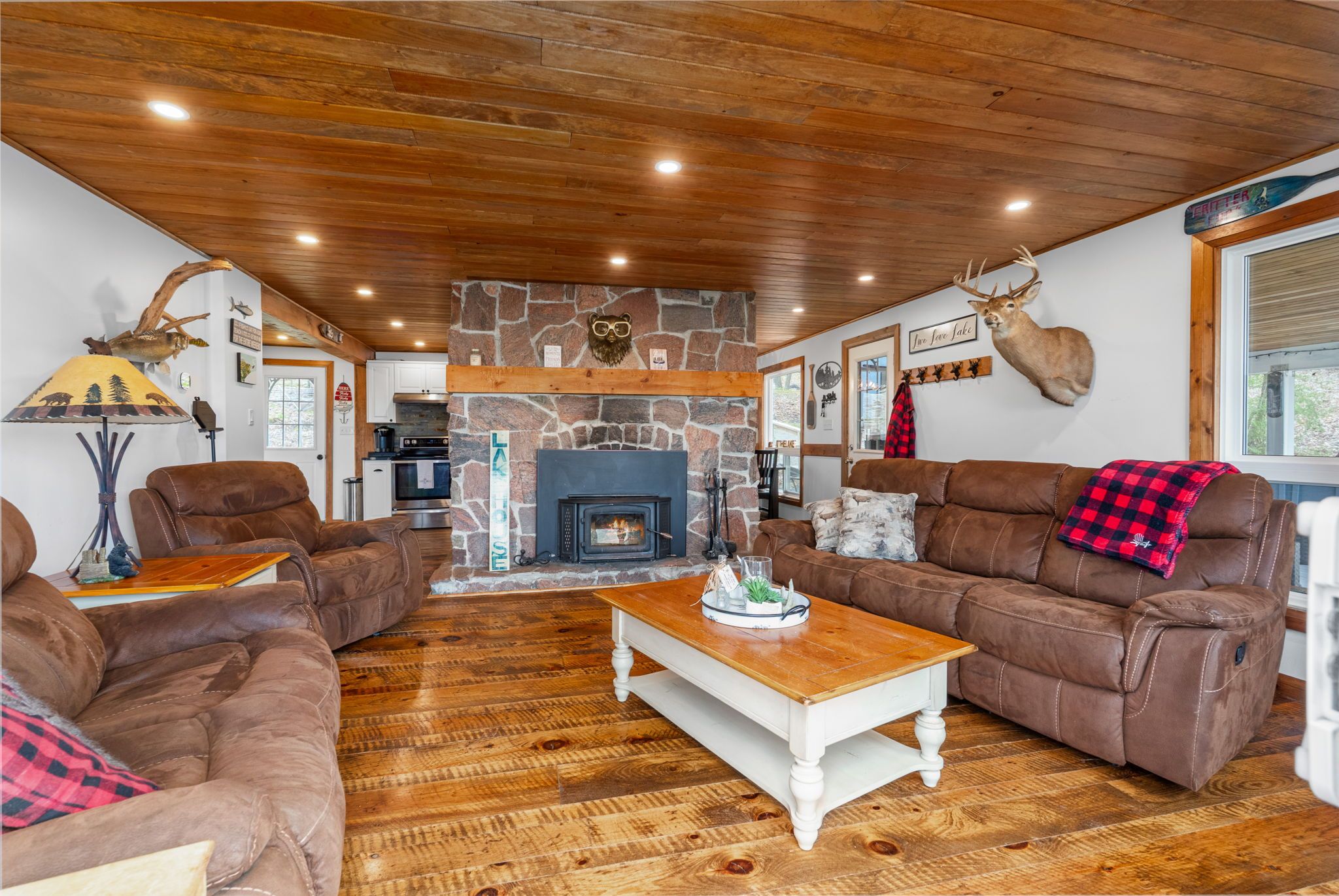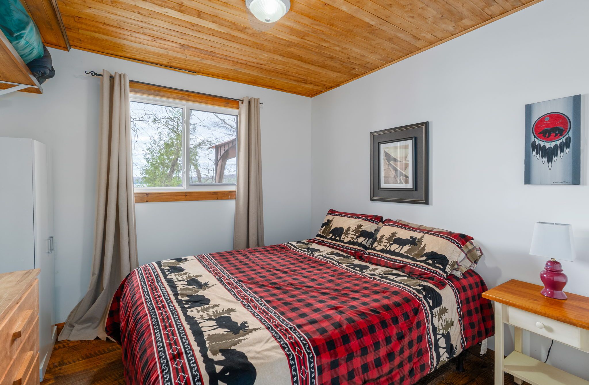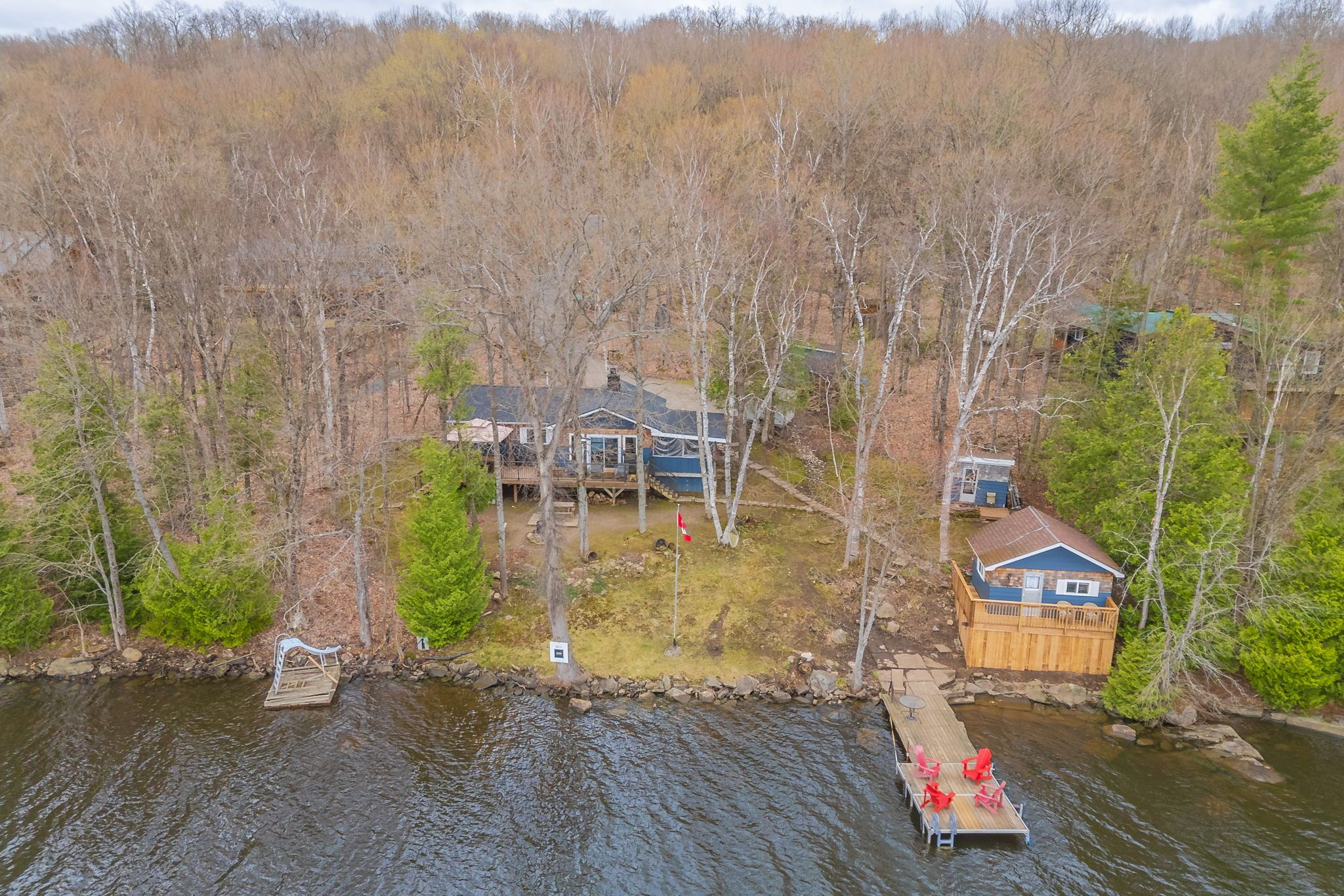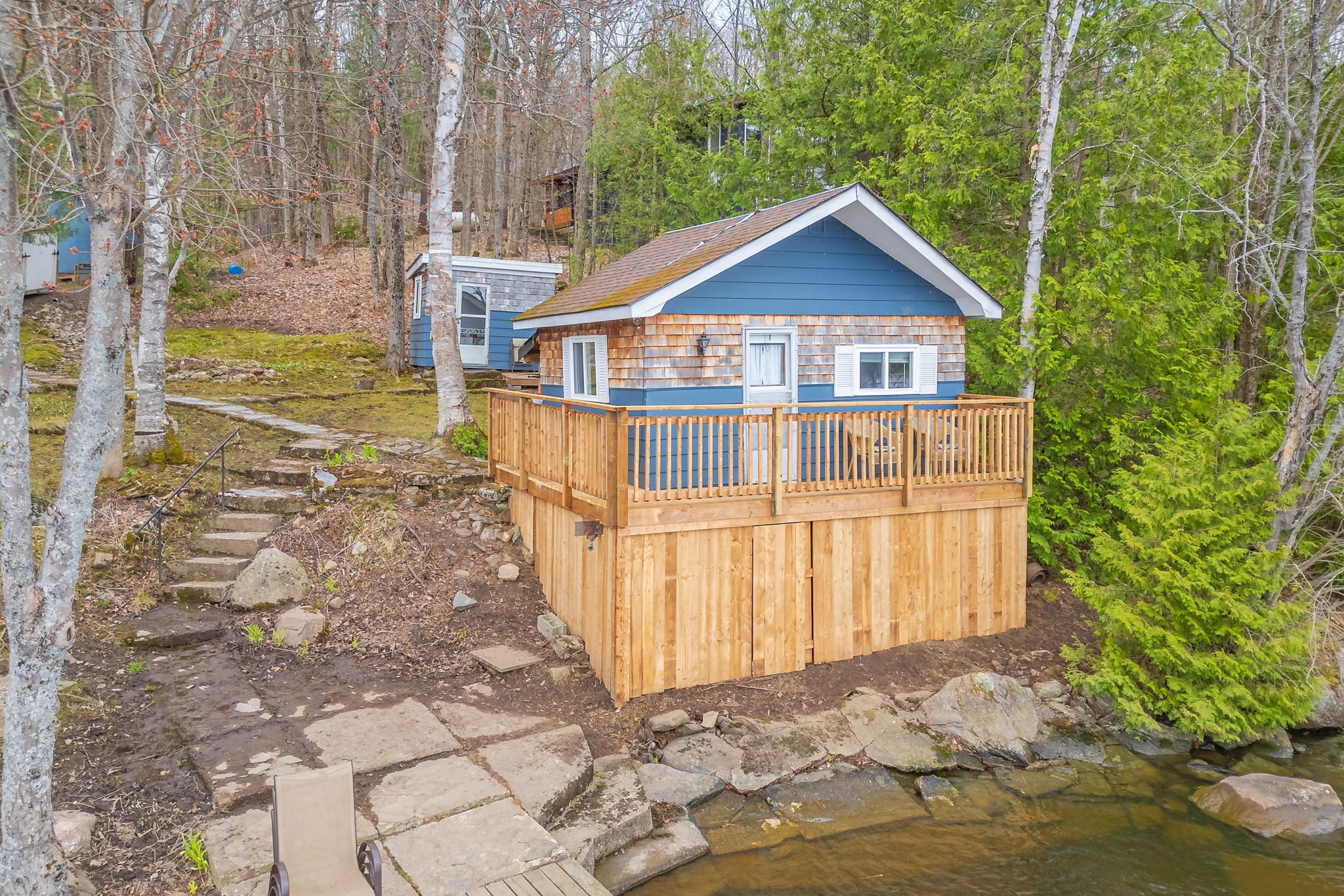 Charming 3 bed, 1 bath plus 2 additional bunkie's. 4-season cabin at three mile lake. A picturesque retreat surrounded by birch, pine, & sugar maple. With its charming rustic canadian aesthetic, it's the perfect taste of muskoka living. Arguably one of the best spots on the lake with expansive, breath taking lake views, deep water with sandy bottom off the fixed dock (wave and wake-proof). Watch sunsets from the dock, then gather by the lake for a cozy fire and roast marshmallows under the stars. Property features a muskoka room, 2 cozy bunkie's, with one on the water, property sleeps 14 people. Wood shed and two additional storage sheds, ample parking, back up generator, brand new roof. Close proximity to port carling and bracebridge. The property has been thoughtfully upgraded with several recent improvements that significantly enhance its comfort and functionality. A new waterside bunkie deck was installed. A brand new shingled roof on the cottage, ensuring durability and aesthetic appeal. In 2022, the water system was fully upgraded with a new water tank and uv water filtration system, including a tannin filter, which provides clean and clear water. Additionally, features like a heated water line, propane furnace, and a heat pump were added to improve energy efficiency and comfort throughout the year. The property also includes a briggs & stratton generator, providing reliable backup power, and comprehensive insulation under the house and in all interior walls, which helps maintain consistent temperatures. The interior was completely renovated, updating the kitchen, living room, bedrooms, ceilings, and floors to modern standards, creating a fresh and inviting atmosphere. These updates collectively make this lakeside retreat highly desirable, combining recent modernization with natural beauty.