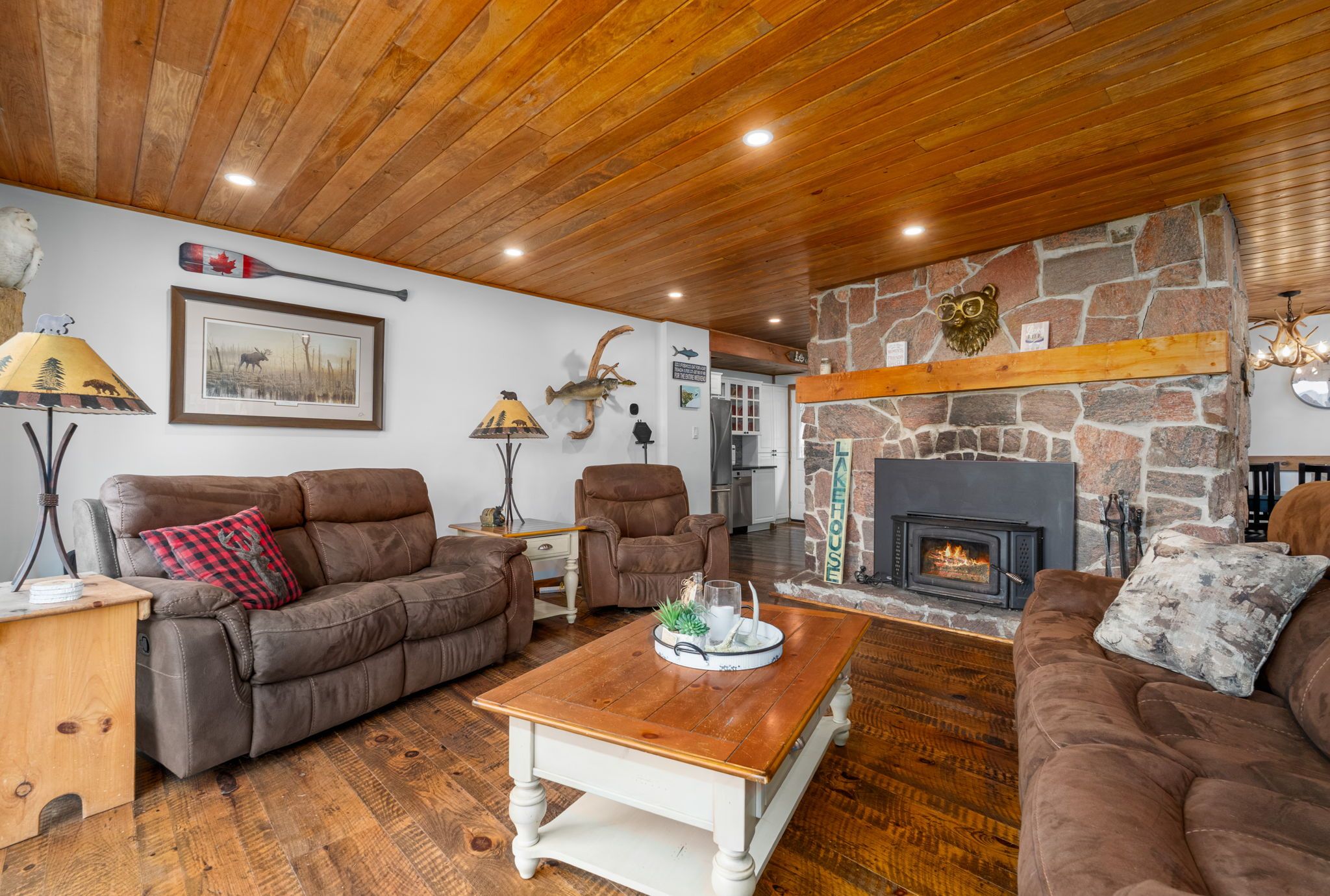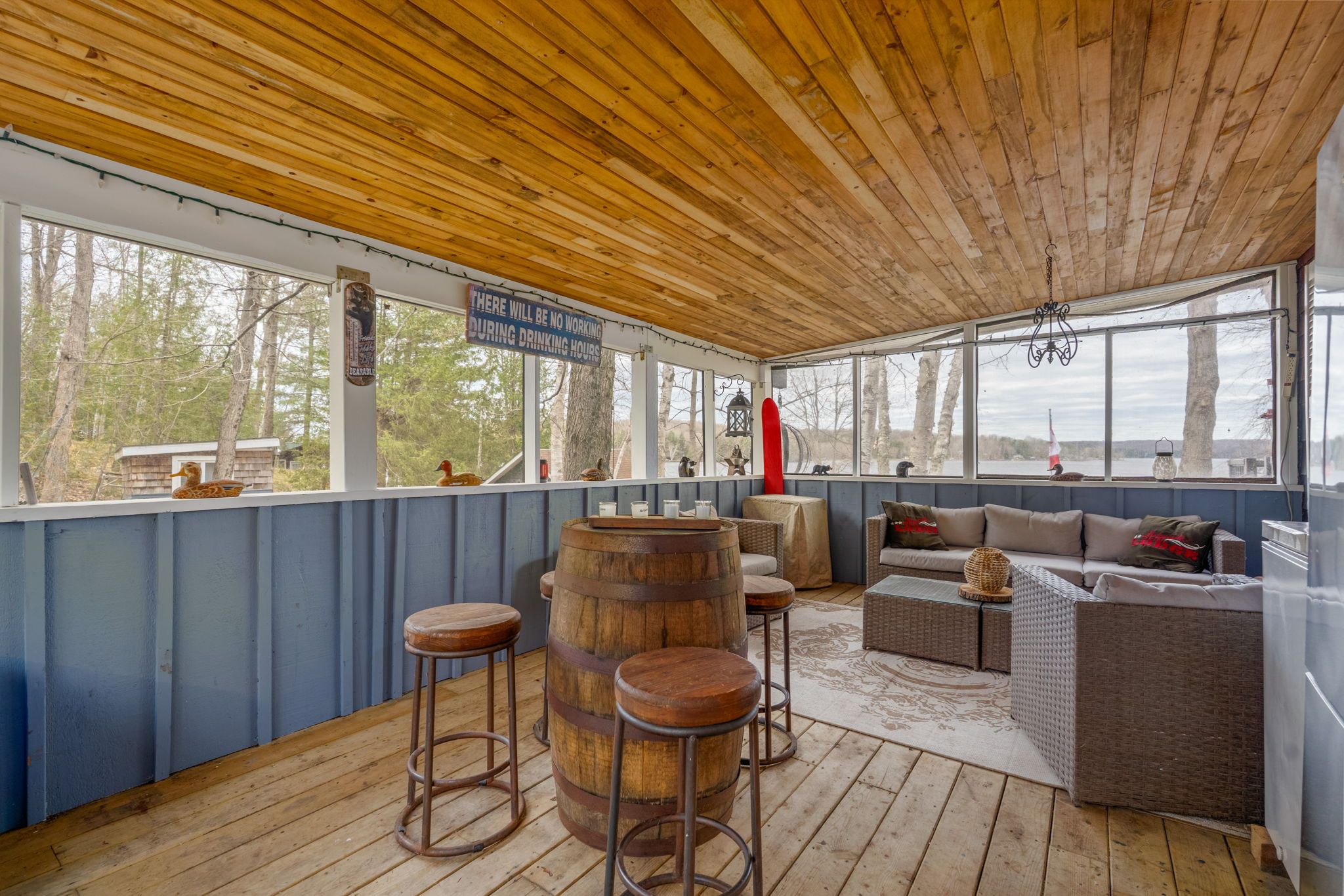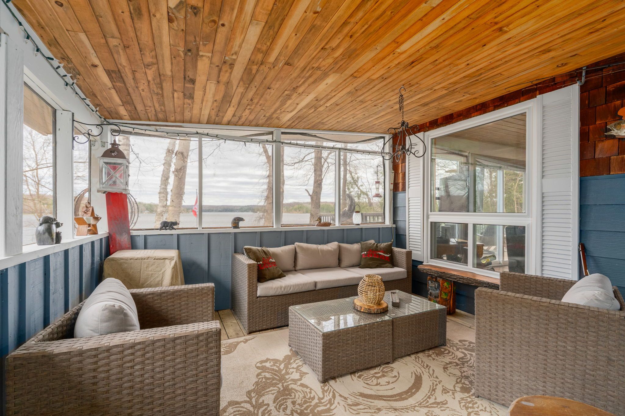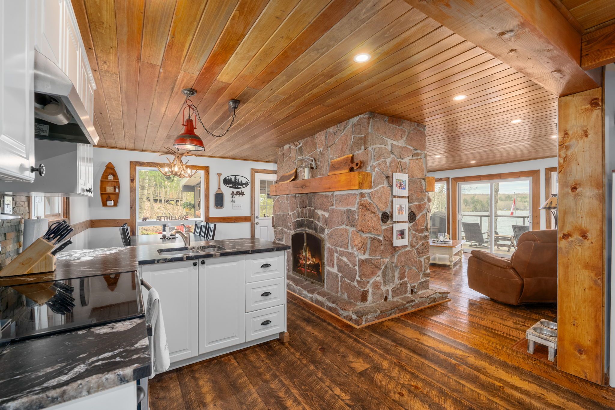 Charming 3 bed, 1 bath plus 2 additional bunkie's. 4-season cabin at three mile lake. A picturesque retreat surrounded by birch, pine, & sugar maple. With its charming rustic canadian aesthetic, it's the perfect taste of muskoka living. Arguably one of the best spots on the lake with expansive, breath taking lake views, deep water with sandy bottom off the fixed dock (wave and wake-proof). Watch sunsets from the dock, then gather by the lake for a cozy fire and roast marshmallows under the stars. Property features a muskoka room, 2 cozy bunkie's, with one on the water, property sleeps 14 people. Wood shed and two additional storage sheds, ample parking, back up generator, brand new roof. Close proximity to port carling and bracebridge. The property has been thoughtfully upgraded with several recent improvements that significantly enhance its comfort and functionality. A new waterside bunkie deck was installed. A brand new shingled roof on the cottage, ensuring durability and aesthetic appeal. In 2022, the water system was fully upgraded with a new water tank and uv water filtration system, including a tannin filter, which provides clean and clear water. Additionally, features like a heated water line, propane furnace, and a heat pump were added to improve energy efficiency and comfort throughout the year. The property also includes a briggs & stratton generator, providing reliable backup power, and comprehensive insulation under the house and in all interior walls, which helps maintain consistent temperatures. The interior was completely renovated, updating the kitchen, living room, bedrooms, ceilings, and floors to modern standards, creating a fresh and inviting atmosphere. These updates collectively make this lakeside retreat highly desirable, combining recent modernization with natural beauty.