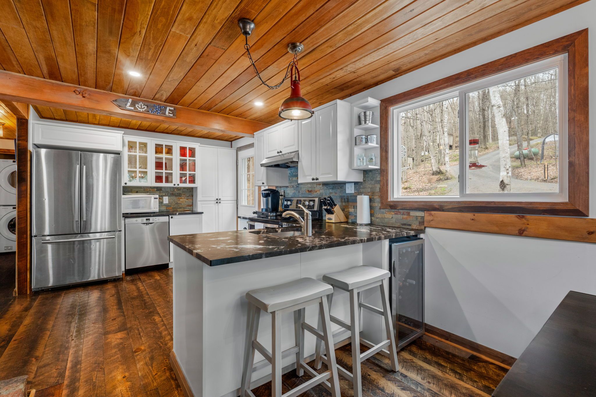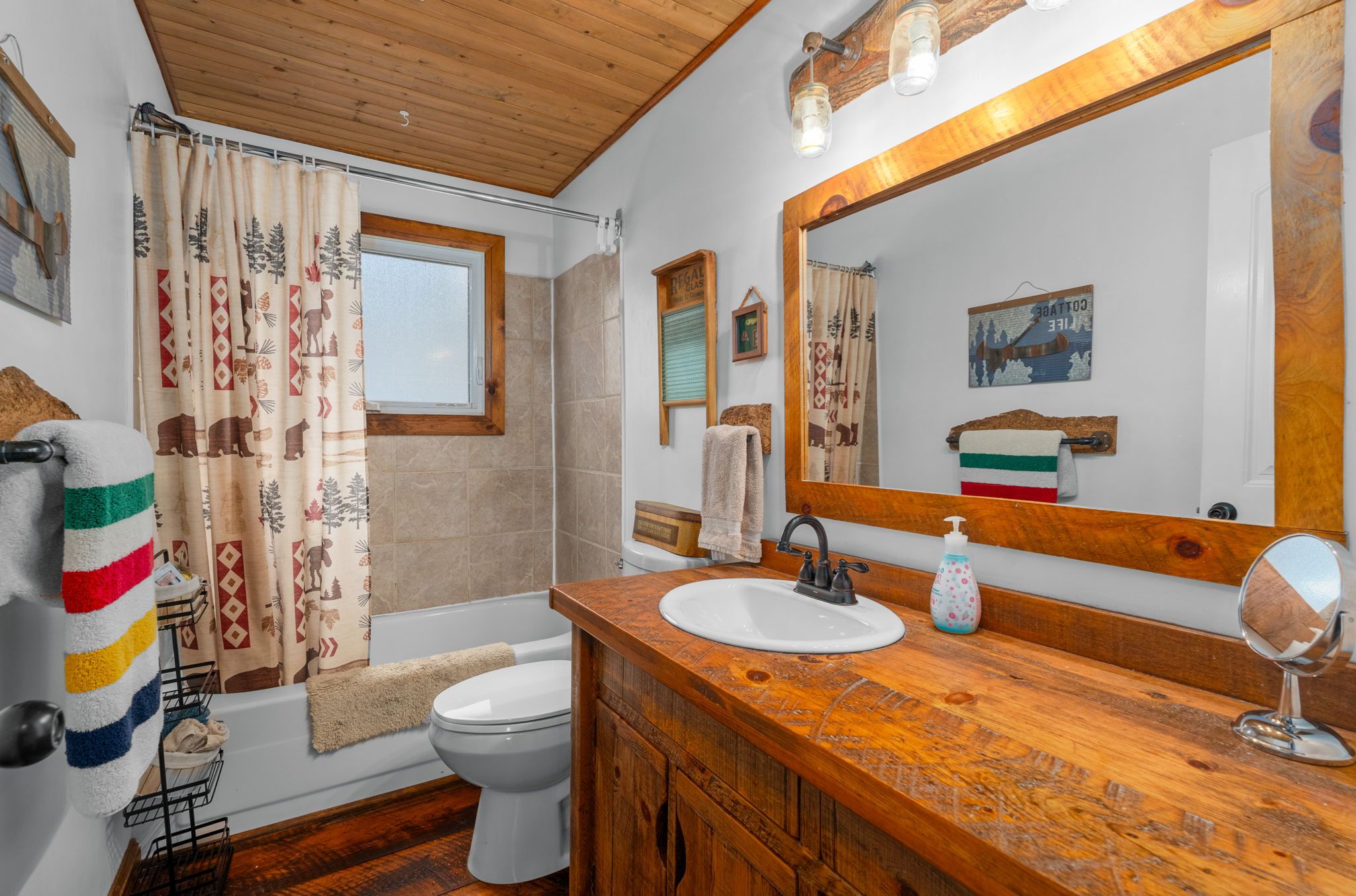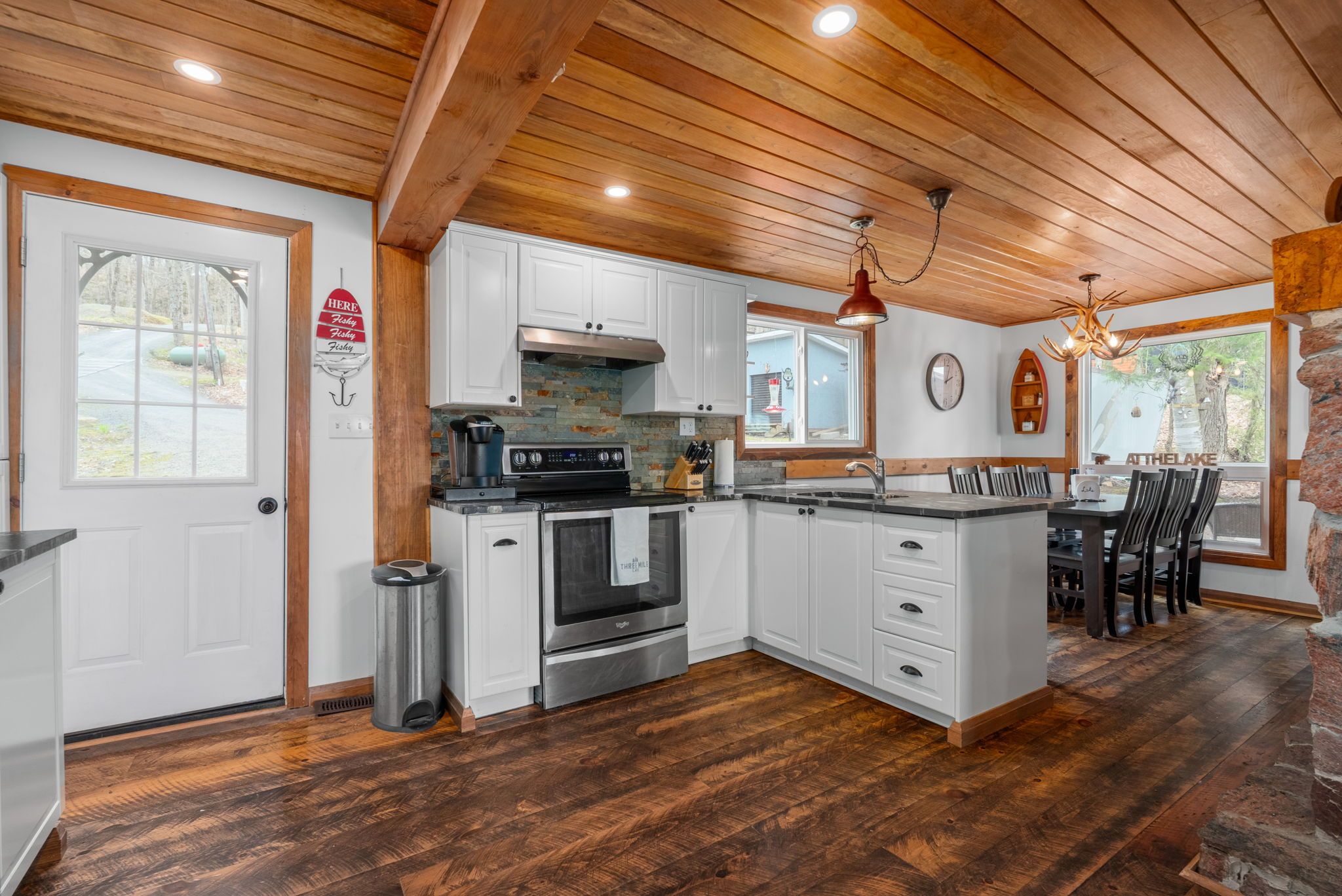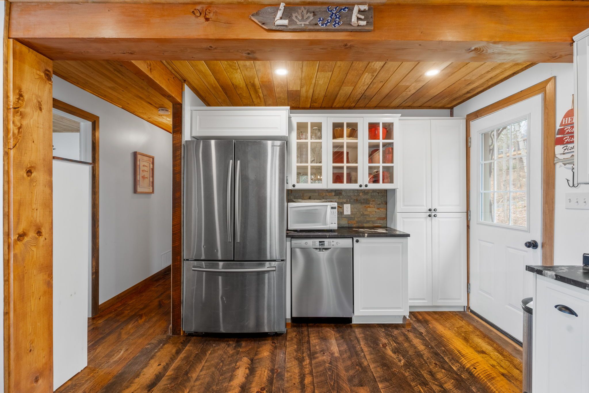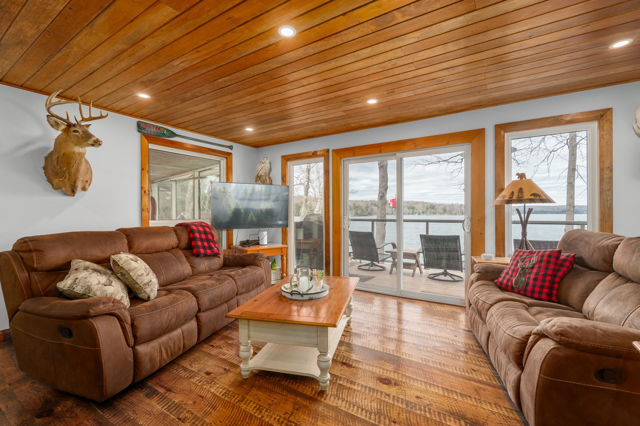 Charming 3 bed, 1 bath plus 2 additional bunkie's. 4-season cabin at three mile lake. A picturesque retreat surrounded by birch, pine, & sugar maple. With its charming rustic canadian aesthetic, it's the perfect taste of muskoka living. Arguably one of the best spots on the lake with expansive, breath taking lake views, deep water with sandy bottom off the fixed dock (wave and wake-proof). Watch sunsets from the dock, then gather by the lake for a cozy fire and roast marshmallows under the stars. Property features a muskoka room, 2 cozy bunkie's, with one on the water, property sleeps 14 people. Wood shed and two additional storage sheds, ample parking, back up generator, brand new roof. Close proximity to port carling and bracebridge. The property has been thoughtfully upgraded with several recent improvements that significantly enhance its comfort and functionality. A new waterside bunkie deck was installed. A brand new shingled roof on the cottage, ensuring durability and aesthetic appeal. In 2022, the water system was fully upgraded with a new water tank and uv water filtration system, including a tannin filter, which provides clean and clear water. Additionally, features like a heated water line, propane furnace, and a heat pump were added to improve energy efficiency and comfort throughout the year. The property also includes a briggs & stratton generator, providing reliable backup power, and comprehensive insulation under the house and in all interior walls, which helps maintain consistent temperatures. The interior was completely renovated, updating the kitchen, living room, bedrooms, ceilings, and floors to modern standards, creating a fresh and inviting atmosphere. These updates collectively make this lakeside retreat highly desirable, combining recent modernization with natural beauty.