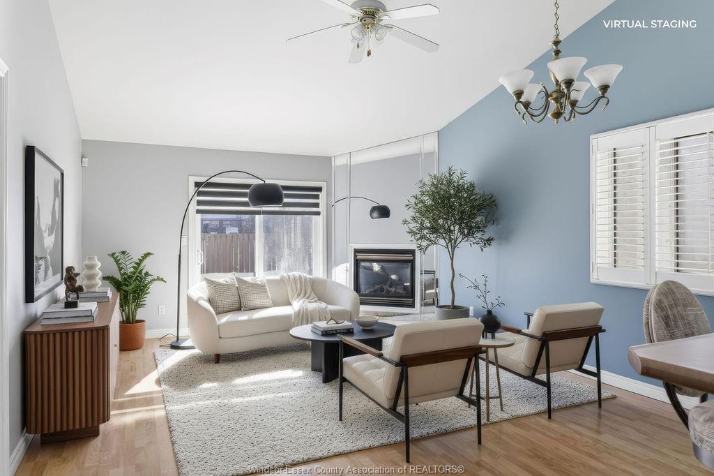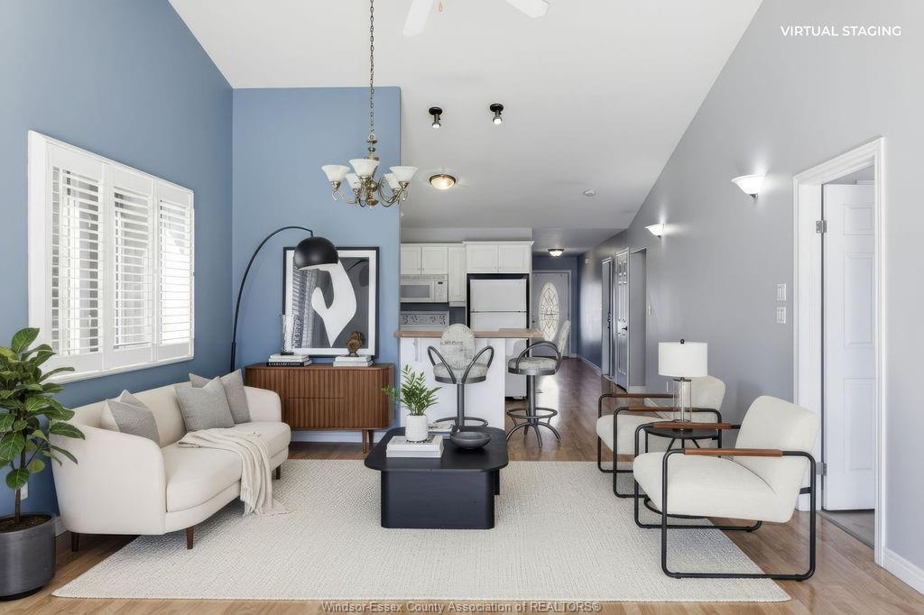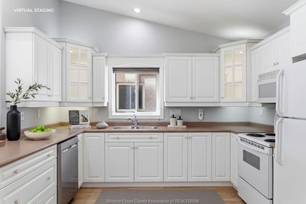 Enjoy maintenance-free living in this beautifully updated east windsor end-unit townhome offering the rare combination of no rear neighbours and a prime location directly across from blue heron park with scenic lake views and walking trails. Situated in a quiet, highly desirable east riverside neighbourhood, this home features an open-concept kitchen with island overlooking the living room with gas fireplace, a spacious primary bedroom with walk-in closet and ensuite, second bedroom or office, and main floor laundry. The unfinished lower level offers excellent potential for additional living space and includes a roughed-in bath and ample storage. Updated paint, flooring, plumbing. Monthly association fee $115 includes, snow, grass, roof, sprinkler.