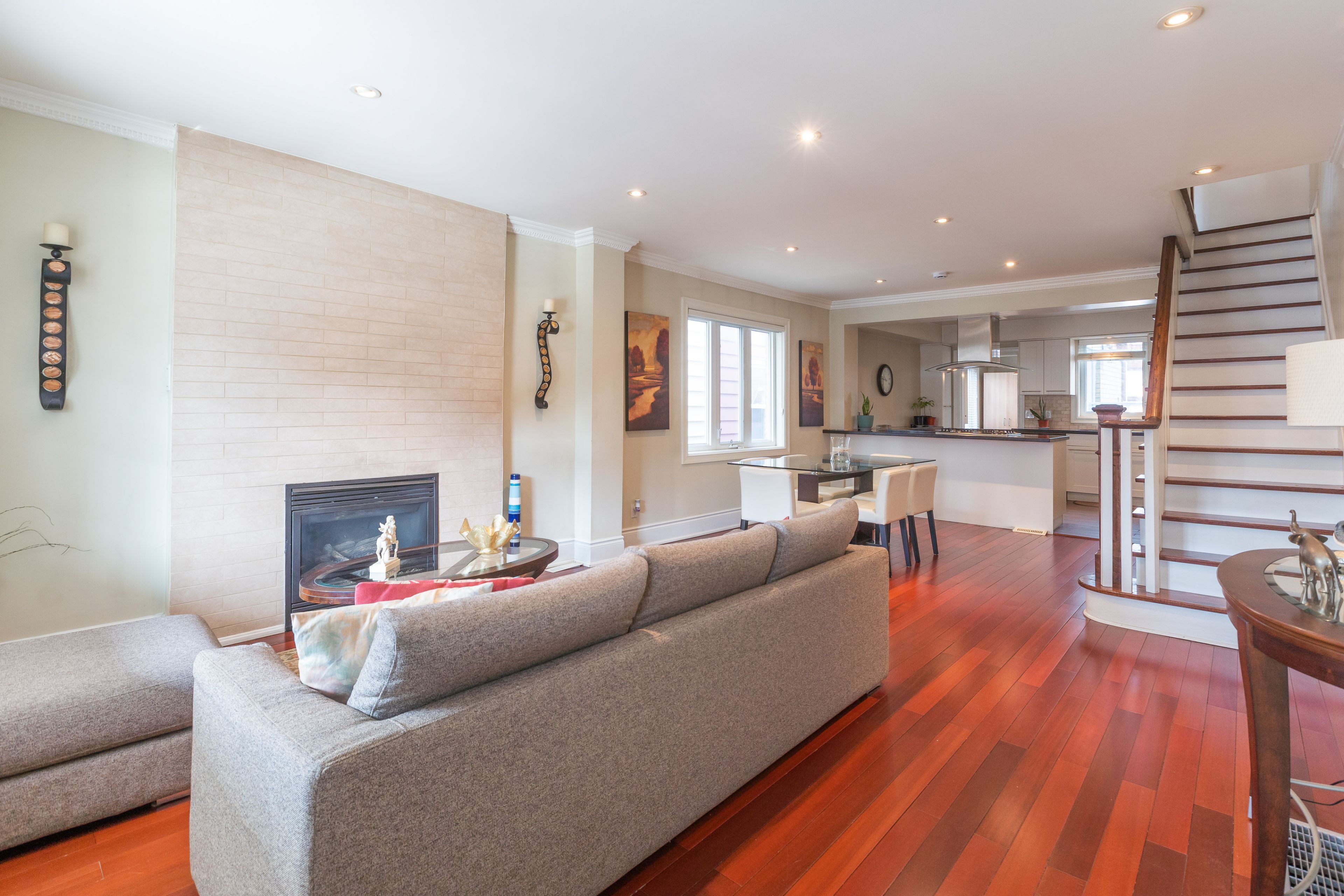 • Spacious open-concept main floor featuring a cozy gas fireplace.