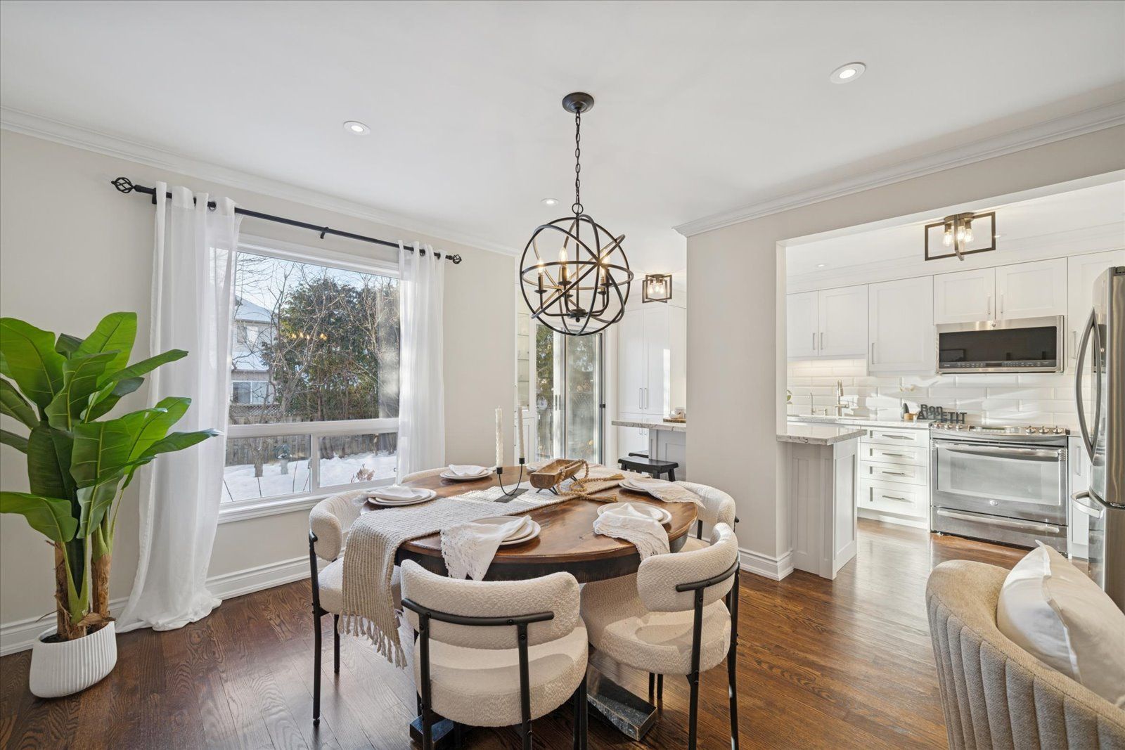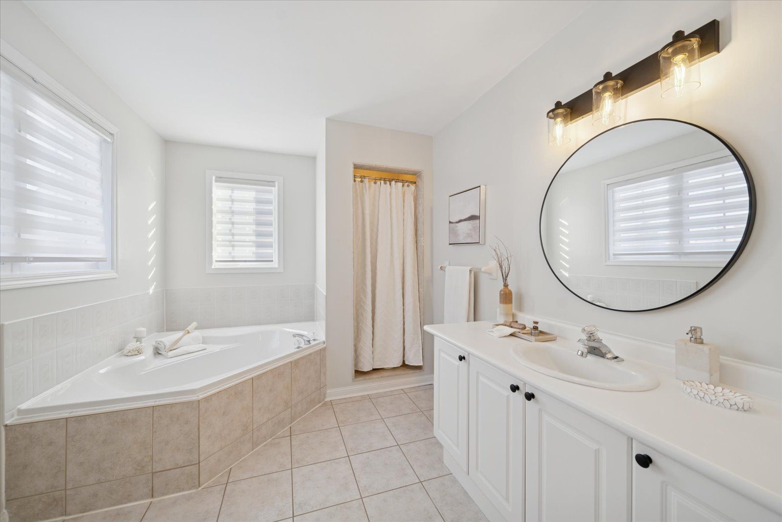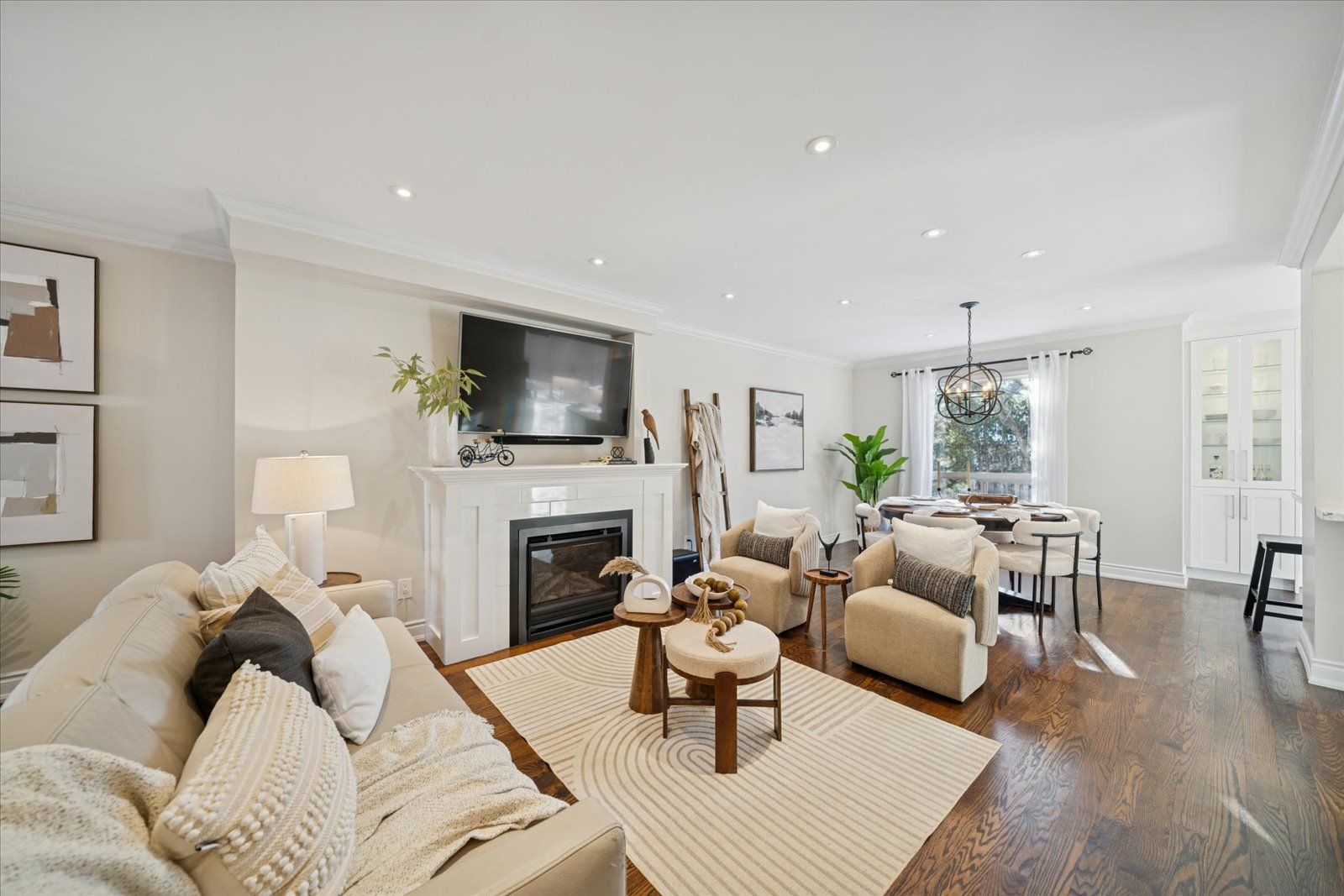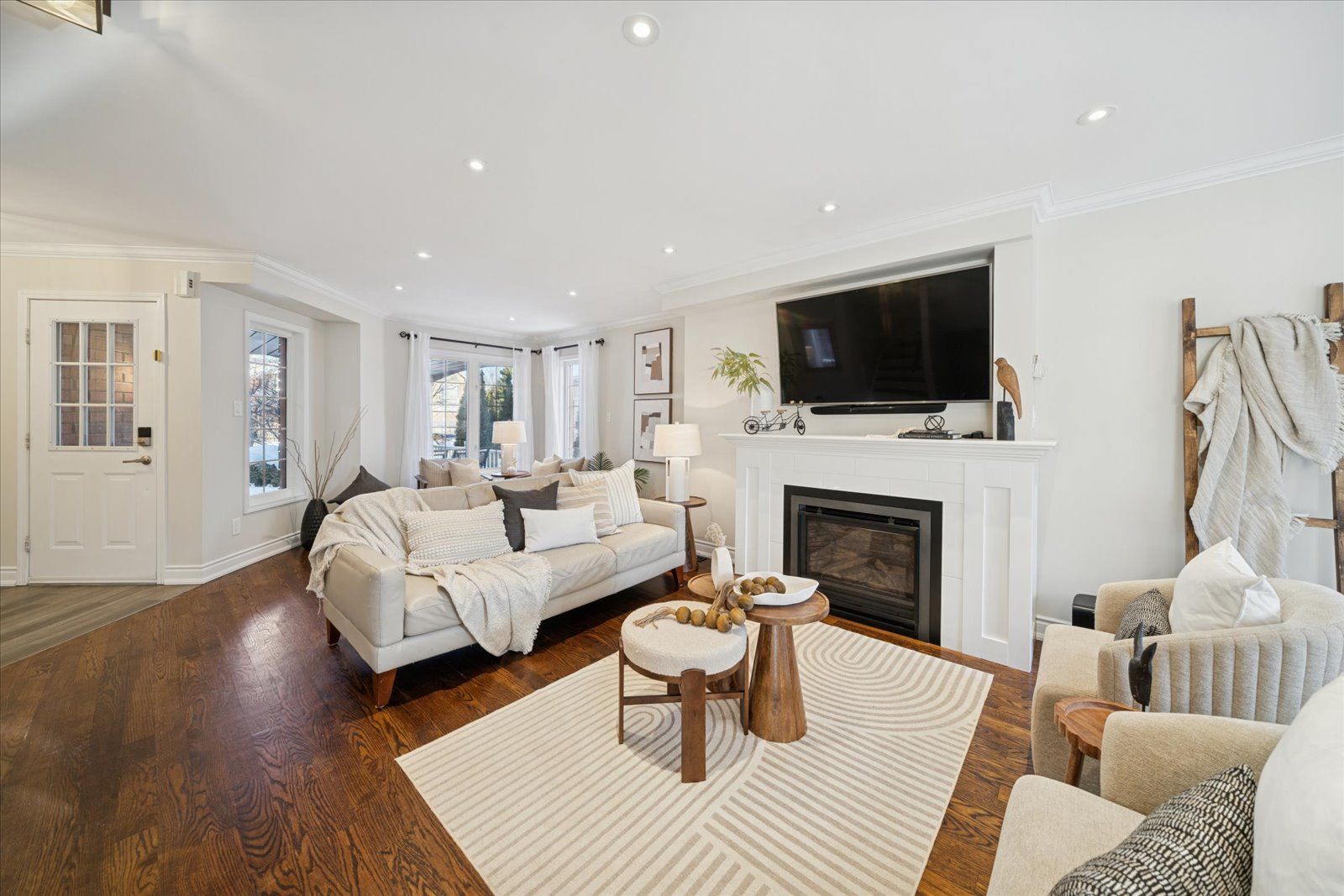 What if your next home checked all of your boxes? This beautifully updated 3-bedroom home with finished basement delivers on layout, style, and location! From the moment you arrive, the impressive curb appeal welcomes you with rich red brick, a covered front porch, and professionally designed landscaping, all set on a quiet street with a private lot in the heart of whitby. Inside, the home feels bright, warm, and inviting with new paint throughout and thoughtfully updated, modern lighting that enhances each space. Completely renovated, the open-concept main floor is designed for connection and everyday living, featuring updated hardwood floors, crown moulding, pot lights, and a cozy gas fireplace that brings the living, dining, and family rooms together into one effortless gathering space. The gorgeous kitchen is truly the heart of the home - beautifully updated with quartz countertops, stainless steel appliances, modern white cabinetry, and a walk-out to the backyard, making entertaining seamless. Step outside to your own private retreat: a fully fenced, professionally landscaped yard with a stone patio and tranquil fish pond, perfect for hosting summer evenings or unwinding at the end of the day. Upstairs, a renovated staircase leads to three comfortable bedrooms, including a primary suite with its own ensuite featuring a separate corner soaker tub and shower. The finished basement offers flexible open-concept space with new carpet, ideal for a rec room, media room, home office, gym - or all of the above! Conveniently located just steps to two parks and sir samuel steele p. S., close to highways 401 and 407 for easy commuting, and minutes to shopping, recreation, and all the amenities whitby has to offer, this is a home that truly balances lifestyle, comfort, and convenience.