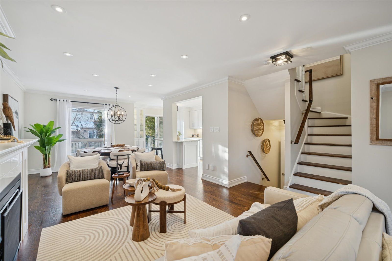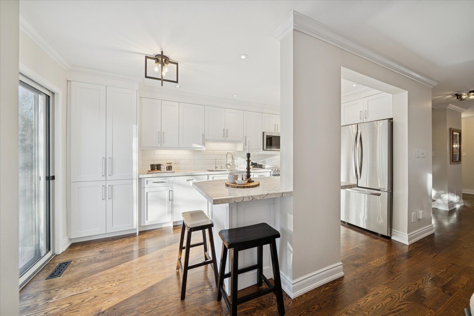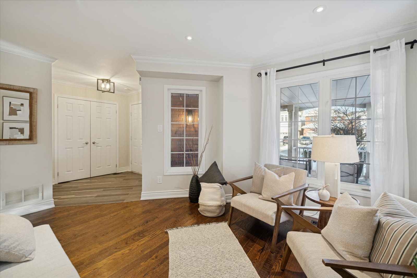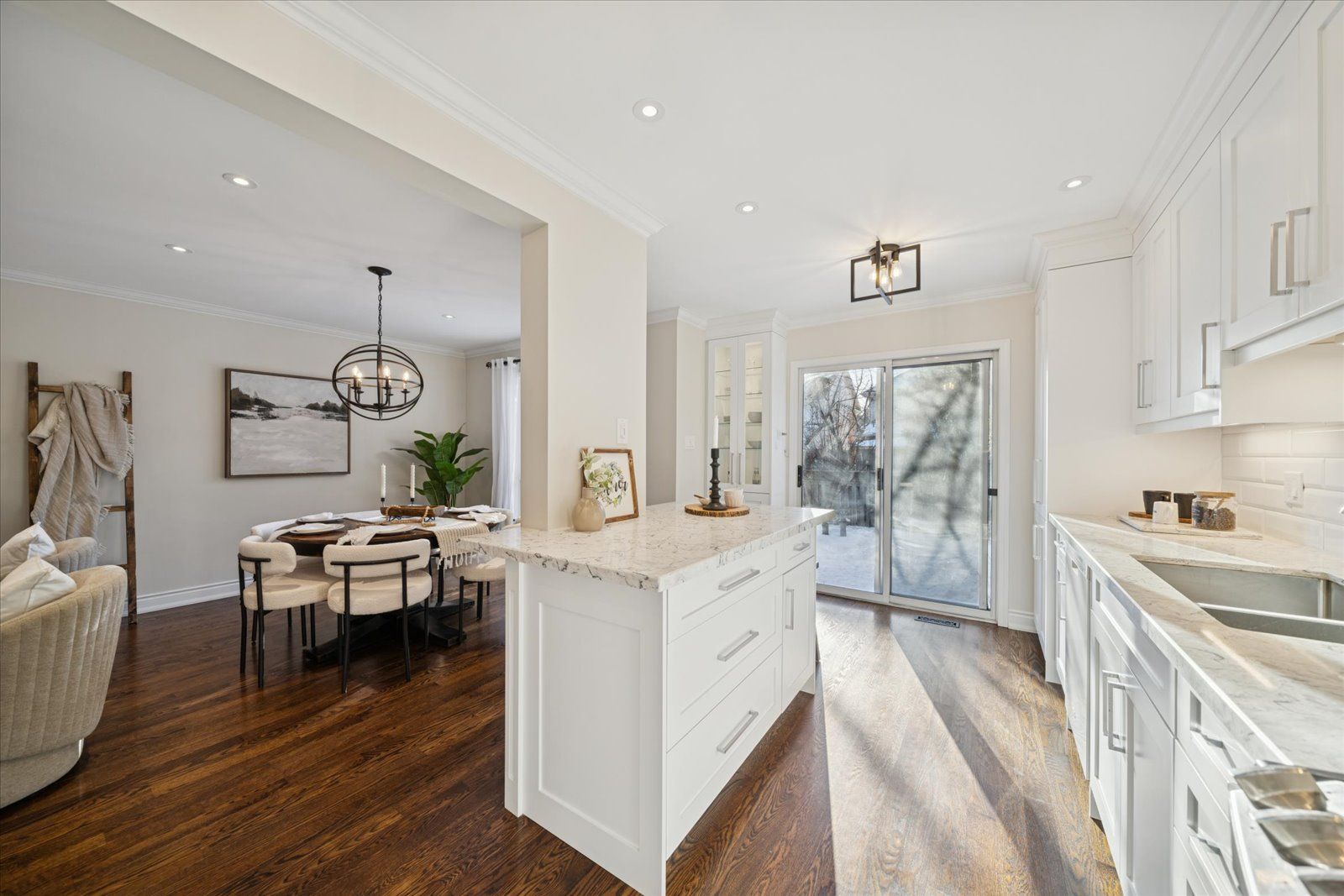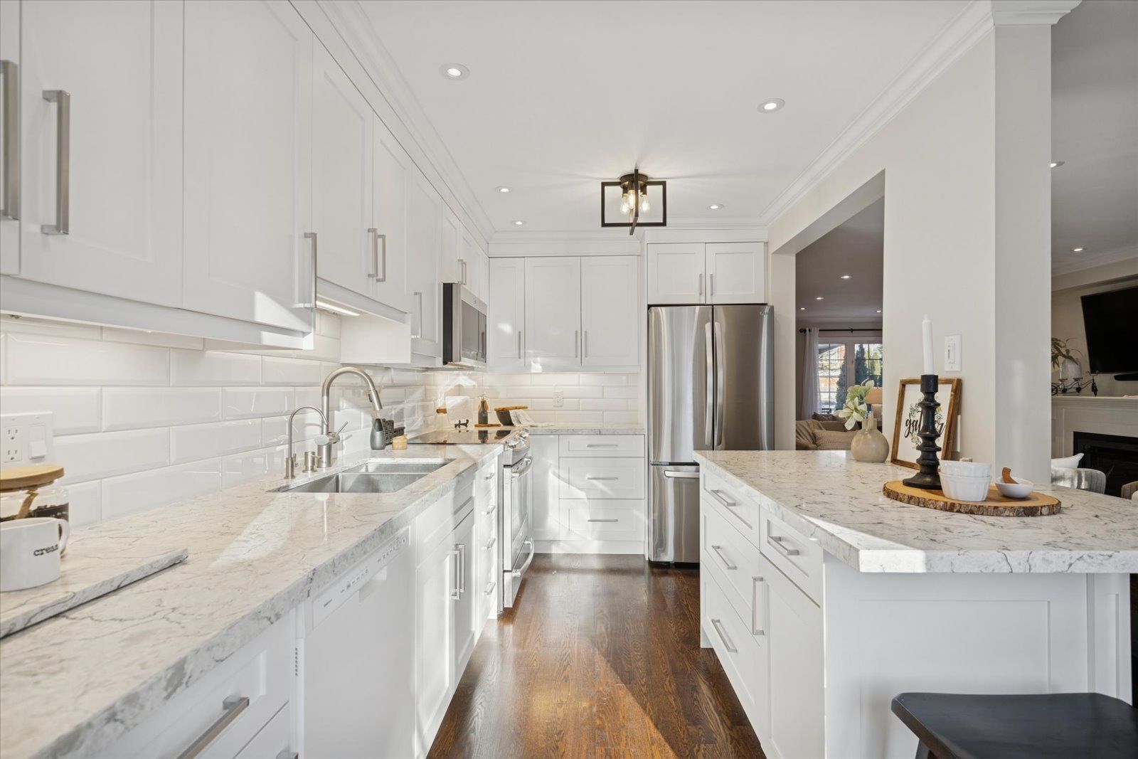 What if your next home checked all of your boxes? This beautifully updated 3-bedroom home with finished basement delivers on layout, style, and location! From the moment you arrive, the impressive curb appeal welcomes you with rich red brick, a covered front porch, and professionally designed landscaping, all set on a quiet street with a private lot in the heart of whitby. Inside, the home feels bright, warm, and inviting with new paint throughout and thoughtfully updated, modern lighting that enhances each space. Completely renovated, the open-concept main floor is designed for connection and everyday living, featuring updated hardwood floors, crown moulding, pot lights, and a cozy gas fireplace that brings the living, dining, and family rooms together into one effortless gathering space. The gorgeous kitchen is truly the heart of the home - beautifully updated with quartz countertops, stainless steel appliances, modern white cabinetry, and a walk-out to the backyard, making entertaining seamless. Step outside to your own private retreat: a fully fenced, professionally landscaped yard with a stone patio and tranquil fish pond, perfect for hosting summer evenings or unwinding at the end of the day. Upstairs, a renovated staircase leads to three comfortable bedrooms, including a primary suite with its own ensuite featuring a separate corner soaker tub and shower. The finished basement offers flexible open-concept space with new carpet, ideal for a rec room, media room, home office, gym - or all of the above! Conveniently located just steps to two parks and sir samuel steele p. S., close to highways 401 and 407 for easy commuting, and minutes to shopping, recreation, and all the amenities whitby has to offer, this is a home that truly balances lifestyle, comfort, and convenience.