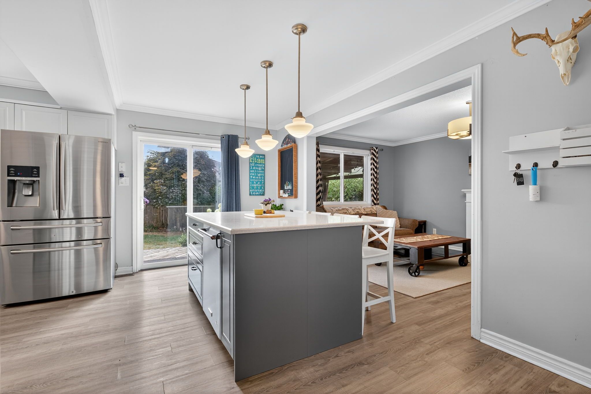 • Large eat-in kitchen with convenient walkout to the backyard.