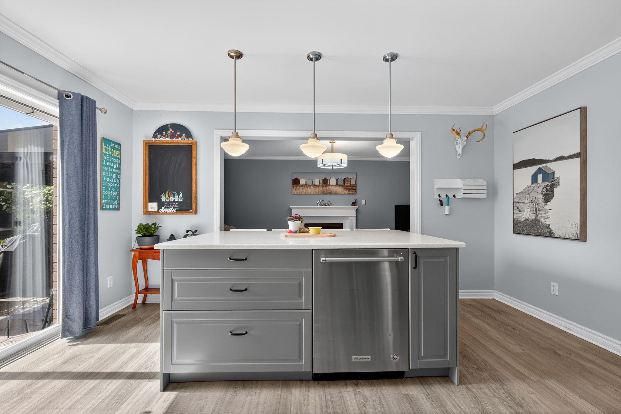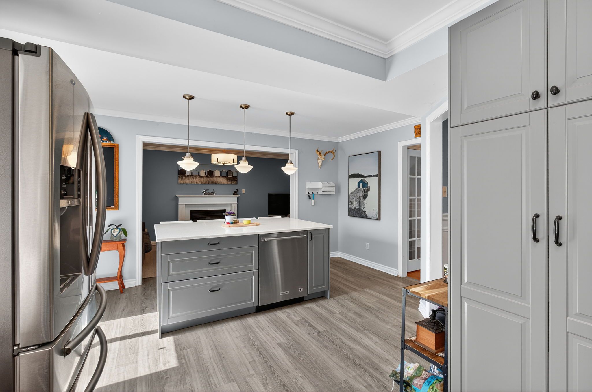 • Main-floor family room with a cozy fireplace for relaxation.