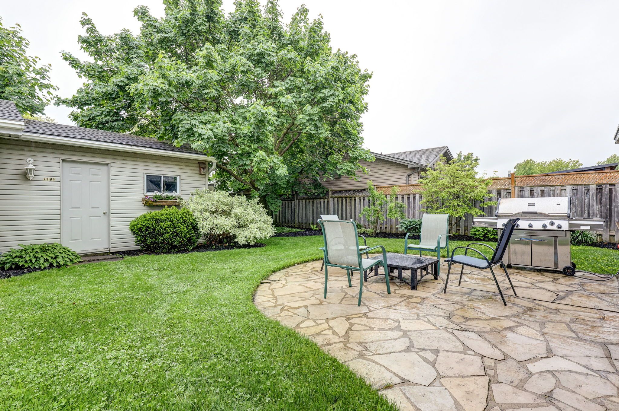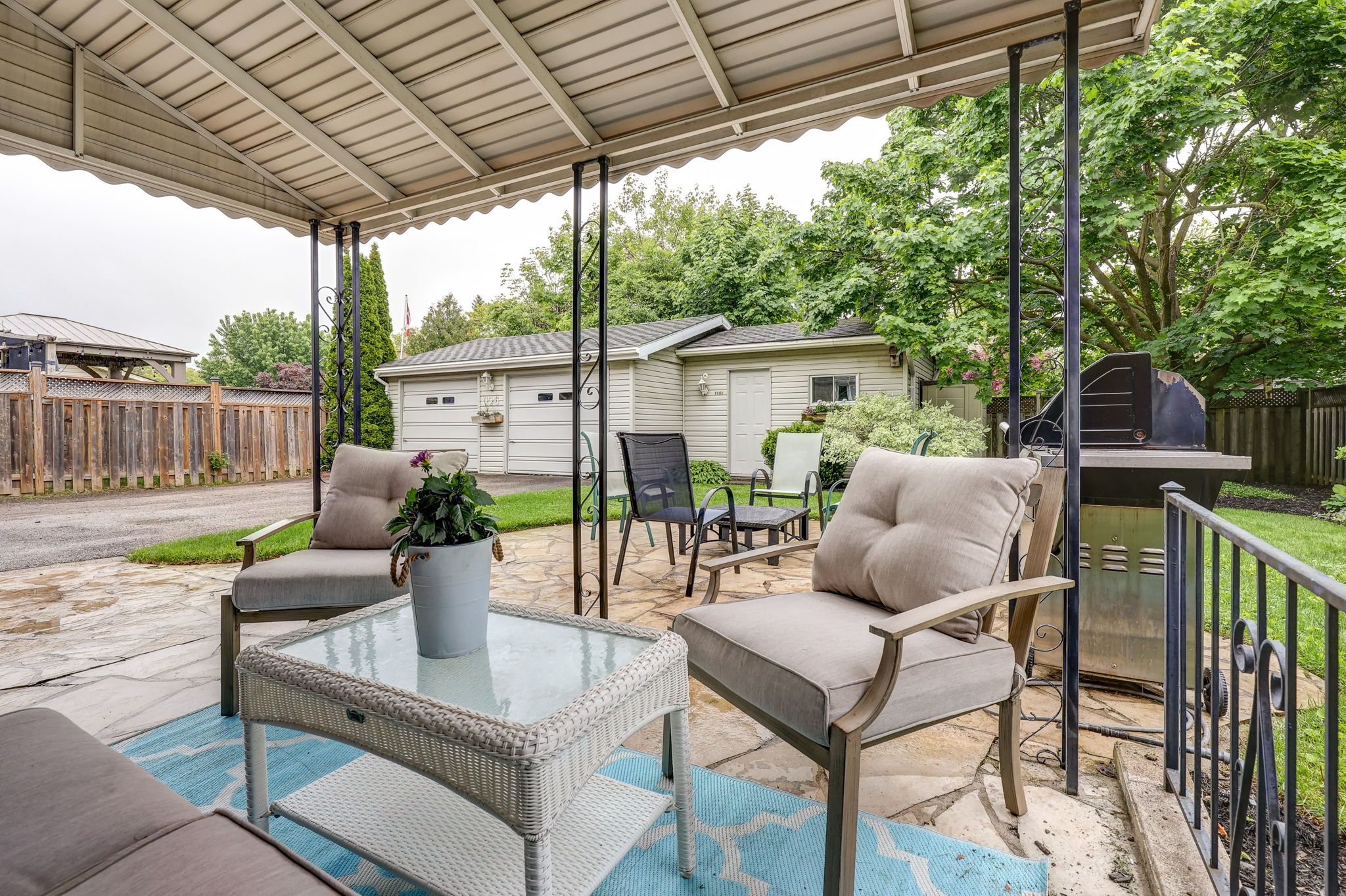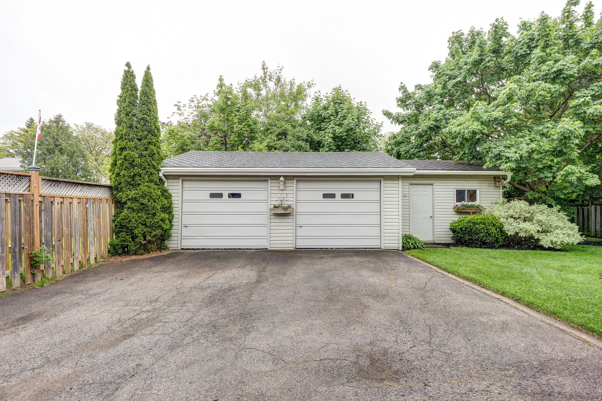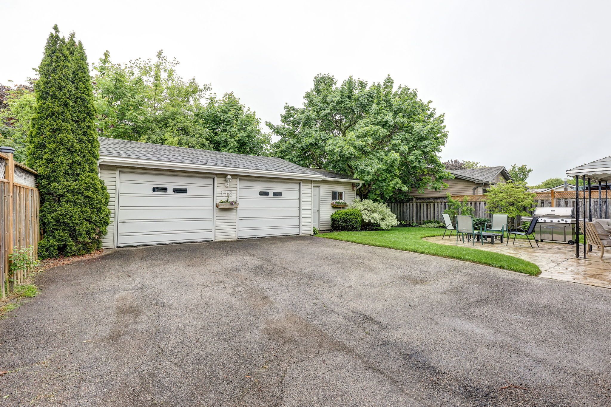 • Detached two-car garage with workshop space for hobbies and projects.