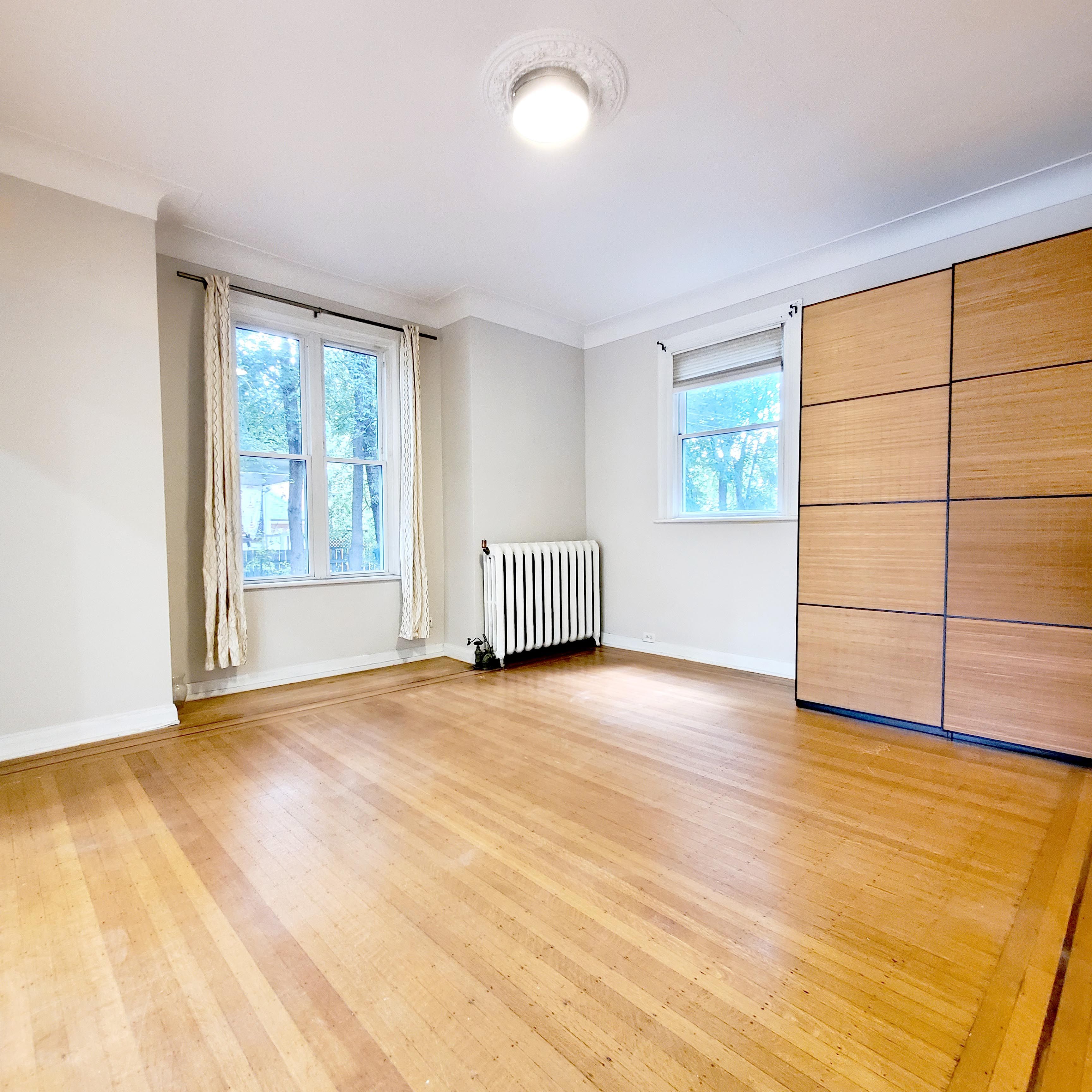 • Bright and spacious with 10' ceilings and large windows for natural light.