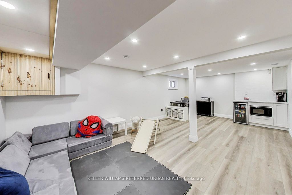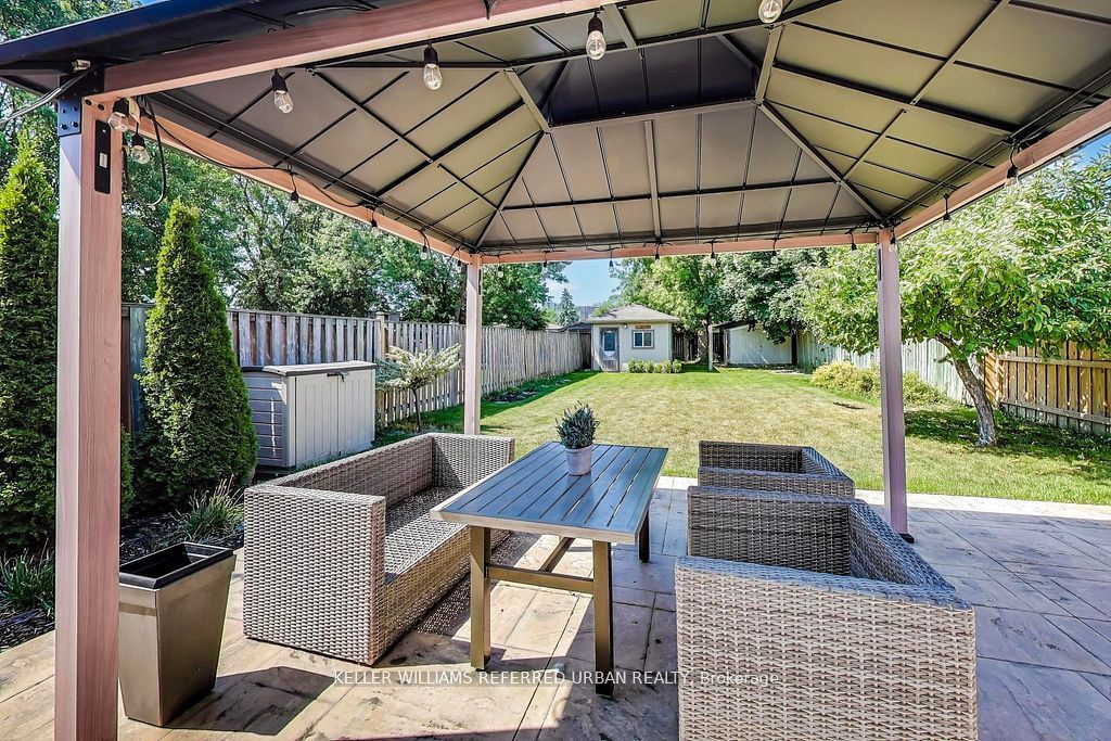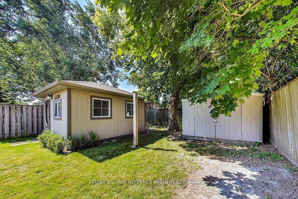 Welcome to this well-maintained semi-detached backsplit bungalow, perfectly situated in a family-friendly neighborhood near queen st e & finchgate blvd. This charming home sits on a generous 35 ft wide by almost 170 ft deep lot - offering a spacious backyard ideal for kids to play, weekend projects, or outdoor entertaining. Featuring 3 bedrooms and 1. 5 baths, this home is filled with natural light and enhanced by custom cordless blinds throughout. The bright and functional layout includes a spacious recreation room in the basement with a kitchenette, perfect for extended family or hosting guests. Enjoy outdoor living with a stamped concrete patio, natural gas line for bbq, and two backyard sheds - one fully equipped with electrical connections and heating, providing the perfect space for a hobby room, play area, or private retreat. Additional highlights include ample under-stairs storage and a new ac (2024) for your comfort and peace of mind. A true family home in a welcoming community, close to schools, parks, shopping, and transit - this property offers both comfort and convenience for today's growing families.