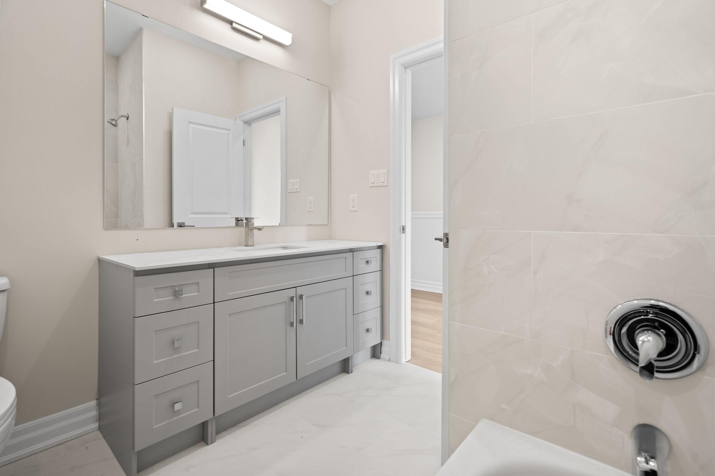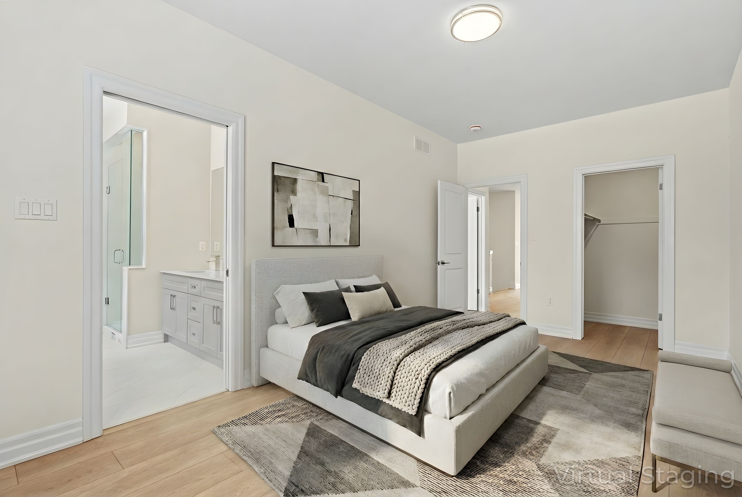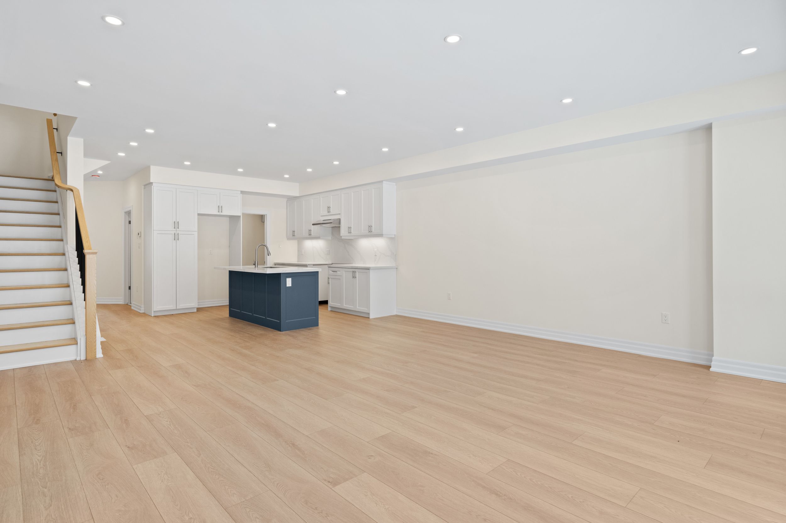 • Modern kitchen with a large quartz island, great for cooking and gatherings.