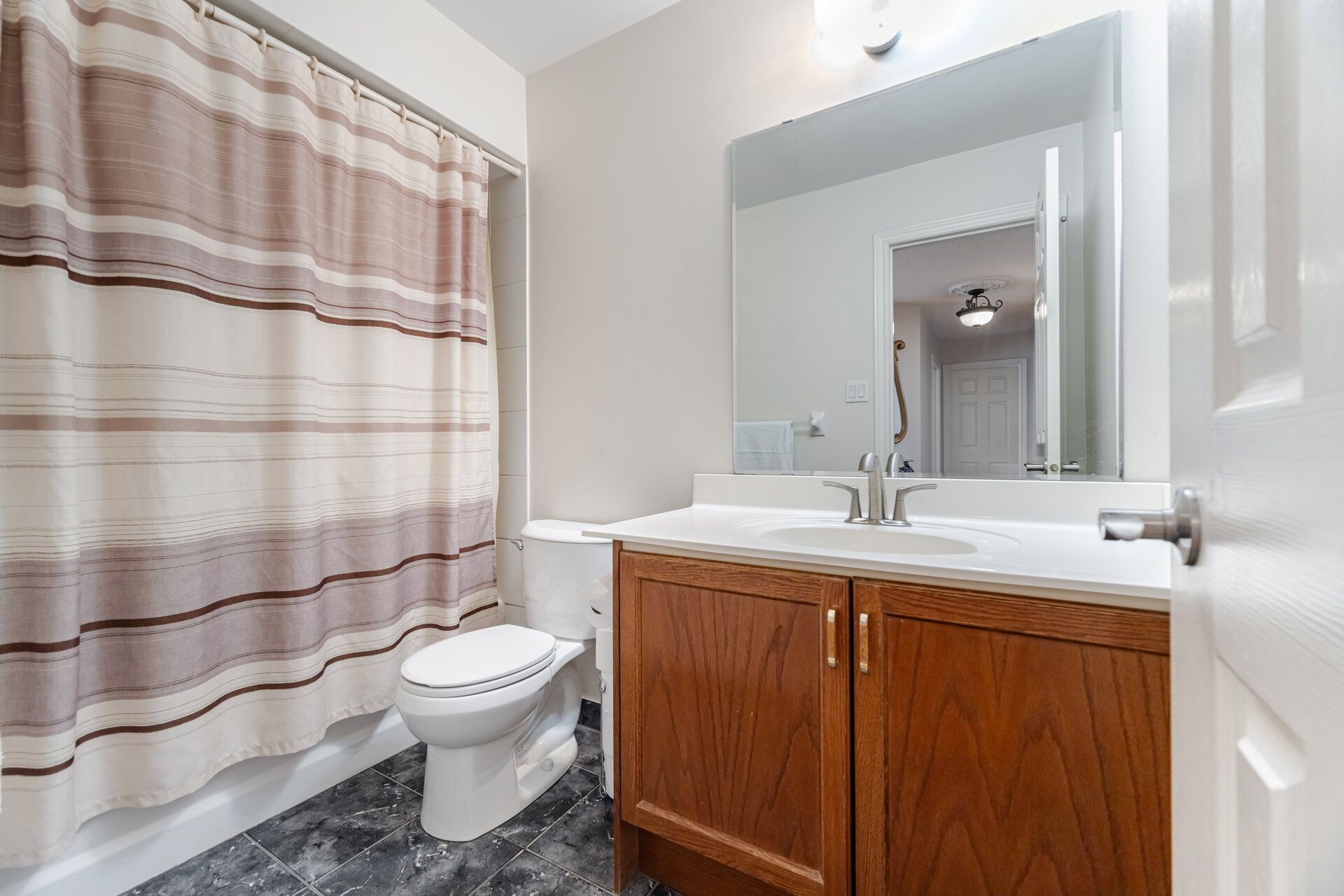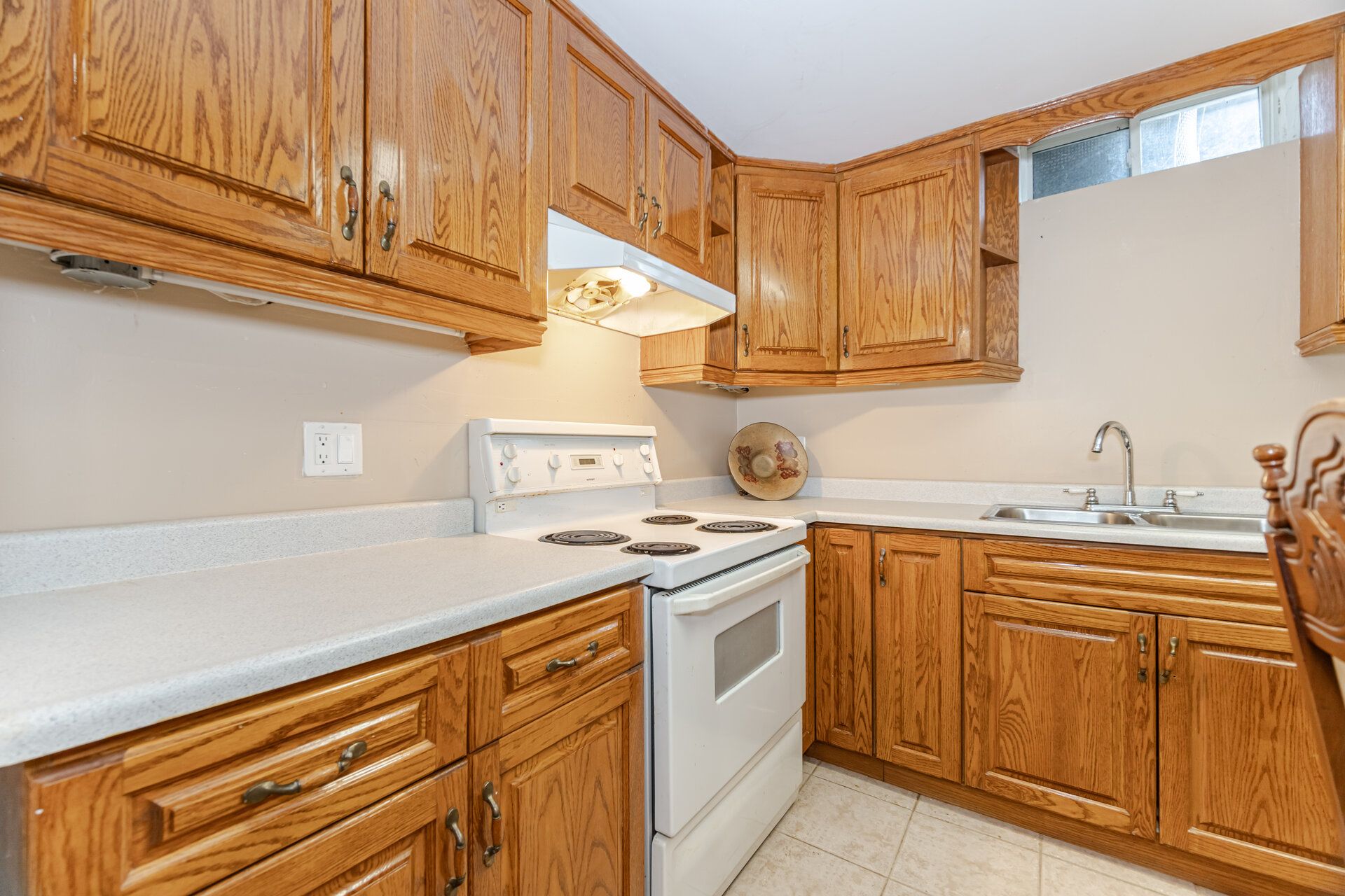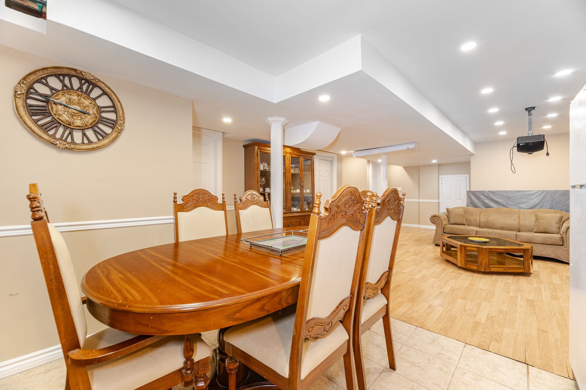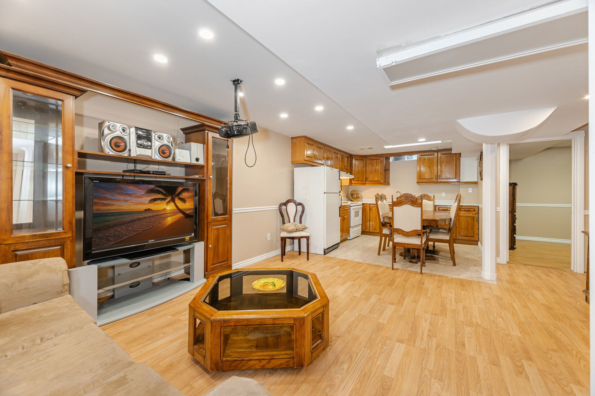 • Finished basement with kitchen, recreation room, and extra bedroom.
