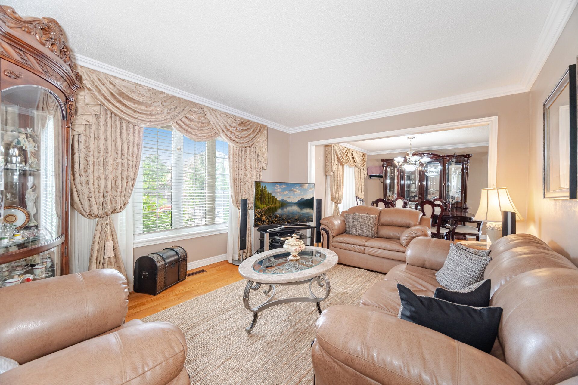 Welcome to this spacious and beautifully maintained 4+1 bedroom, 4 bathroom detached home, featuring a finished basement and 7-car parking perfect for large families or entertaining guests. Step inside to a bright, open-concept main floor with large windows and natural light throughout. The family-sized kitchen offers plenty of cabinet space and a walk-out to a professionally interlocked patio complete with a charming gazebo ideal for outdoor gatherings and summer bbqs. Enjoy the convenience of a main floor laundry room with direct garage access, and a versatile upper-level family room currently used as an additional bedroom, plus 4 spacious bedrooms upstairs with ample closet space. The finished basement offers an open-concept kitchen and recreation room, a 3-piece bathroom, and an additional bedroom perfect for in-law suite or extended family. Located in the sought-after bolton west community, close to parks, schools, and amenities. Dont miss this incredible opportunity!