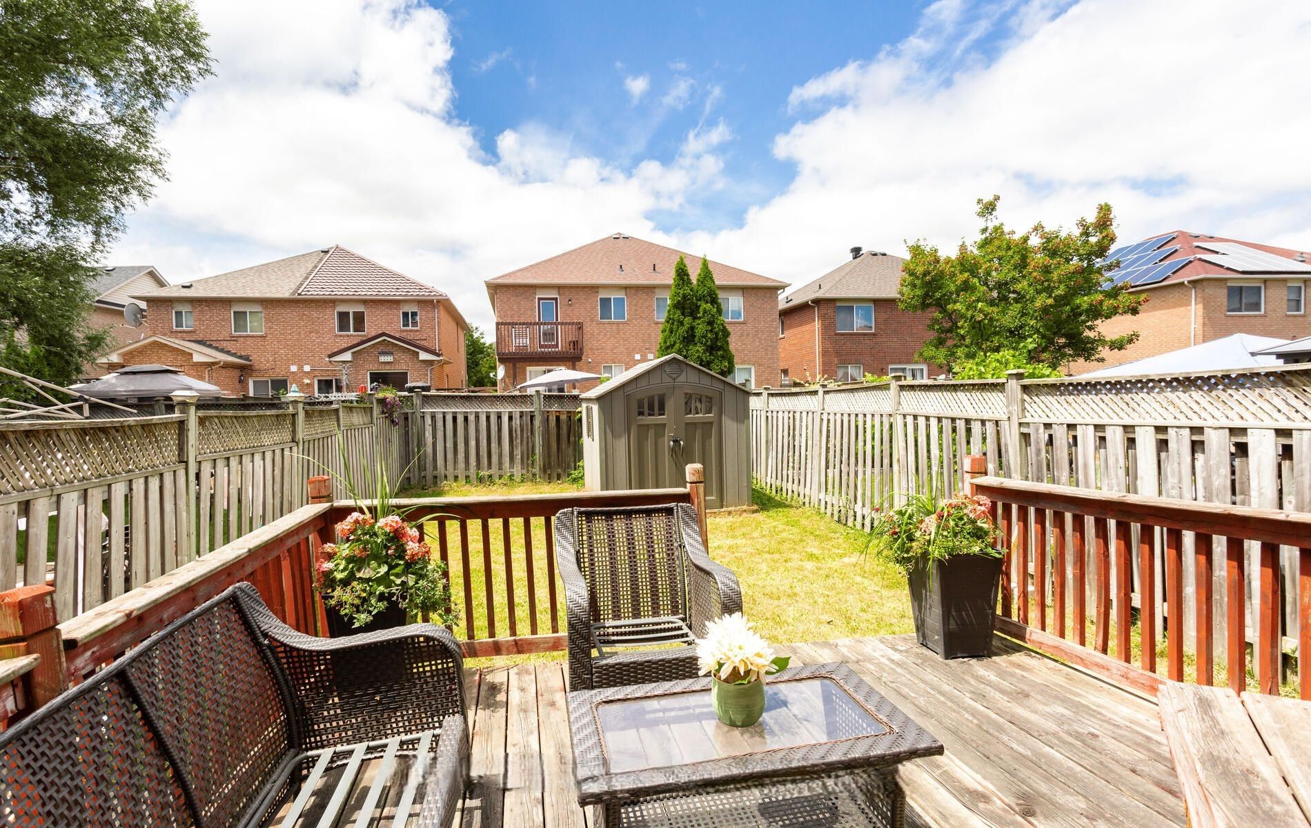 Welcome to this beautifully maintained all-brick semi-detached home, ideally located in one of brampton's most convenient and family-friendly neighbourhoods. Just a short walk to mount pleasant go station, transit, schools, parks, and local plazas with quick access to major highways, the hospital, and trinity common mall this location truly checks every box. Step inside to a bright, open-concept layout featuring upgraded hardwood and laminate flooring throughout no carpet in sight. The combined living and dining space flows seamlessly into a modern kitchen with a centre island and breakfast area, complete with a walk-out to a private deck and fully fenced backyard with a storage shed perfect for outdoor enjoyment. Upstairs, oak stairs lead to three generously sized bedrooms, including one with its own private balcony. The primary suite offers a walk-in closet and a 4-piece ensuite, creating a comfortable and functional retreat. With interior garage access, thoughtful upgrades throughout, this home is an exceptional opportunity for tenants seeking both style and convenience. Tenant to pay 65% of utilities.
