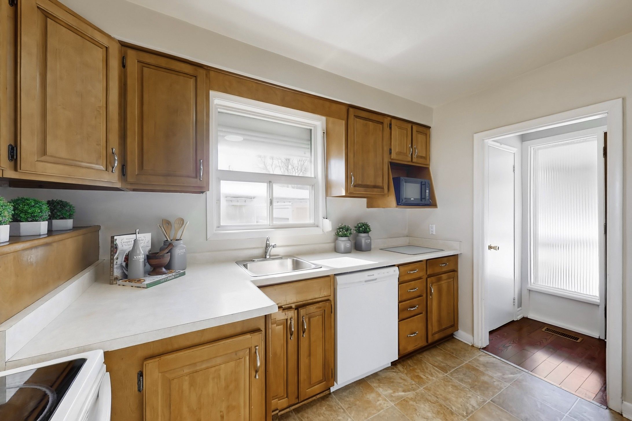 • Spacious main floor with three bedrooms and hardwood flooring.