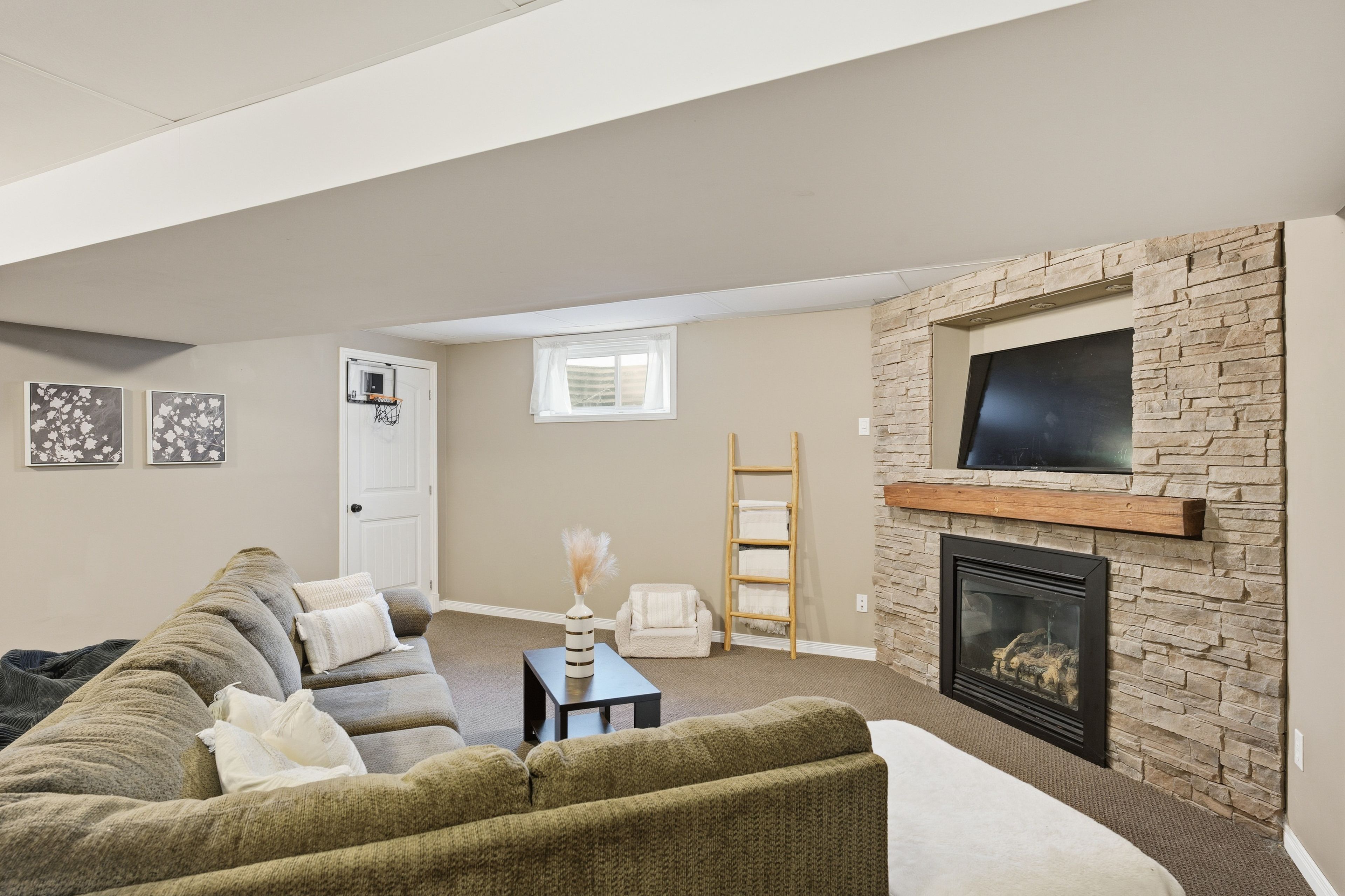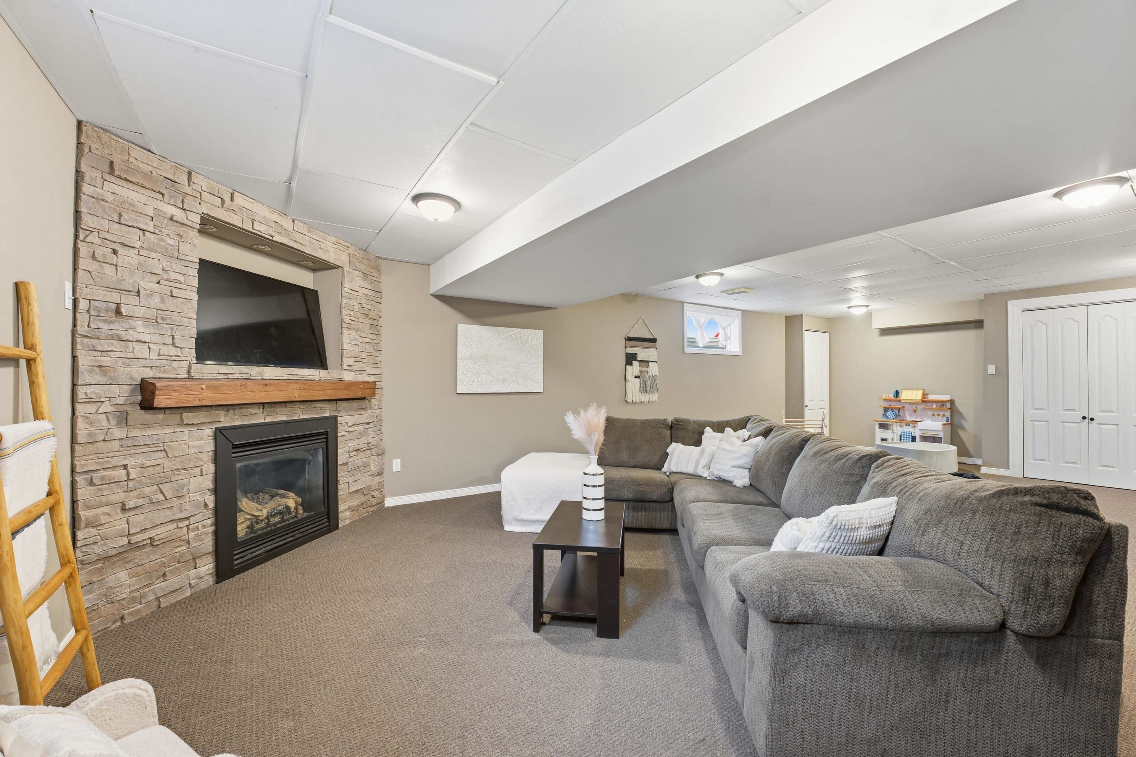 • Finished lower level with family room, bath, and extra bedroom.