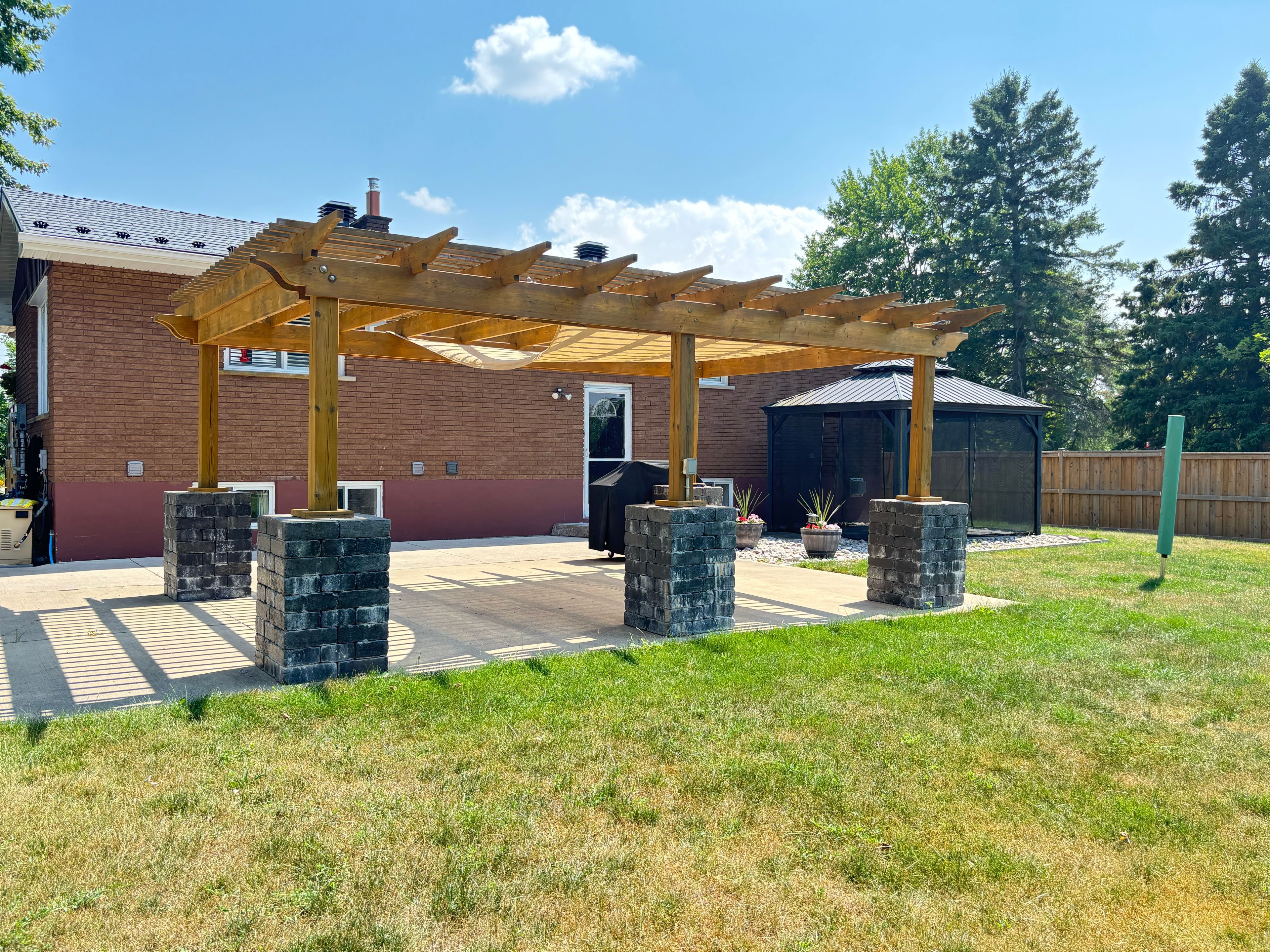 • Backyard features a gazebo and pergola, perfect for summer gatherings.