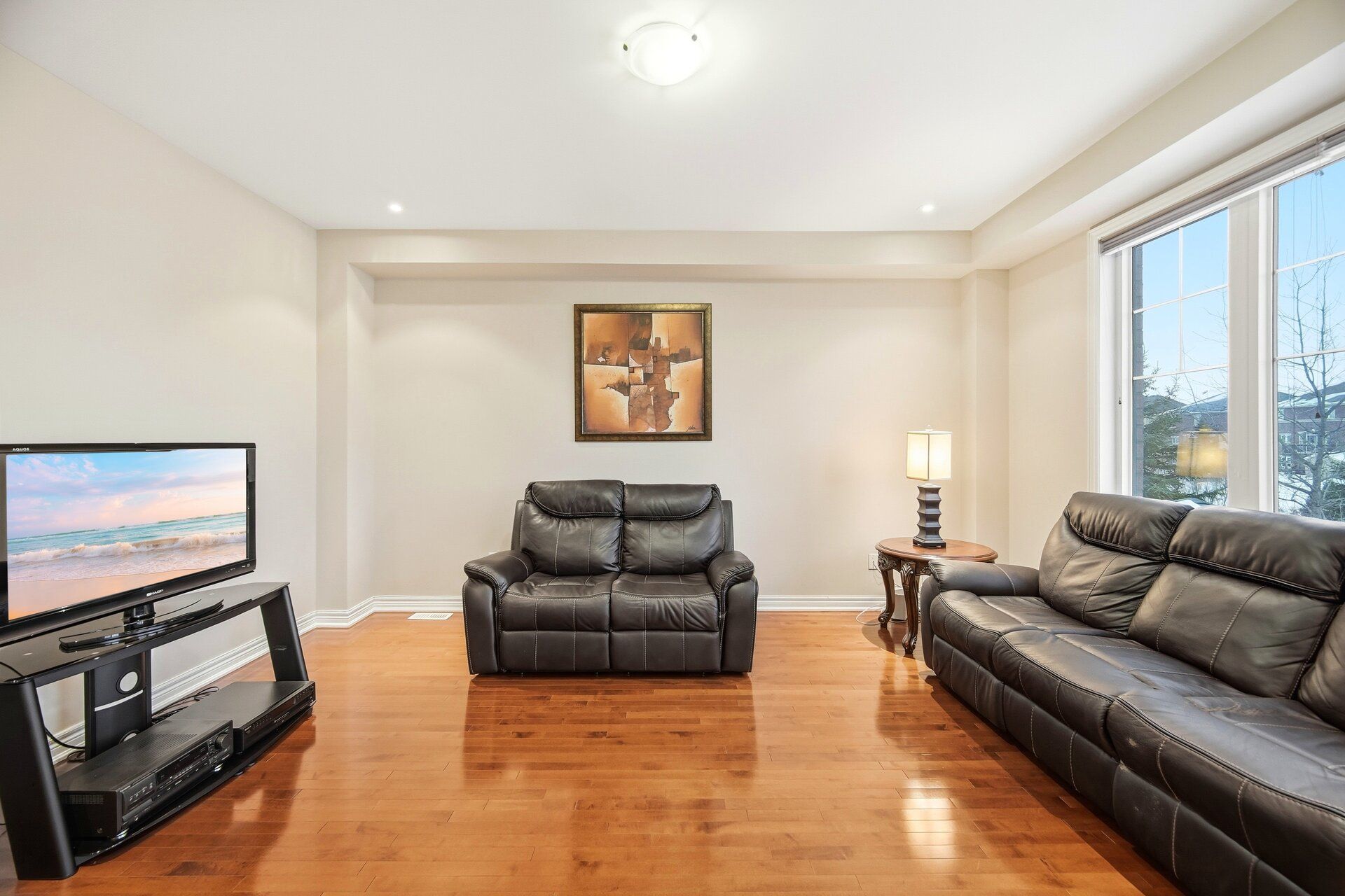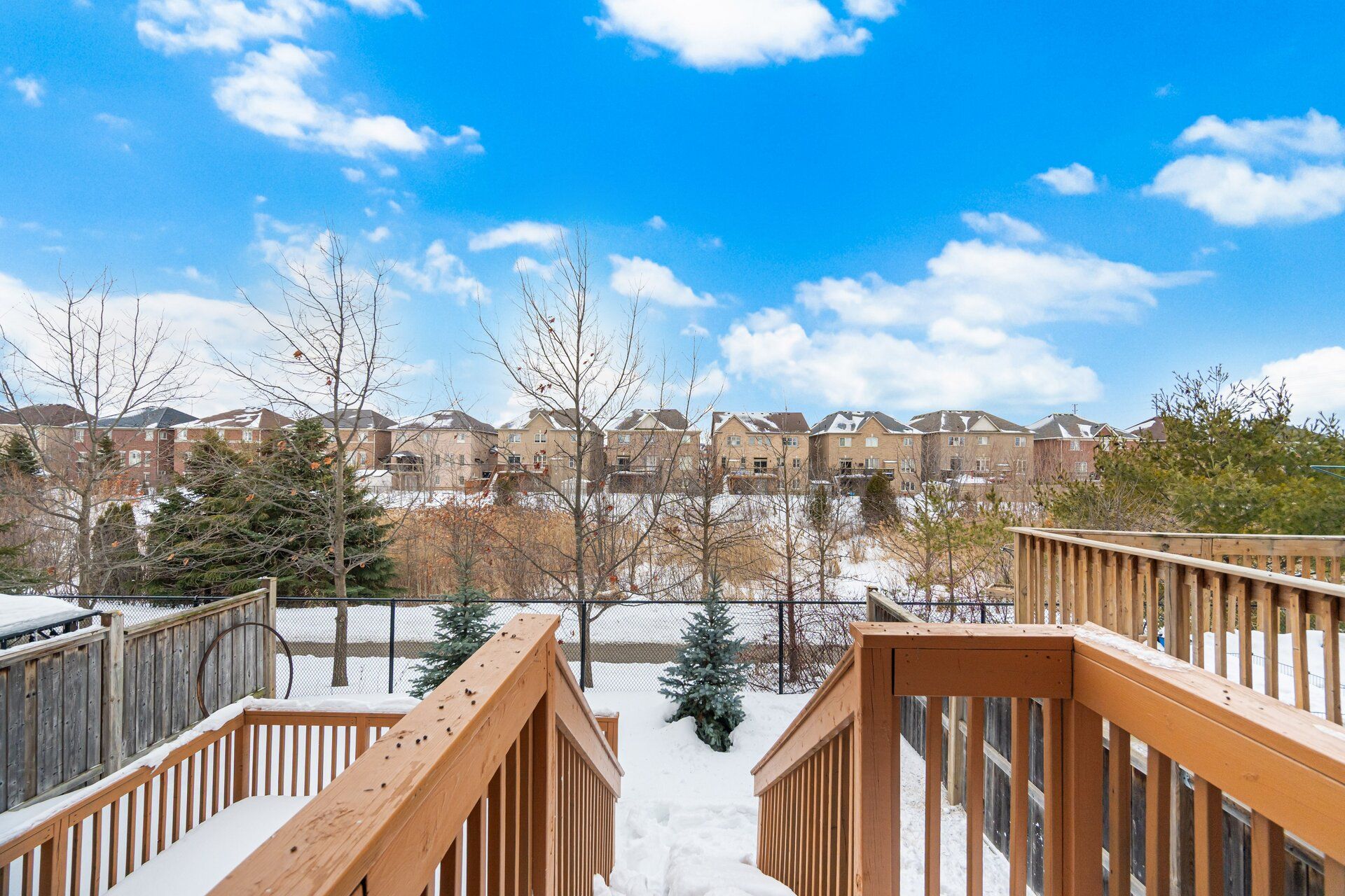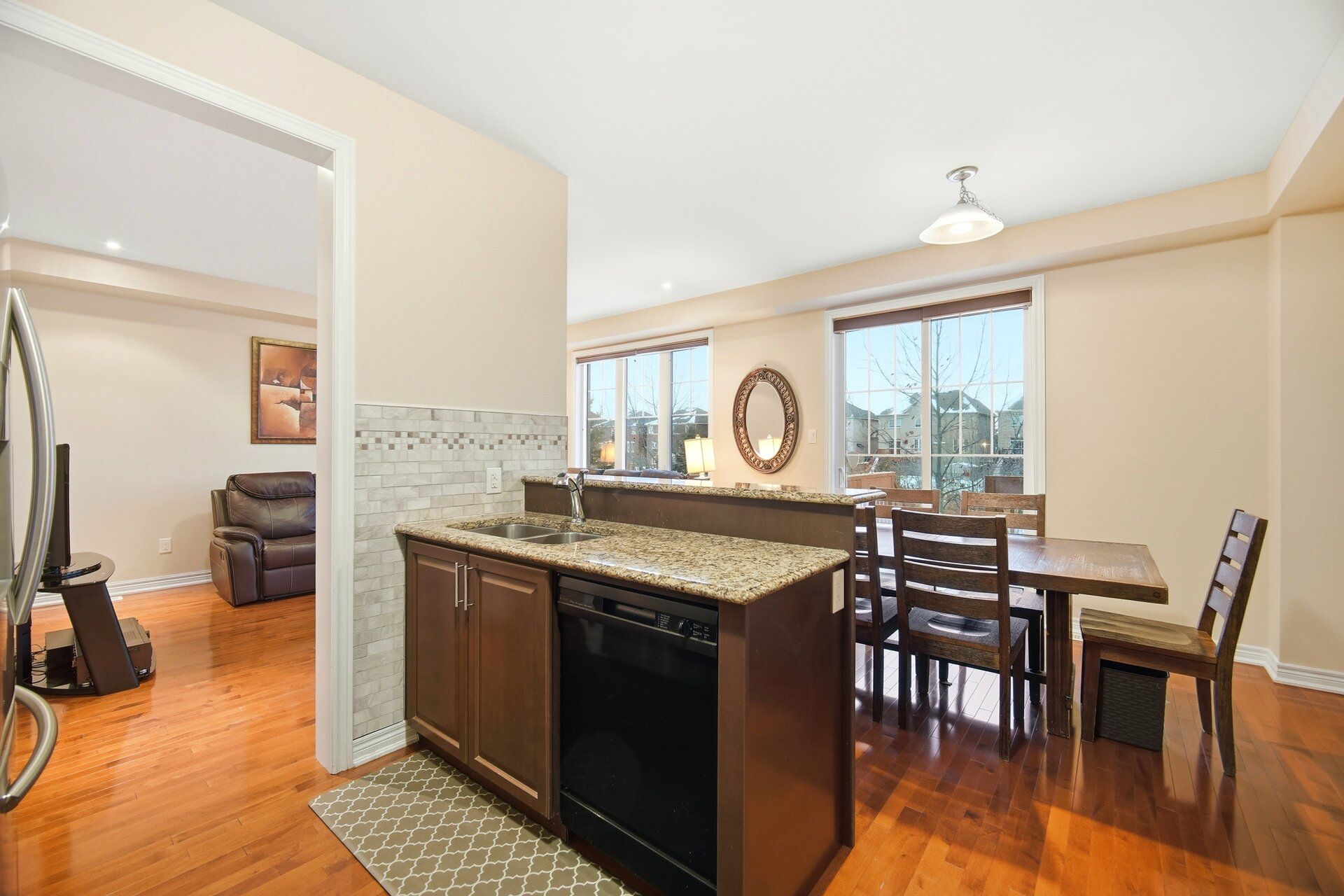 Stunning freehold executive townhome offering nearly 2,000 sq. Ft. Of elegant, upgraded living space in a highly sought-after location! Featuring 9' ceilings and a solid concrete party wall between units for enhanced privacy and soundproofing, this home backs onto a beautiful ravine-providing peaceful views and no rear neighbours. Flooded with natural light, the open-concept layout is perfect for modern living and entertaining. Enjoy a professionally finished open concept basement (with 600+ sq. Ft finished by the builder). Additional living space-ideal for a media room, home office, gym, or extended family use. Loaded with upgrades throughout, including hardwood floors, a hardwood staircase, stylish kitchen cabinetry, granite countertops, and upgraded r60+ insulation for improved energy efficiency and year-round comfort. Step outside to a fully fenced backyard featuring a large deck-perfect for summer bbqs, morning coffee, or relaxing in your private outdoor retreat. Conveniently located close to top-rated schools, parks, shopping, all amenities, and quick access to hwy 410-making commuting a breeze. This is the complete package-just move in and enjoy luxury, comfort, and location all in one.
