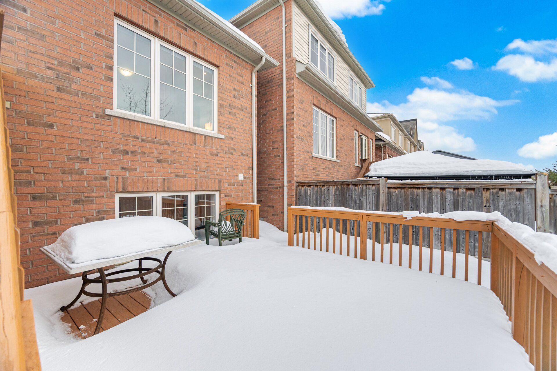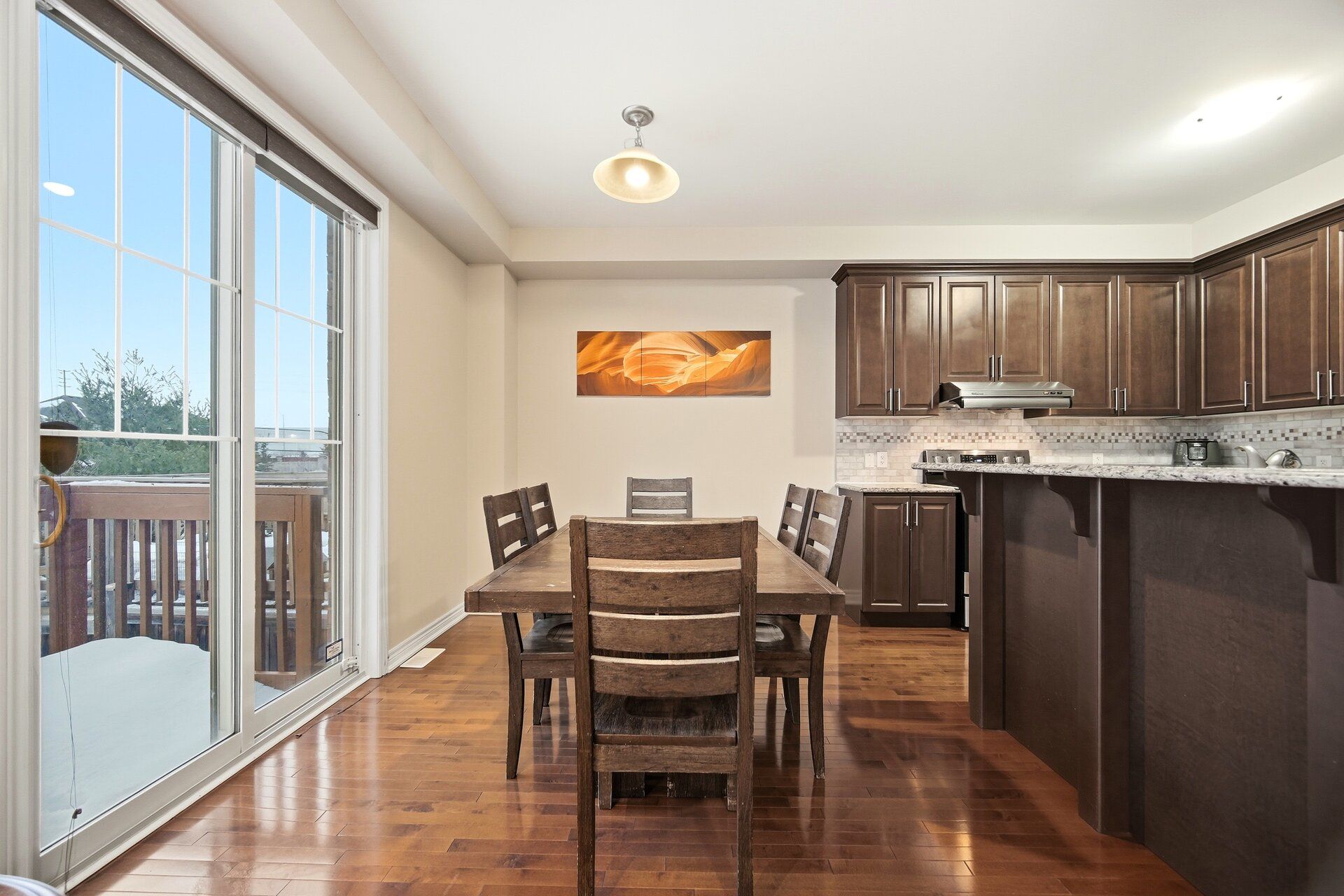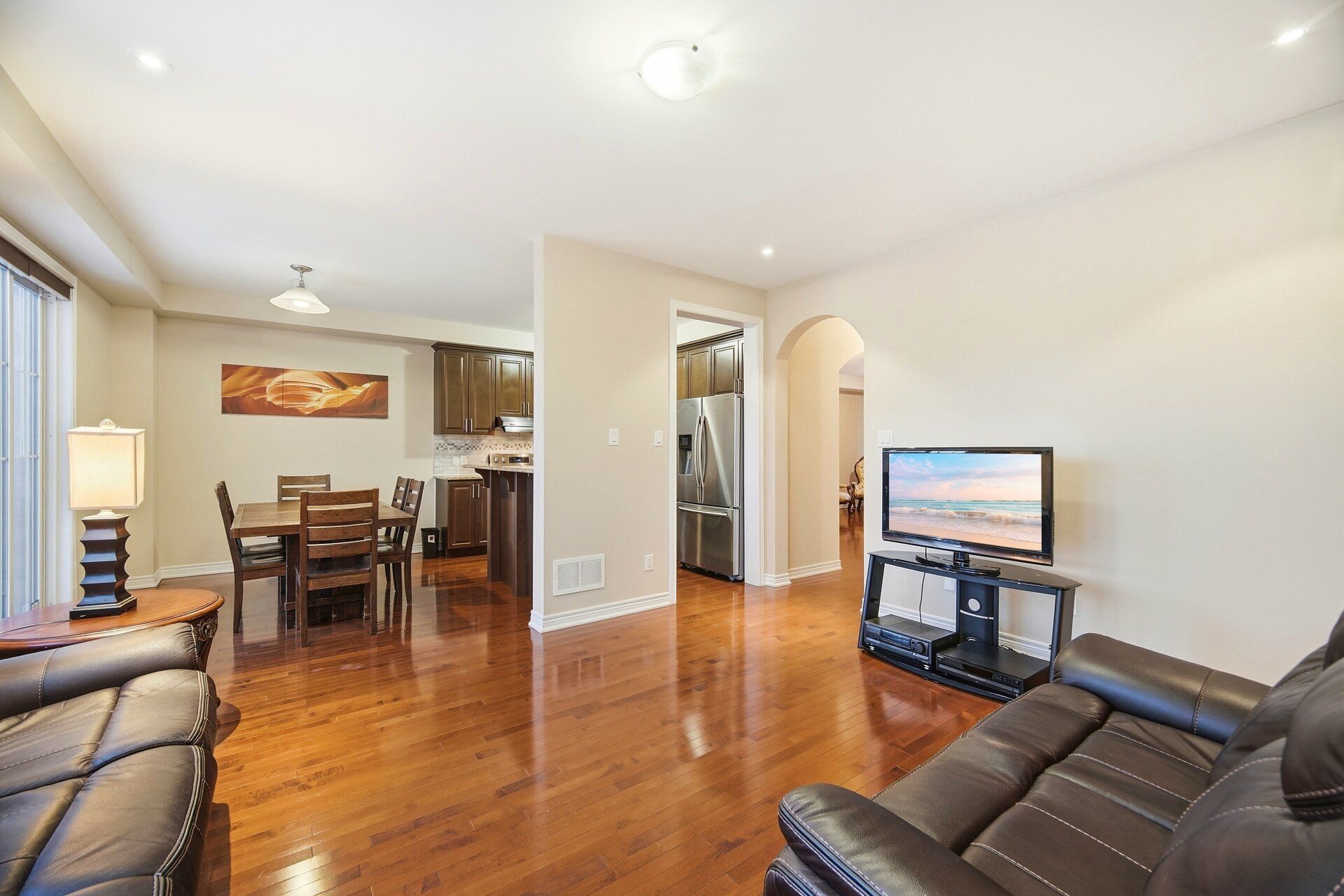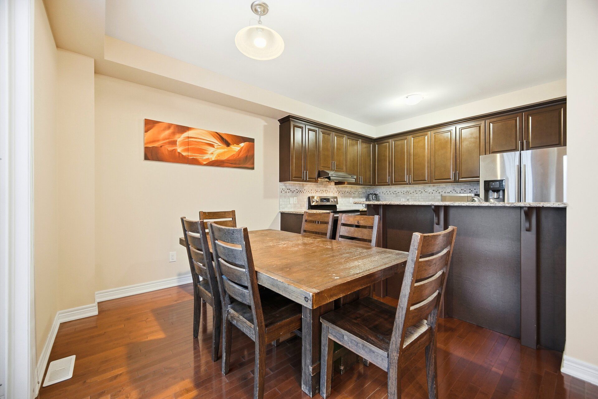 Stunning freehold executive townhome offering nearly 2,000 sq. Ft. Of elegant, upgraded living space in a highly sought-after location! Featuring 9' ceilings and a solid concrete party wall between units for enhanced privacy and soundproofing, this home backs onto a beautiful ravine-providing peaceful views and no rear neighbours. Flooded with natural light, the open-concept layout is perfect for modern living and entertaining. Enjoy a professionally finished open concept basement (with 600+ sq. Ft finished by the builder). Additional living space-ideal for a media room, home office, gym, or extended family use. Loaded with upgrades throughout, including hardwood floors, a hardwood staircase, stylish kitchen cabinetry, granite countertops, and upgraded r60+ insulation for improved energy efficiency and year-round comfort. Step outside to a fully fenced backyard featuring a large deck-perfect for summer bbqs, morning coffee, or relaxing in your private outdoor retreat. Conveniently located close to top-rated schools, parks, shopping, all amenities, and quick access to hwy 410-making commuting a breeze. This is the complete package-just move in and enjoy luxury, comfort, and location all in one.