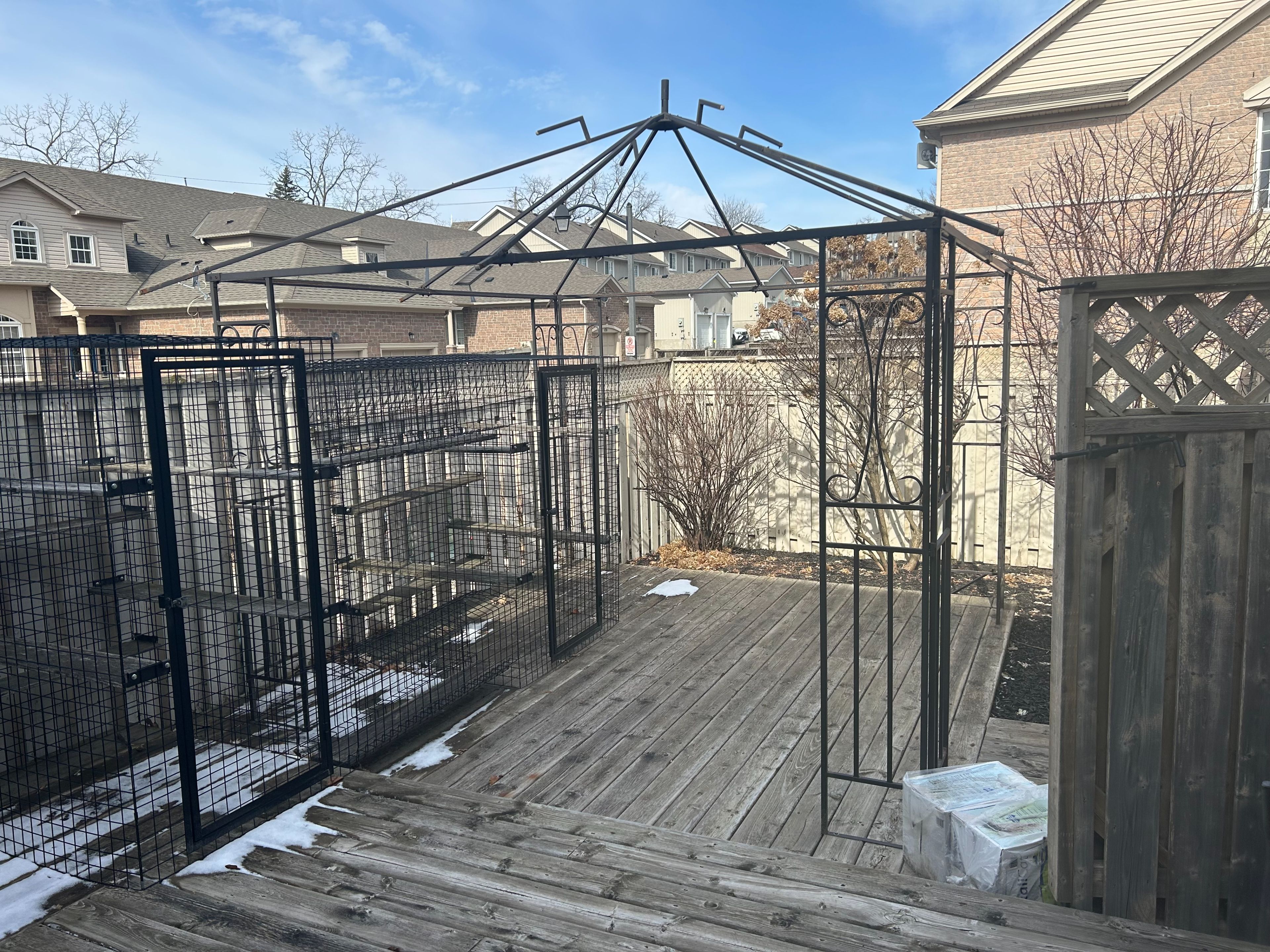 • Private fenced yard with a custom pet enclosure for animal lovers.