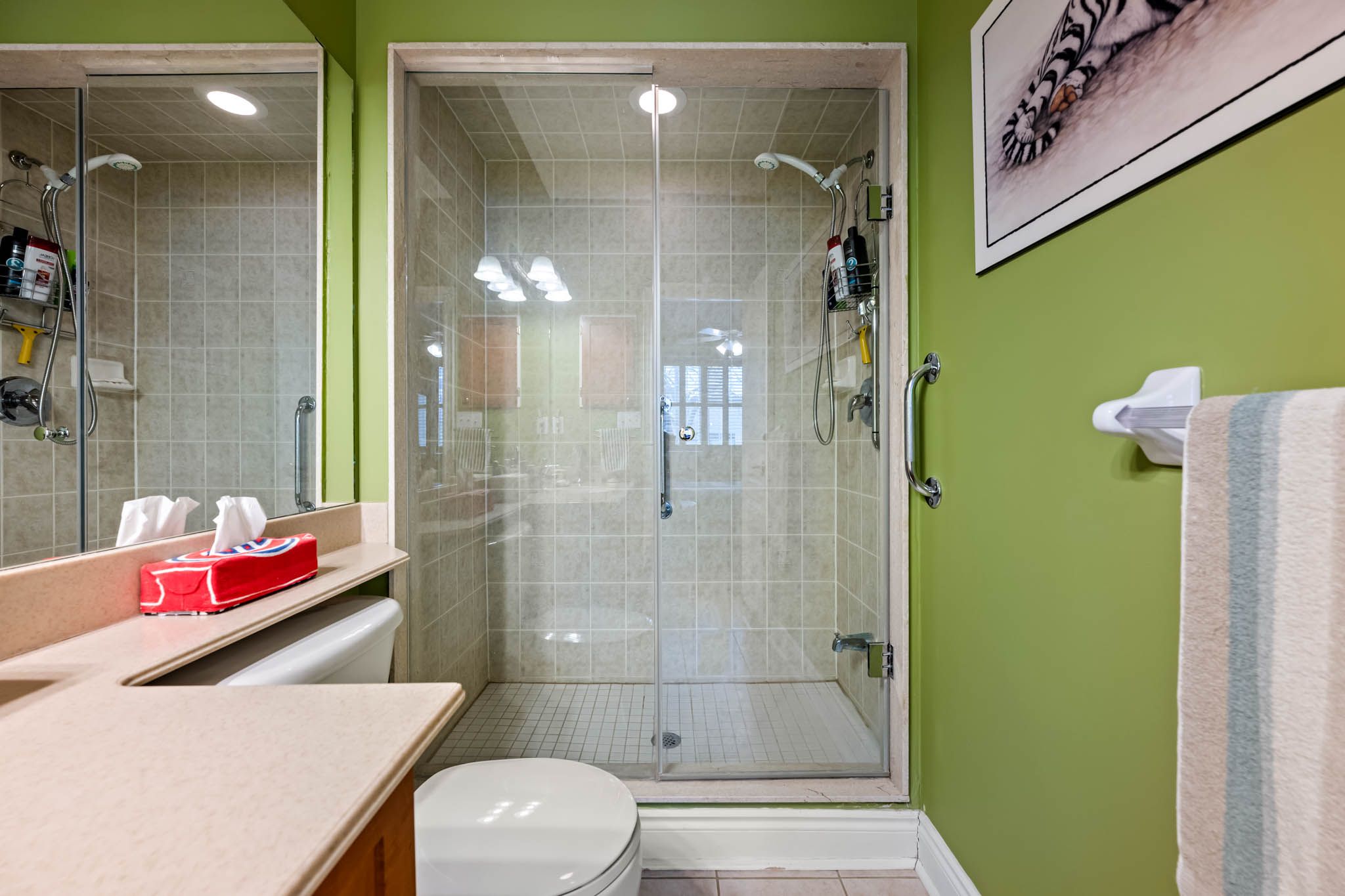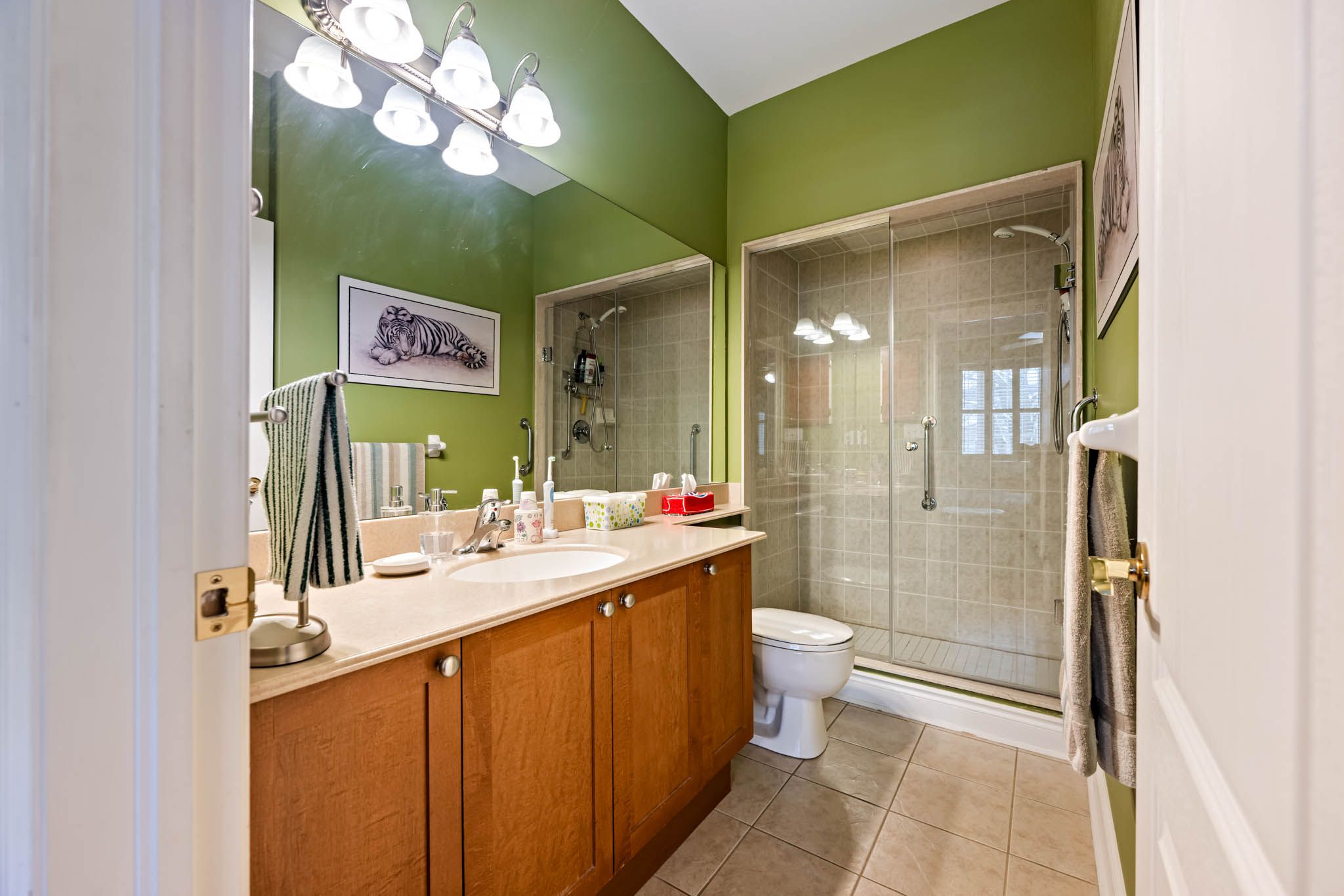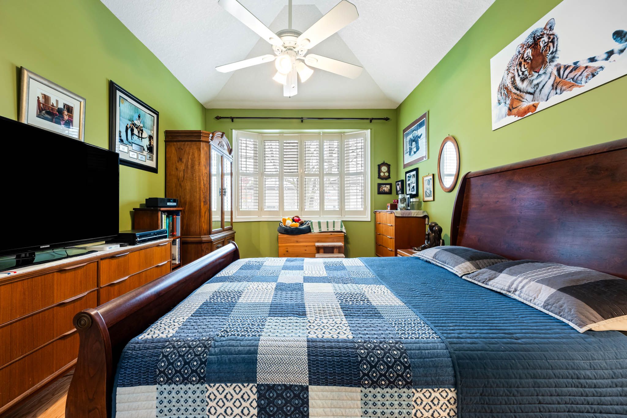 • Spacious primary bedroom features vaulted ceiling and large bay window.