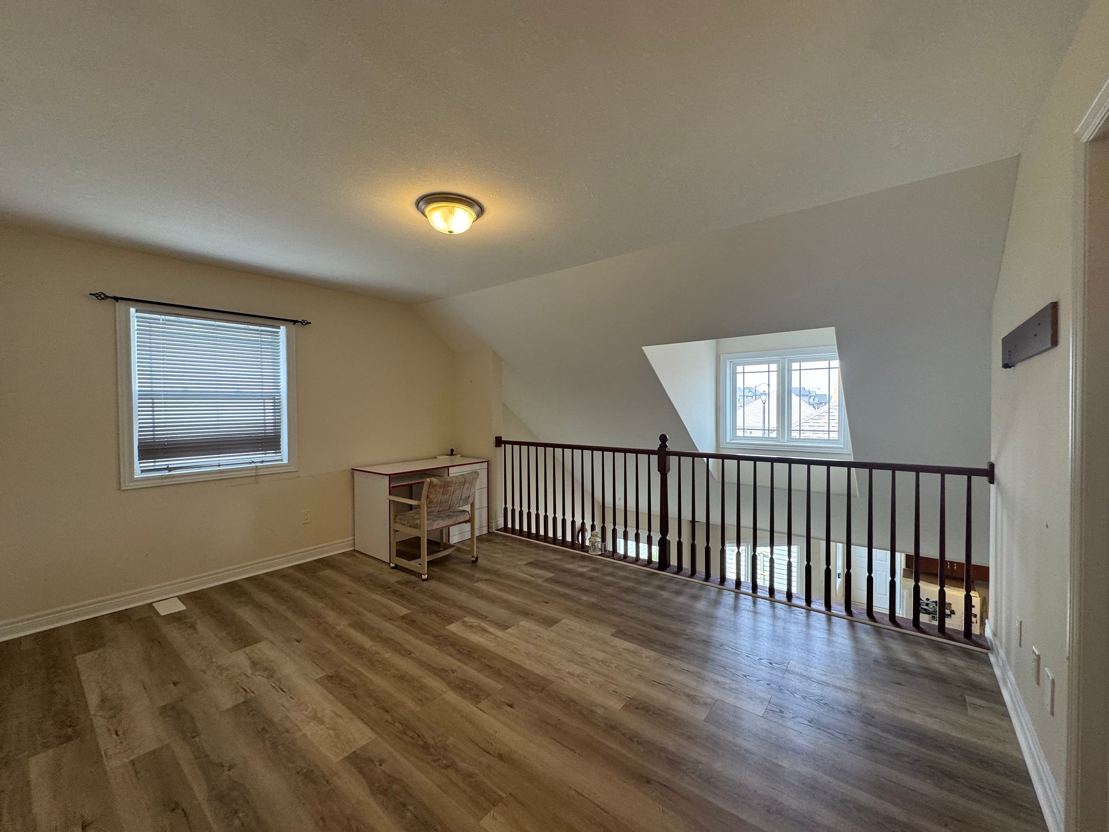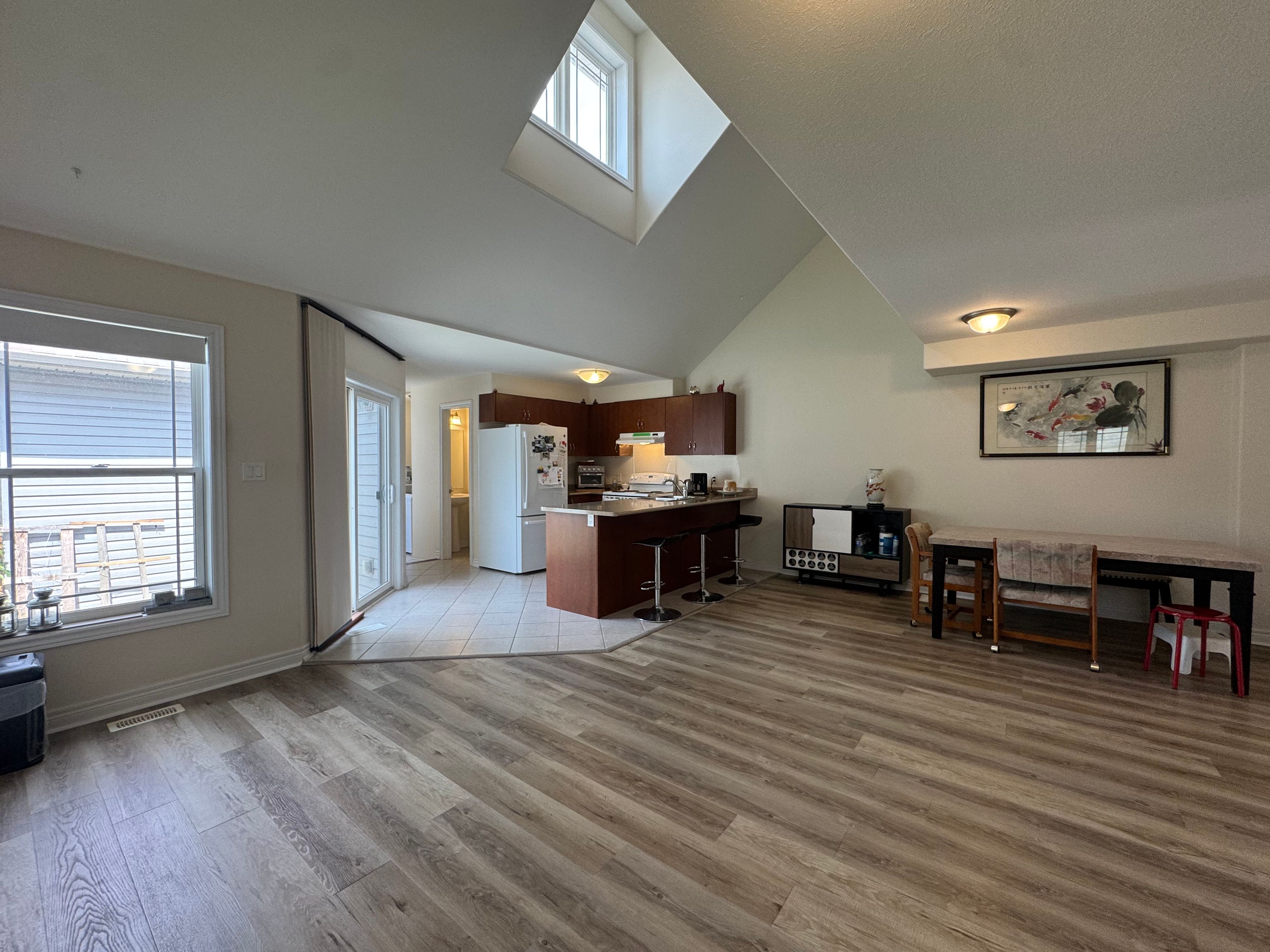 Stunning bungaloft in sought-after northcrest neighborhood a perfect blend of splendor, elegance, and modern comfort, this quality-built bungaloft offers a spacious open-concept design filled with natural light and warm finishes throughout. Located in a quiet, family-friendly area in the north end of peterborough, youre just minutes from top amenities including shopping malls, banks, schools, and restaurants. The main floor features beautiful hardwood and tile flooring, a bright living area, convenient main-floor laundry, and a spacious primary bedroom complete with a walk-in closet and ensuite bath. Upstairs, youll find a second bedroom, a 4-piece bath, and a generous open family area ideal for relaxation or entertainment. Additional highlights include:indoor access to the garage, unfinished basemen, a blank canvas to customize as you wish. Fridge, stove, b/i dishwasher, hood fan, washer & dryer, all existing light fixtures & window coverings, garage door opener with 2 remotes. This home combines luxury and practicality in a thriving neighborhood move-in ready and waiting for your personal touch.