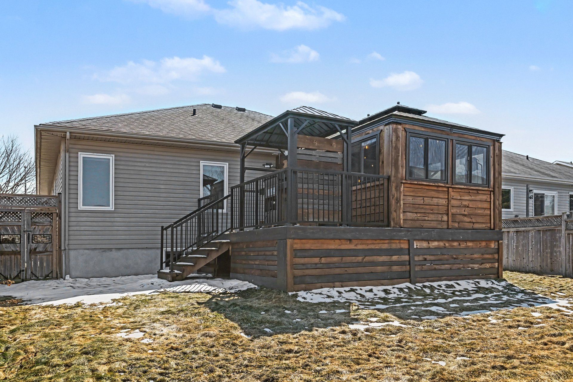• Impressive outdoor living space with a sunroom, deck, and BBQ gazebo.