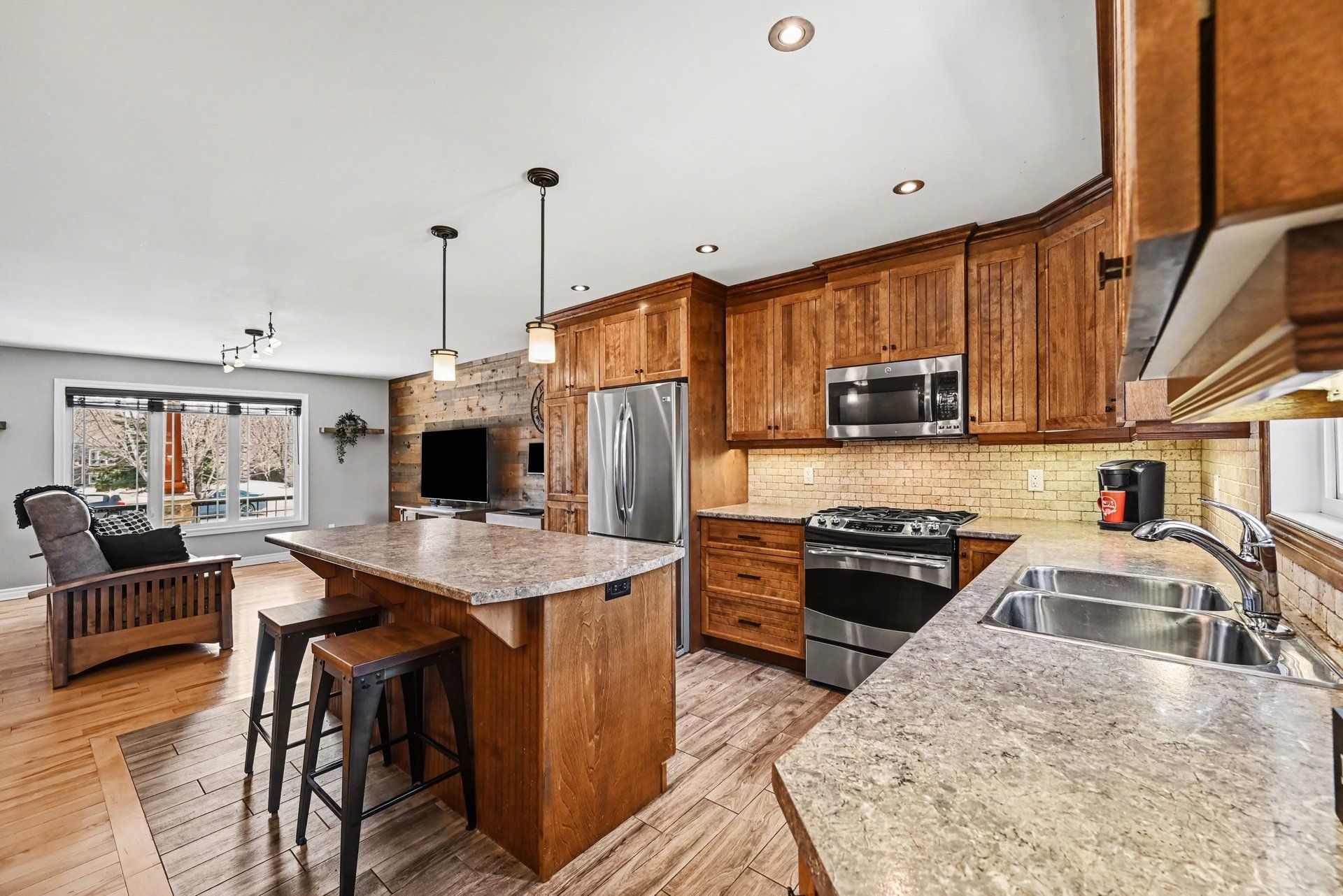 • Beautifully appointed kitchen with high-end appliances and gas range.