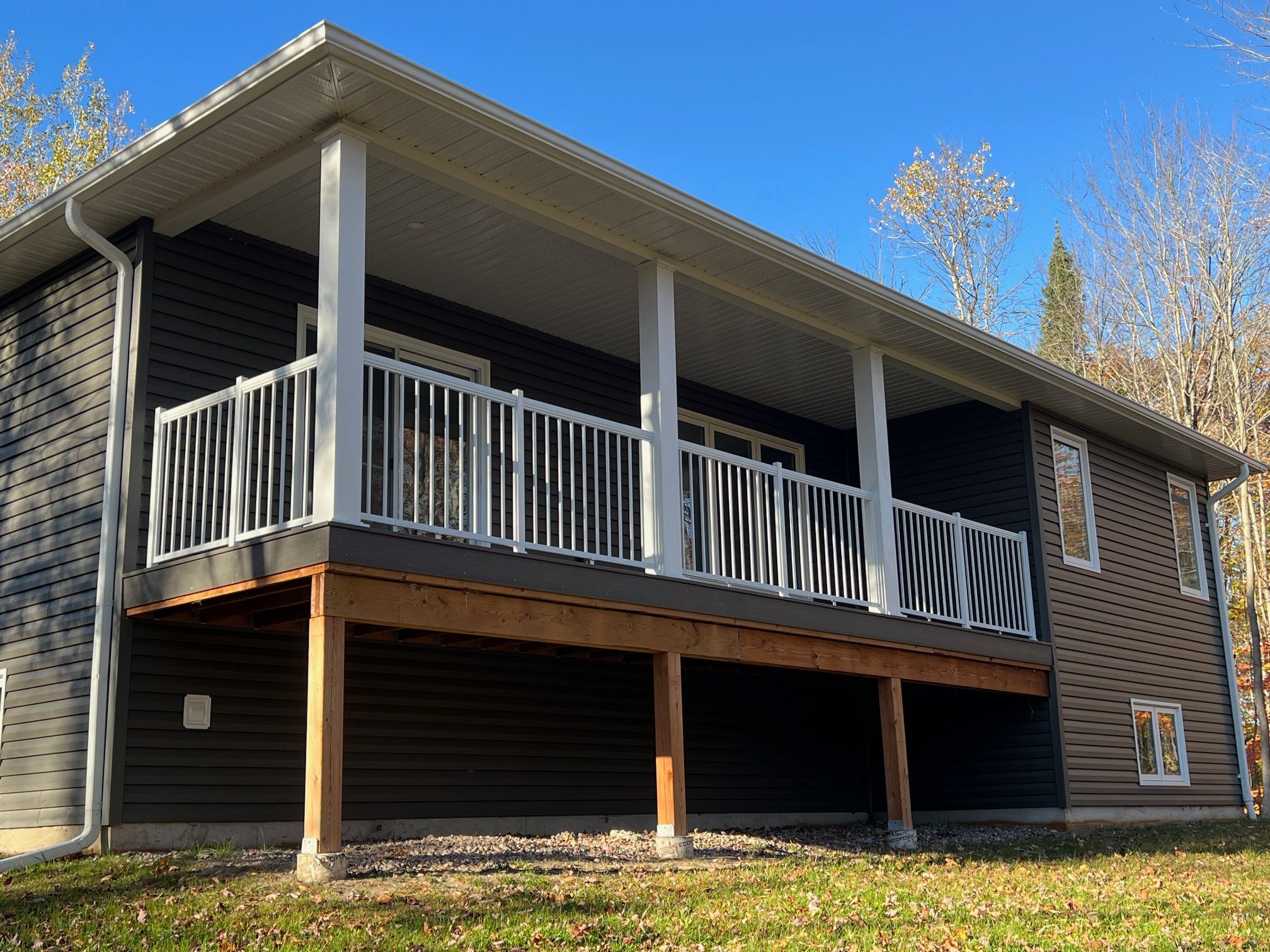 • Covered composite deck overlooking a private, beautifully treed lot.