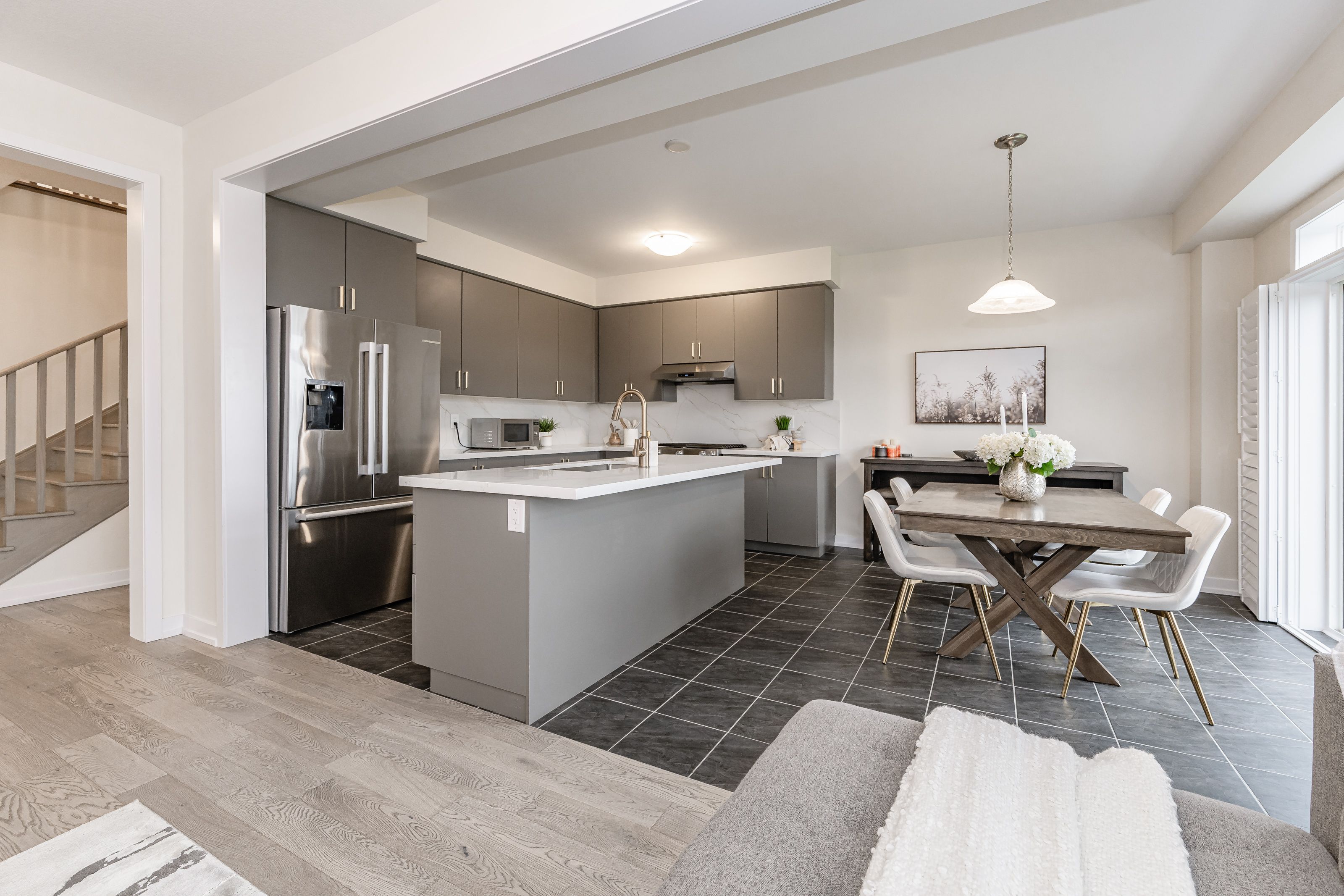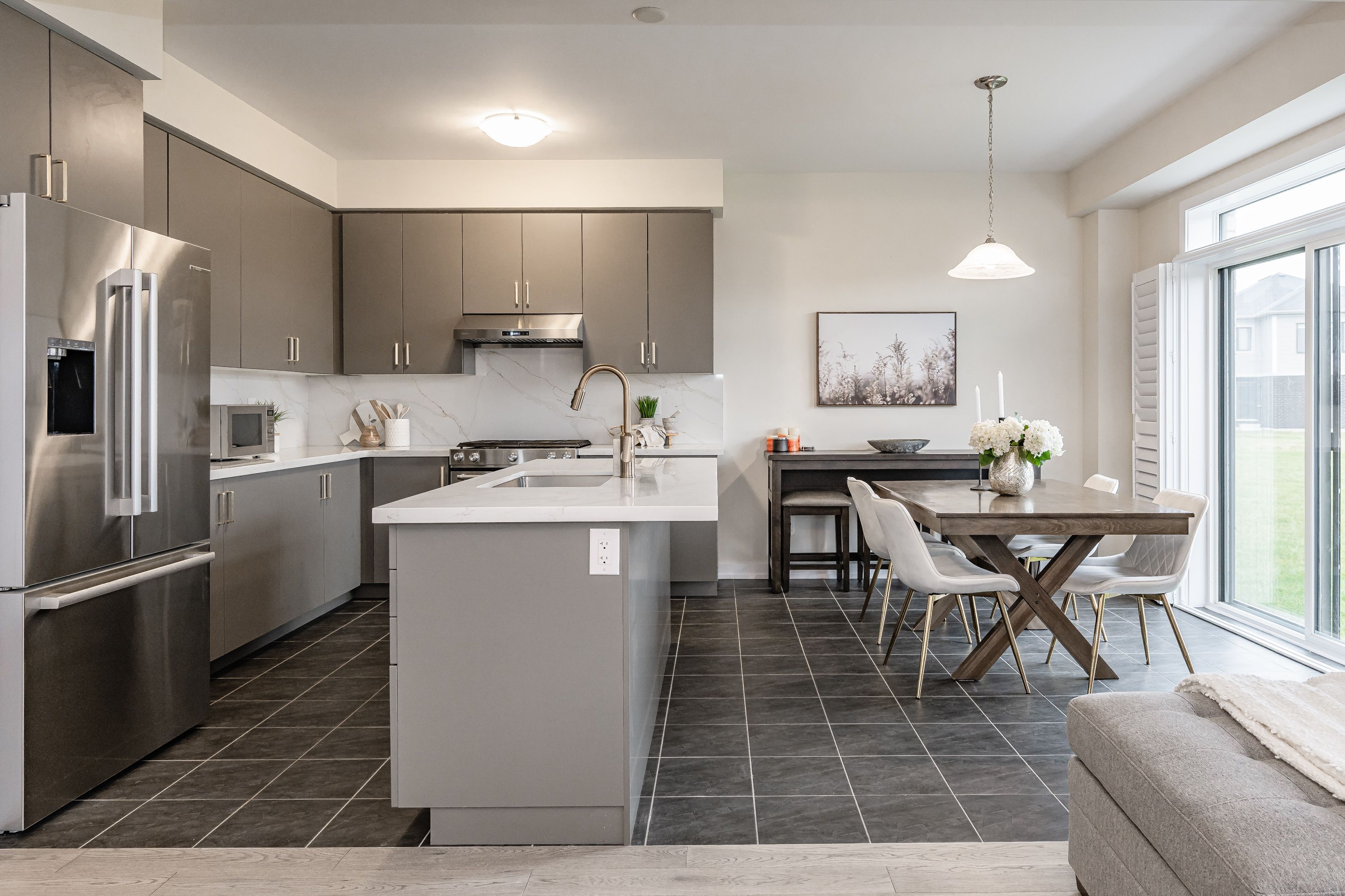 • Upgraded kitchen featuring quartz counters and top-tier appliances.