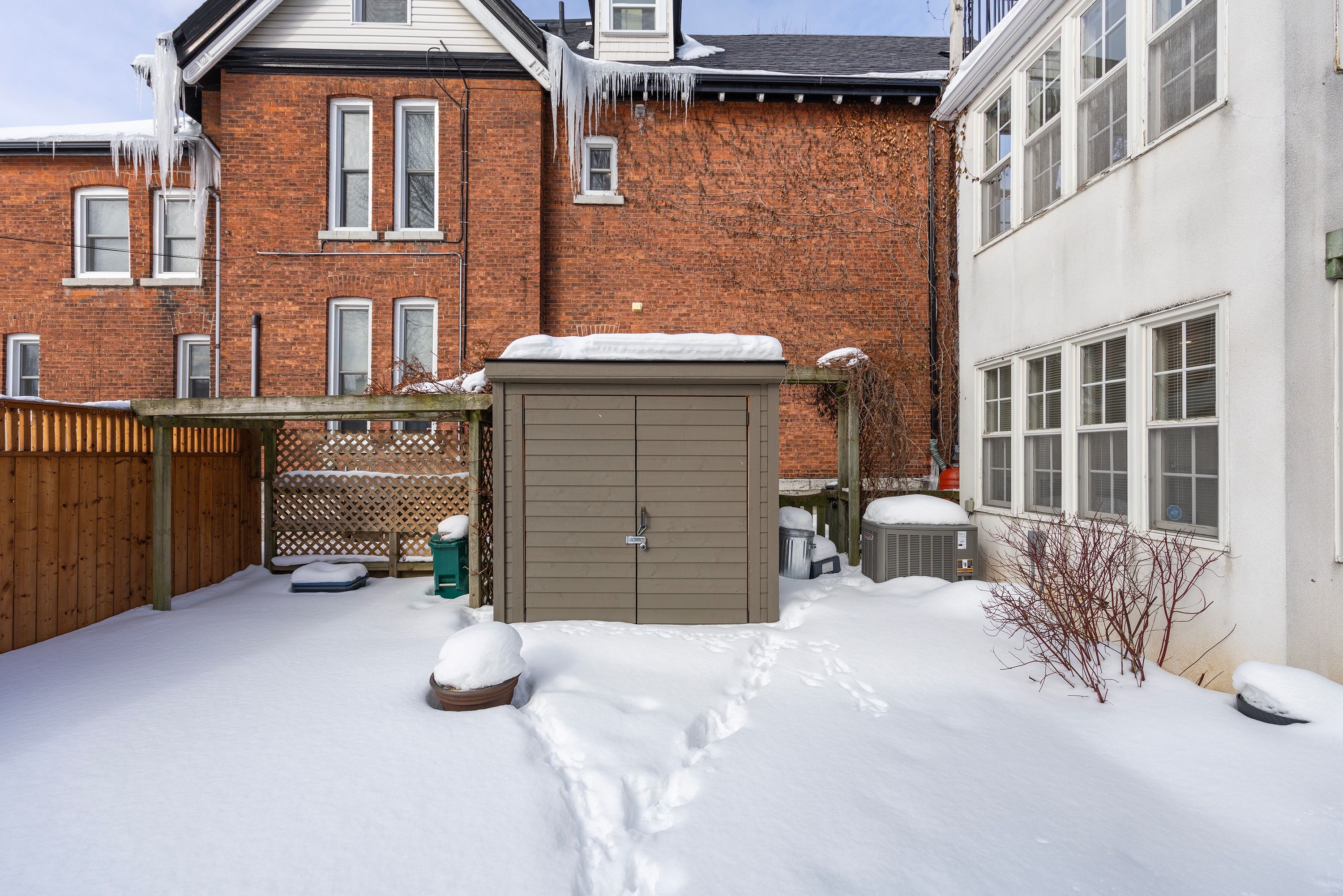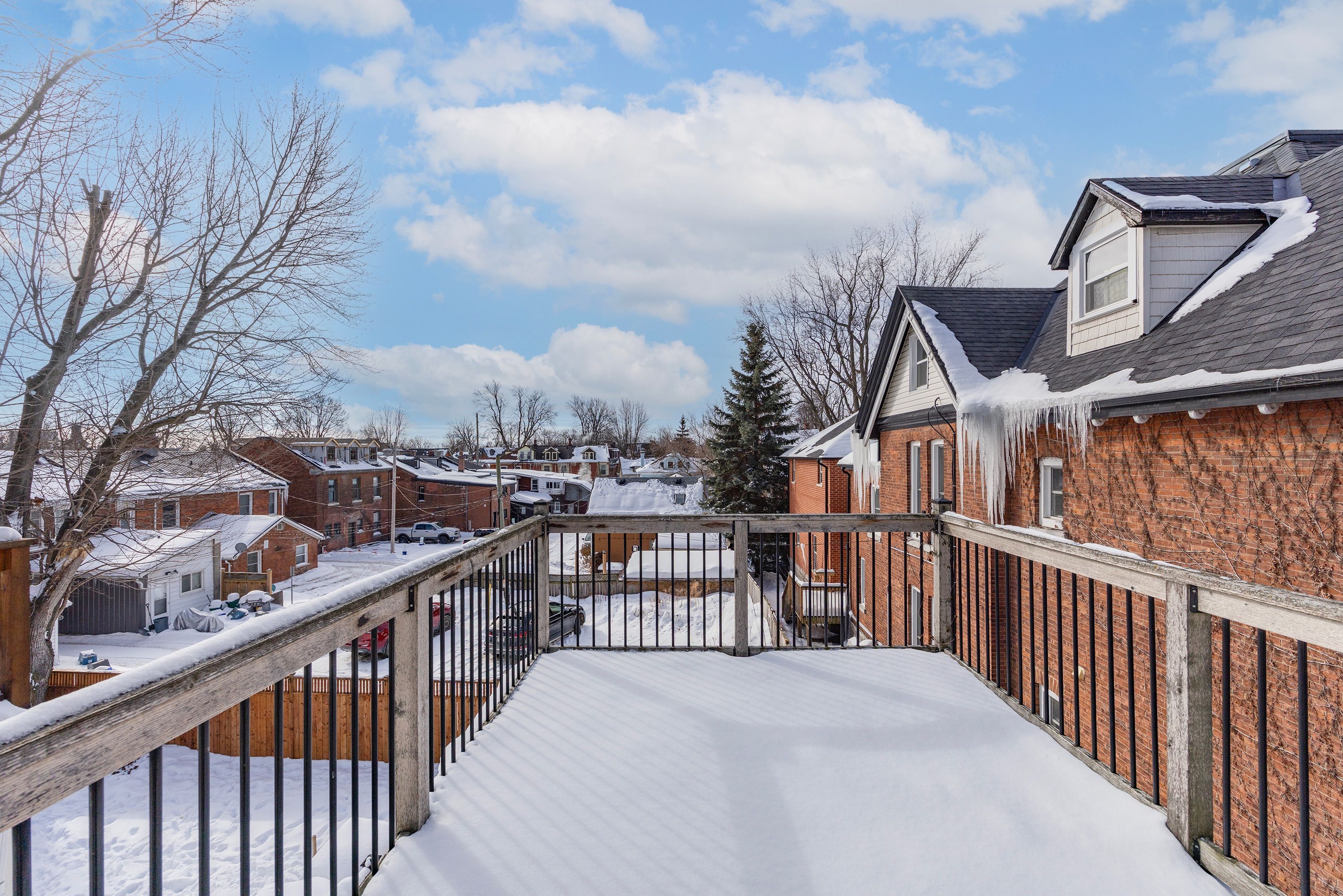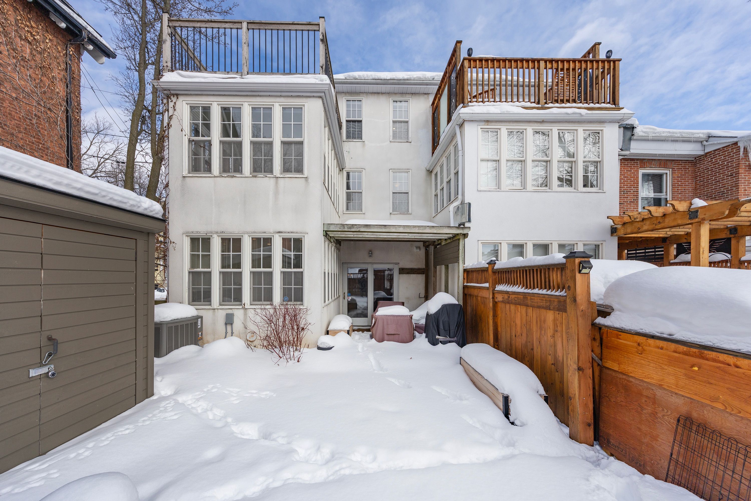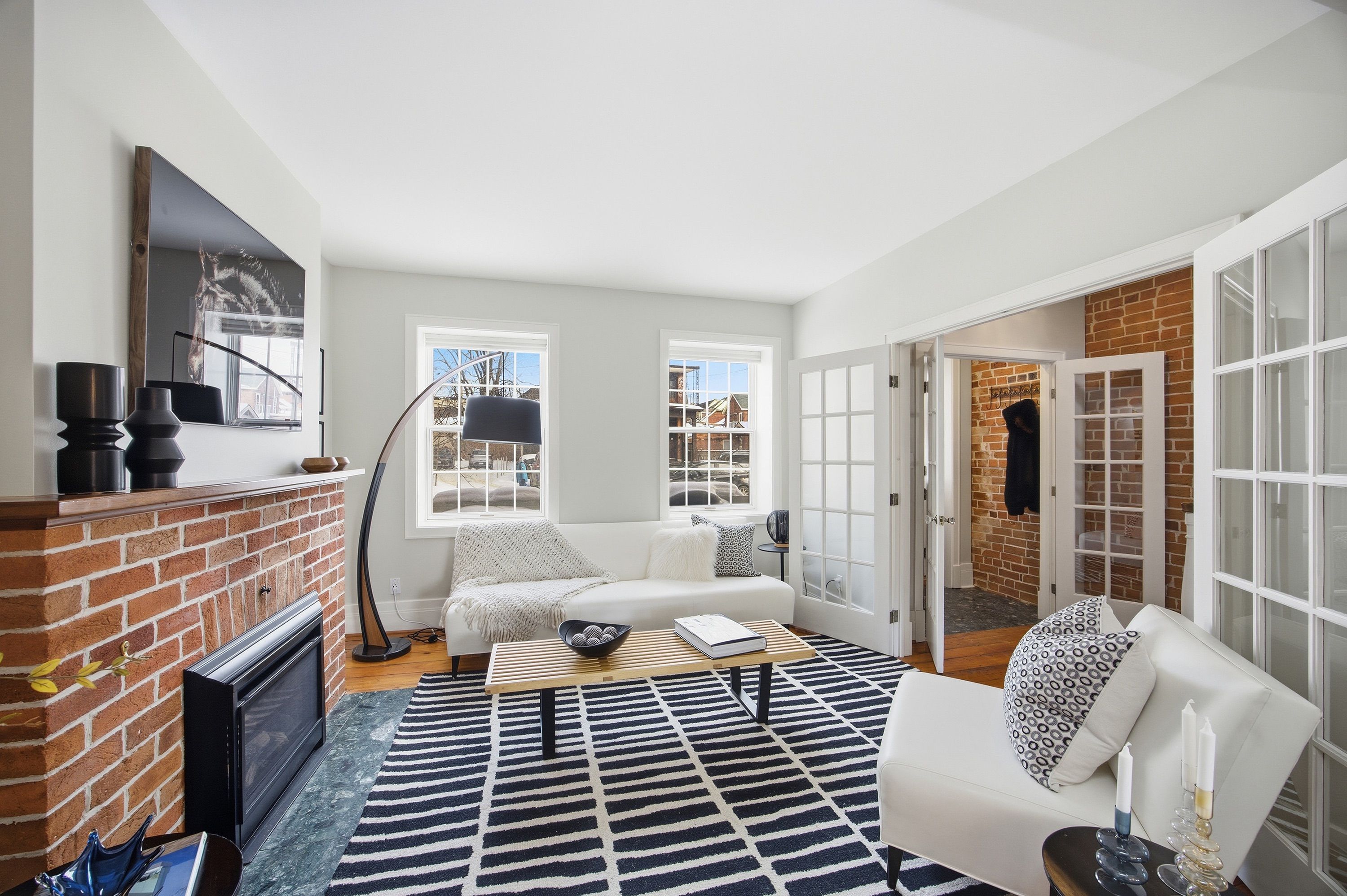 Step into the charm of downtown kingston living with this beautifully restored historic brick end-unit townhouse, where timeless character meets modern comfort. Completely renovated and truly move-in ready, this stunning home offers 1,763 sq. Ft. Across three finished levels, filled with natural light, warmth, and thoughtful upgrades throughout. Inside, you'll love the rich character of exposed brick interiors, paired perfectly with stylish contemporary finishes. The cozy living room features a gas fireplace (installed in 2024) and elegant french doors, creating the perfect space to relax or entertain. The heart of the home is the bright, fully renovated kitchen (2024) with new appliances, flowing seamlessly into the dining area with patio doors leading to a private backyard patio - ideal for summer dinners and morning coffee. The second floor offers two bedrooms and a full bathroom. The second bedroom features a rare bonus: an attached office/studio surrounded by windows, perfect for working from home, creating, or studying. The third floor is a showstopper, featuring a large primary bedroom suite complete with a walk-in closet, full ensuite bathroom, and patio doors opening to your own balcony retreat. With three bedrooms, two full bathrooms, and a newly added main floor powder room (2026), this home delivers both space and functionality. Additional updates include a tankless water heater (2023), a new washer and dryer (2025), and a backyard shed (2021) for extra storage. Outside, enjoy beautifully updated curb appeal with front and side landscaping completed in 2024, plus the convenience of backyard parking with interlocking brick. All of this is located just steps to downtown kingston, with easy walking access to shopping, restaurants, the waterfront, marina, queen's university, schools and hospitals. A rare opportunity to own a one-of-a-kind historic home in one of kingston's most sought-after locations. This is downtown living at its finest.