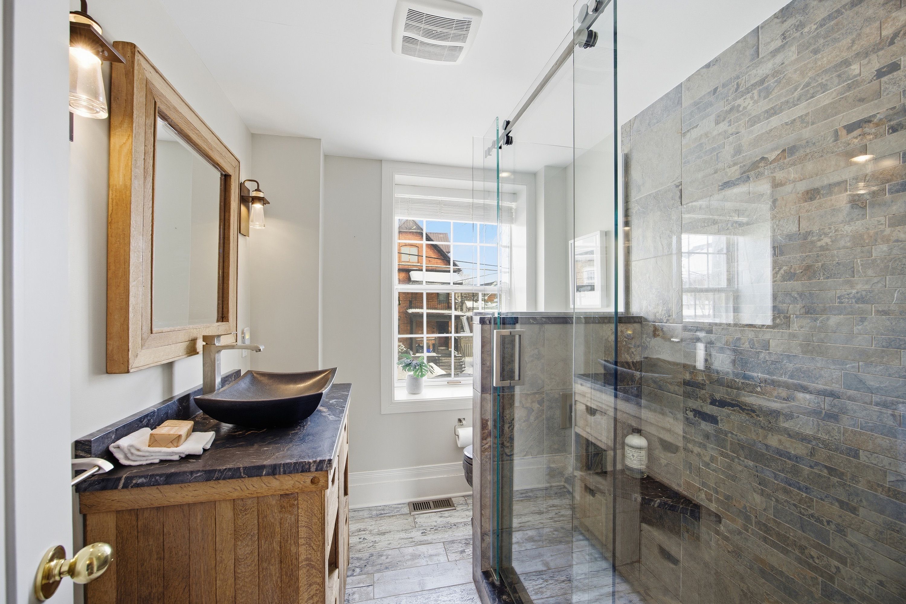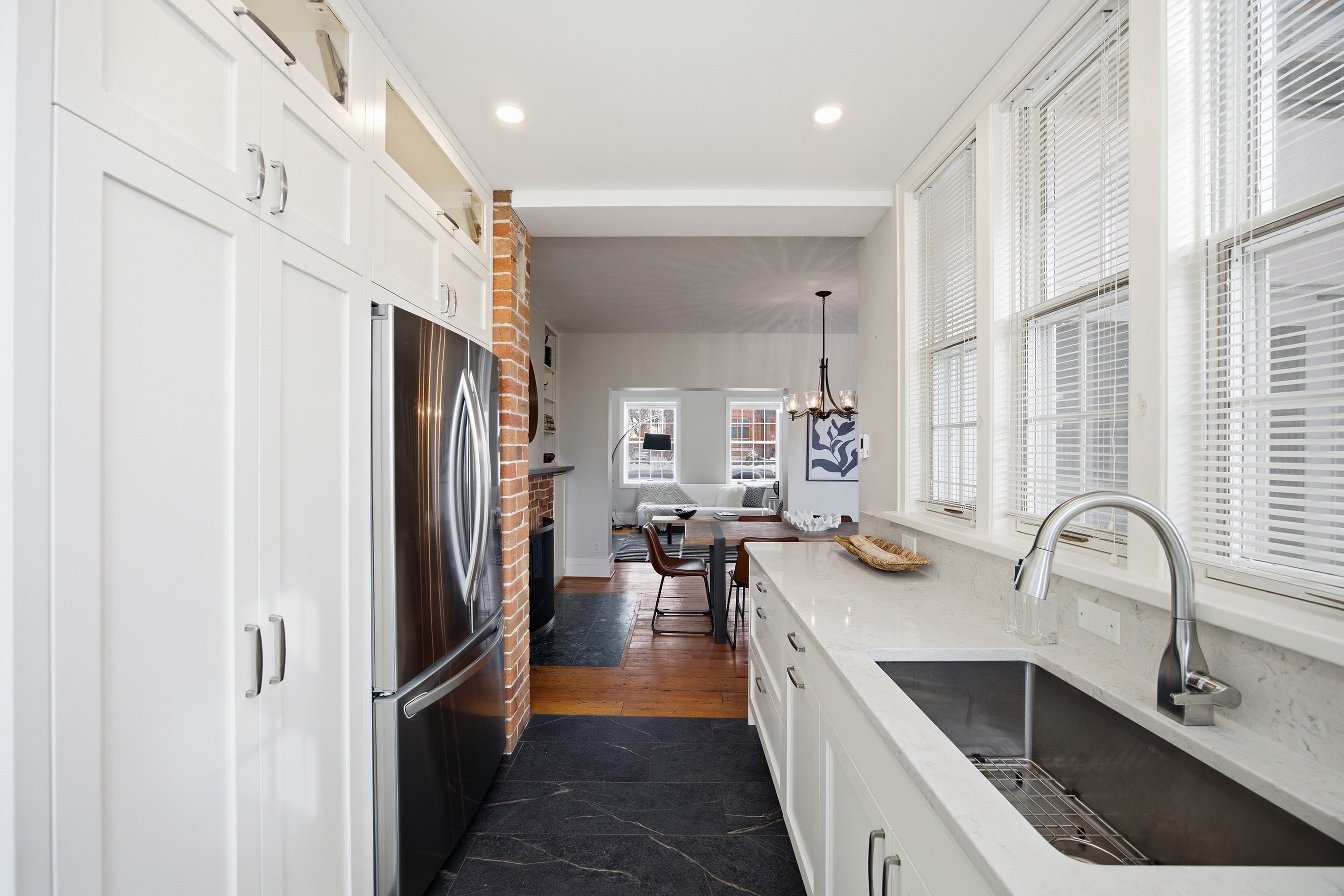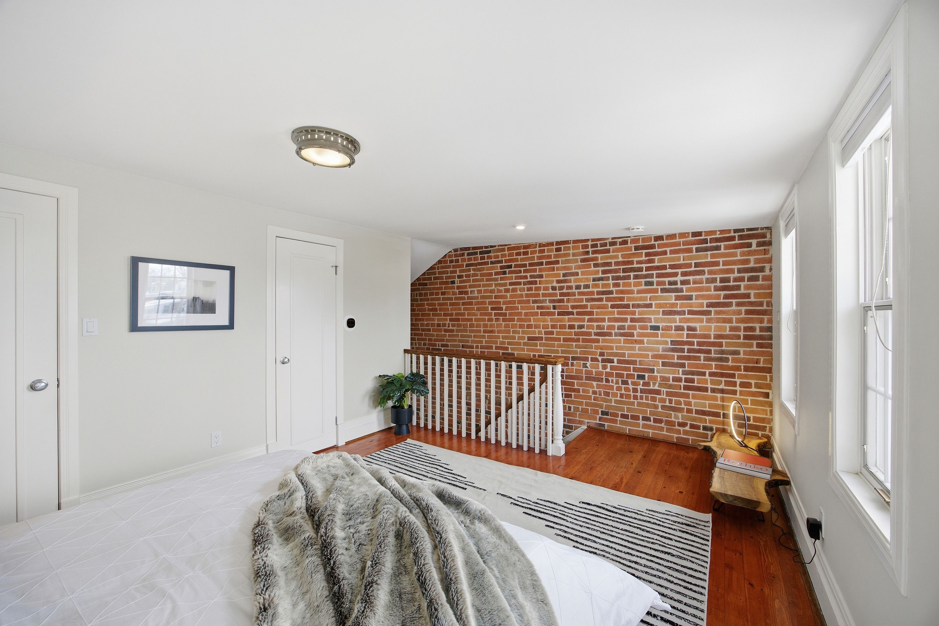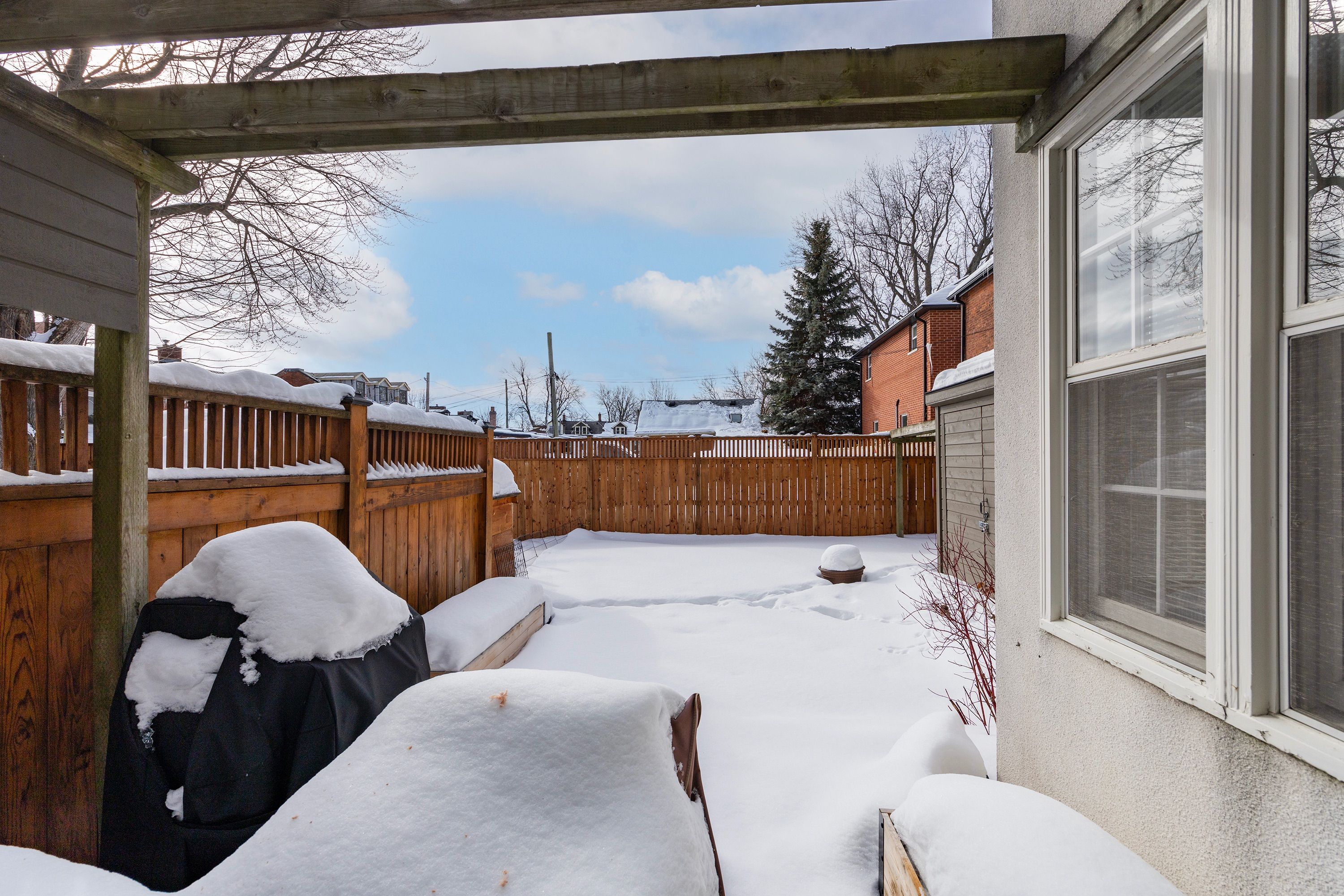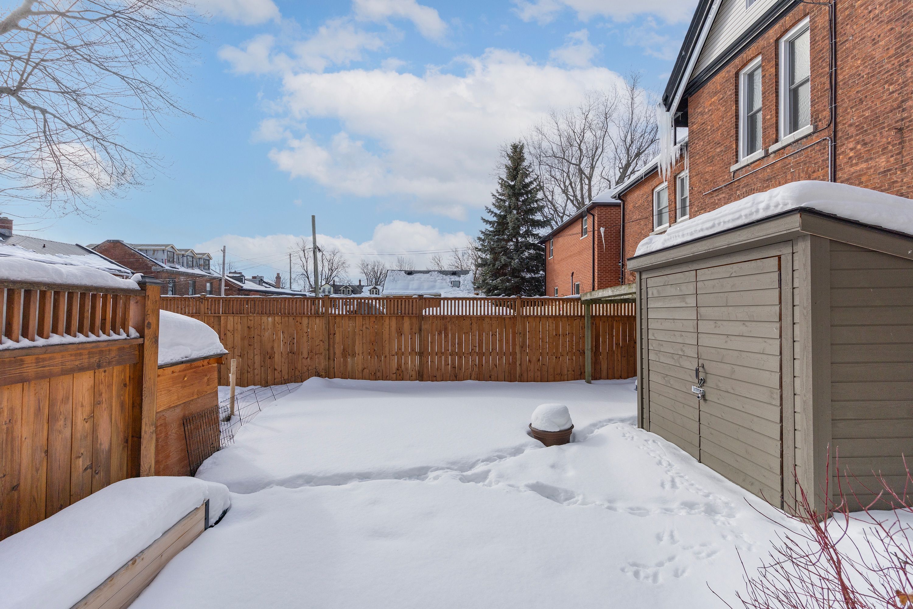 Step into the charm of downtown kingston living with this beautifully restored historic brick end-unit townhouse, where timeless character meets modern comfort. Completely renovated and truly move-in ready, this stunning home offers 1,763 sq. Ft. Across three finished levels, filled with natural light, warmth, and thoughtful upgrades throughout. Inside, you'll love the rich character of exposed brick interiors, paired perfectly with stylish contemporary finishes. The cozy living room features a gas fireplace (installed in 2024) and elegant french doors, creating the perfect space to relax or entertain. The heart of the home is the bright, fully renovated kitchen (2024) with new appliances, flowing seamlessly into the dining area with patio doors leading to a private backyard patio - ideal for summer dinners and morning coffee. The second floor offers two bedrooms and a full bathroom. The second bedroom features a rare bonus: an attached office/studio surrounded by windows, perfect for working from home, creating, or studying. The third floor is a showstopper, featuring a large primary bedroom suite complete with a walk-in closet, full ensuite bathroom, and patio doors opening to your own balcony retreat. With three bedrooms, two full bathrooms, and a newly added main floor powder room (2026), this home delivers both space and functionality. Additional updates include a tankless water heater (2023), a new washer and dryer (2025), and a backyard shed (2021) for extra storage. Outside, enjoy beautifully updated curb appeal with front and side landscaping completed in 2024, plus the convenience of backyard parking with interlocking brick. All of this is located just steps to downtown kingston, with easy walking access to shopping, restaurants, the waterfront, marina, queen's university, schools and hospitals. A rare opportunity to own a one-of-a-kind historic home in one of kingston's most sought-after locations. This is downtown living at its finest.