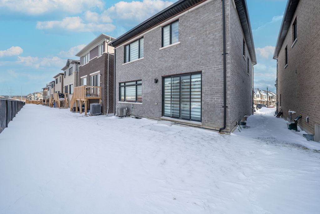 The ultimate lifestyle retreat | $260k+ in luxury upgrades discover the perfect balance of serene rural charm and modern executive luxury. This is a rare chance to own the crown jewel of rural pickering-a meticulously curated masterpiece boasting over $260k+ in bespoke upgrades. Nestled on a quiet, family-centric street, this 4-bed detached home offers a level of sophistication and tranquility that is truly rarely offered. A culinary masterpiece: the heart of this home is a breathtaking, extended chef's kitchen that redefines modern luxury. Drenched in style, it features floor-to-ceiling custom black cabinetry, high-end paneled appliances for a seamless aesthetic, and a massive kitchen island crowned with a dramatic quartz waterfall edge. With a matching quartz backsplash, flush hood fan, gas cooktop, and a spacious b/i pantry, it is as functional as it is beautiful. Designer interiors: this carpet-free residence features rich hardwood flooring throughout, reflecting a commitment to quality and health. The living room serves as an architectural sanctuary, boasting elegant waffle ceilings and a modern flush-mount fireplace anchored by custom floating cabinetry. Bathed in natural light, the living and dining layout transitions perfectly to the outdoors through upgraded, extra-wide patio doors. Iconic craftsmanship: ascend a stunning architectural staircase featuring premium wooden handrails, metal balusters, and contemporary glass railings. The second floor offers four generous bedrooms, each featuring custom-built closet organizers. The primary suite is a genuine retreat, complete with a spa-inspired 5-piece ensuite-featuring a freestanding tub and frameless glass shower-and a walk-in closet that has been entirely customized for maximum organization. Unlimited potential: the expansive, unfinished basement offers 9ft ceilings, egress windows, a 200amp service, and a bathroom rough-in, providing a massive footprint ready for your custom theatre, gym, or guest suite.