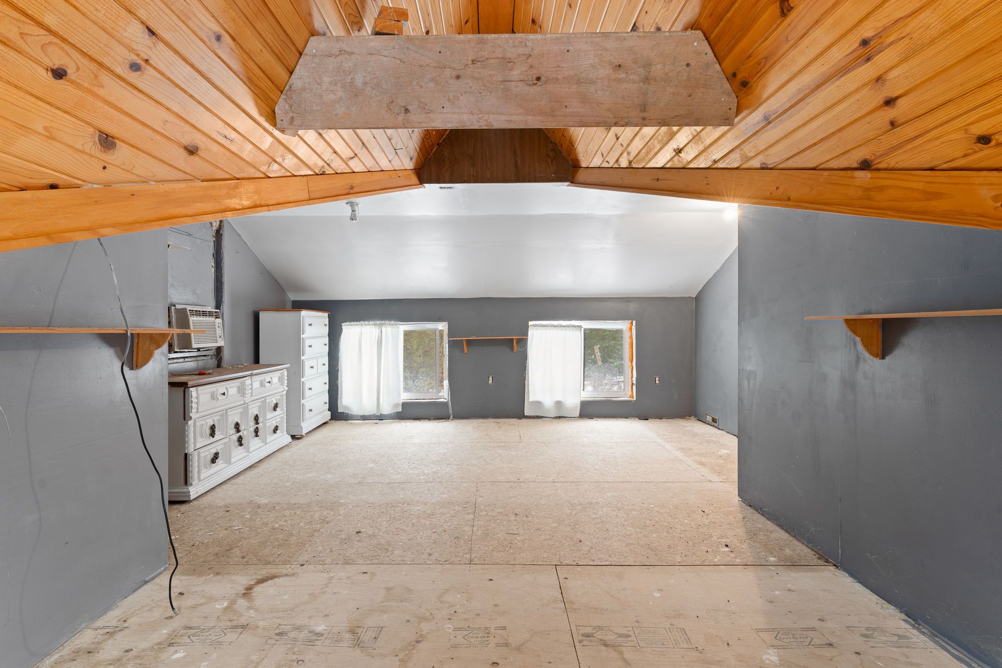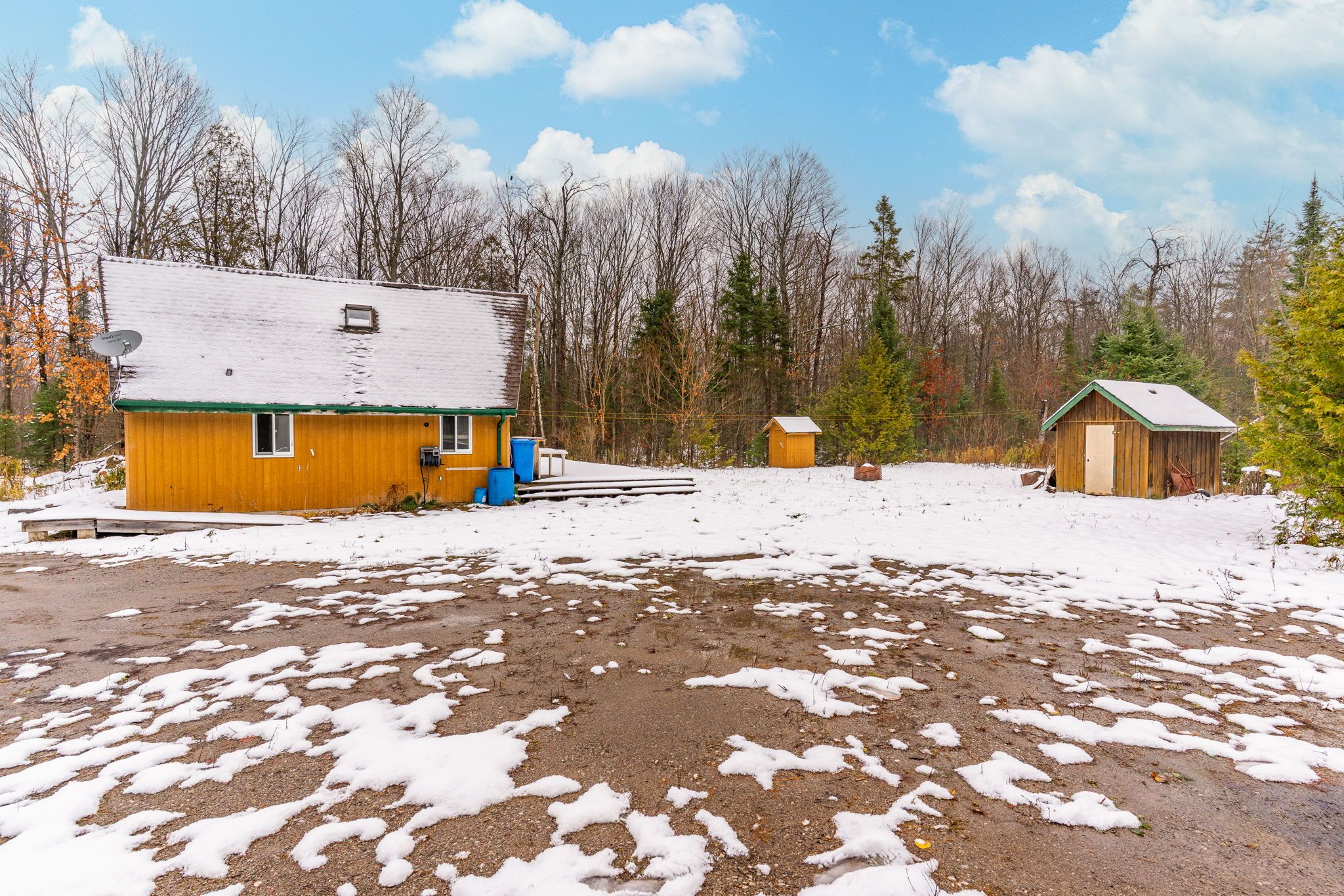Escape to your own private 10 acre sanctuary, just 10 minutes from fenelon falls! If you've been dreaming of peace, privacy, and plenty of room to play, this charming property is the perfect match. Surrounded by mature trees, this cozy 1/2 storey home is filled with endless potential for you to add your personal touch. Main floor offers kitchen, living room, 4 pc bathroom and utility room. The upstairs has the 2 bedrooms and additional space. Enjoy your morning coffee or host unforgettable gatherings on the expansive deck overlooking nature. Stay warm with the propane furnace and embrace the comfort of country living in the kawarthas. The 30' x 40' fully insulated garage/workshop boasts 16ft ceilings, making it ideal for storage, home businesses, car enthusiasts, mechanics, or your next big project. Love the outdoors? You're right on the atv and snowmobile trail, giving you direct access to year-round adventure at your doorstep. Located on a municipally maintained year round road & garbage pickup. Private. Peaceful. Full of possibilities. Come experience it for yourself-properties like this don't come around often!