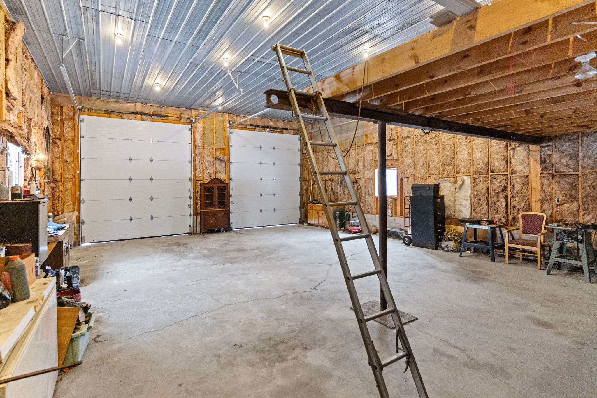 • Insulated garage/workshop with high ceilings for storage and projects.