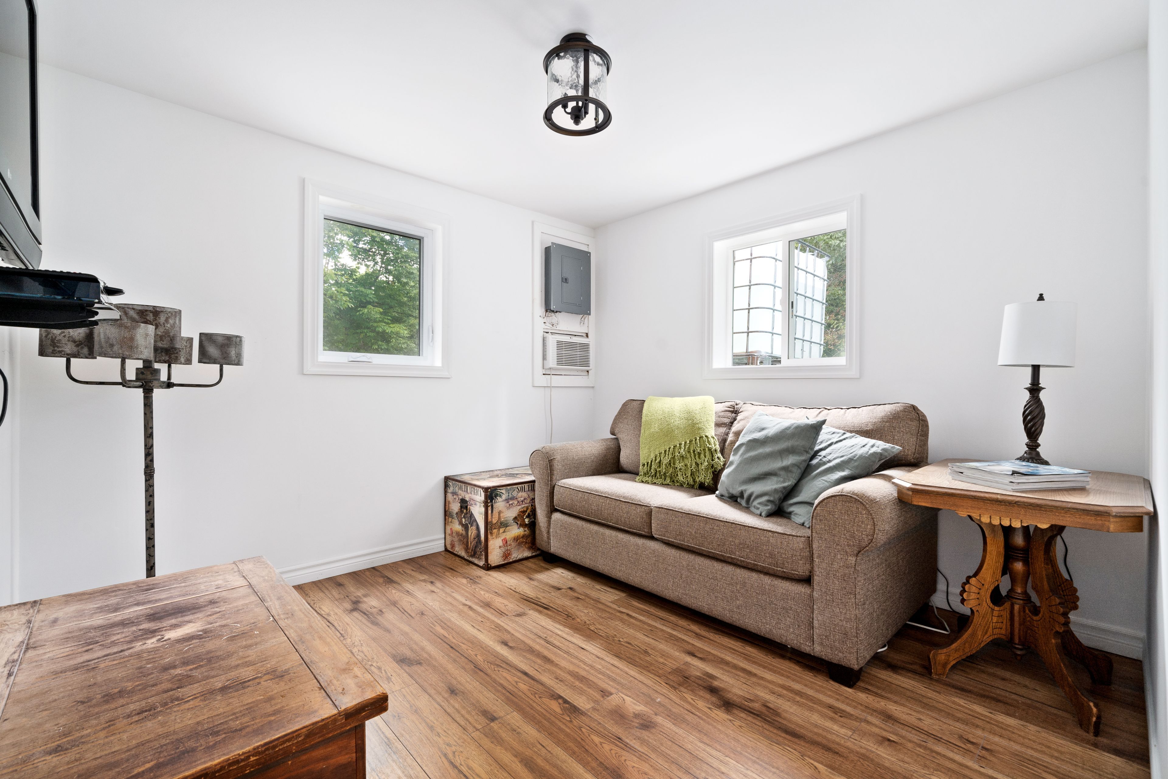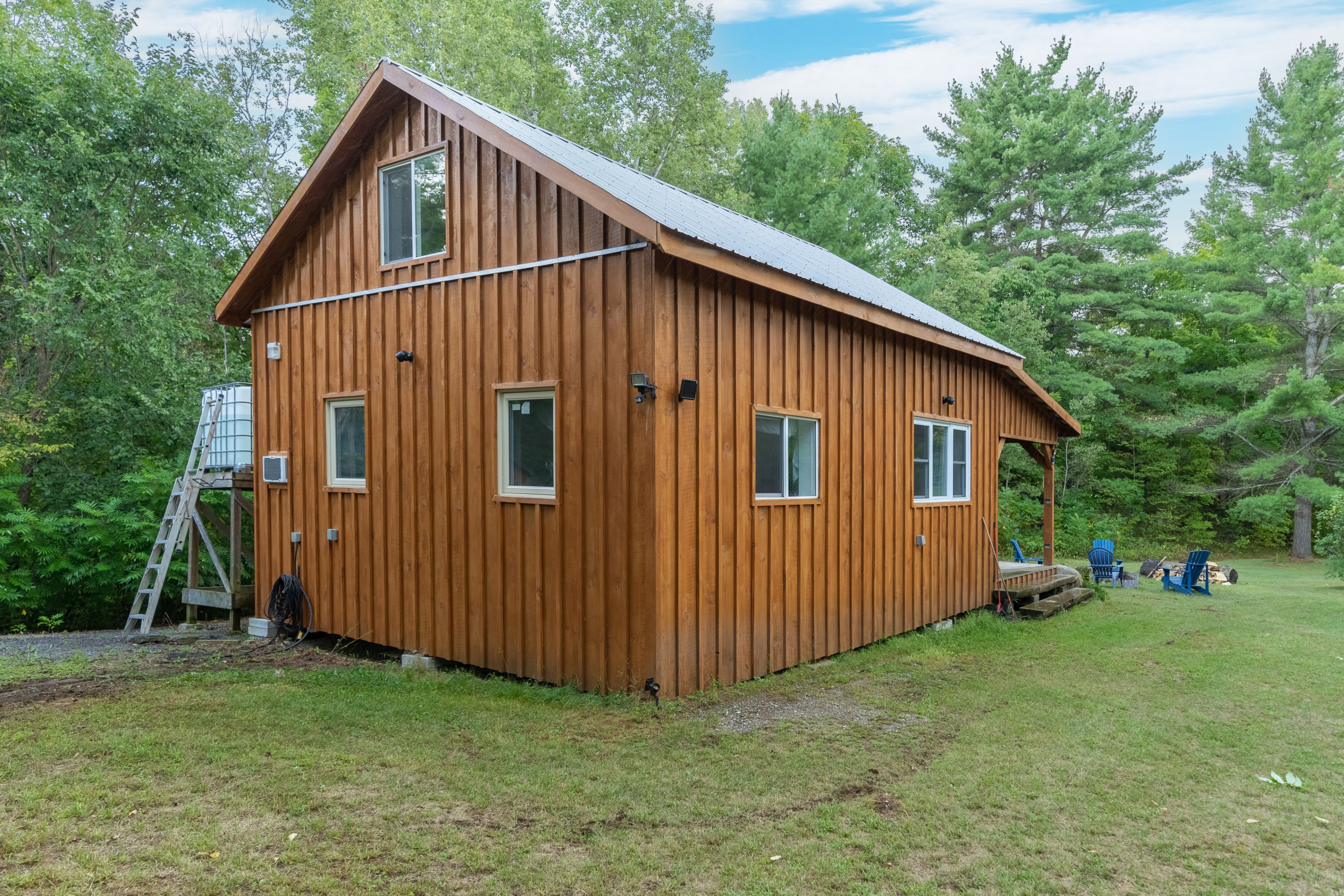 • Modern Bunkie includes insulated walls, fire pit, and family room loft.