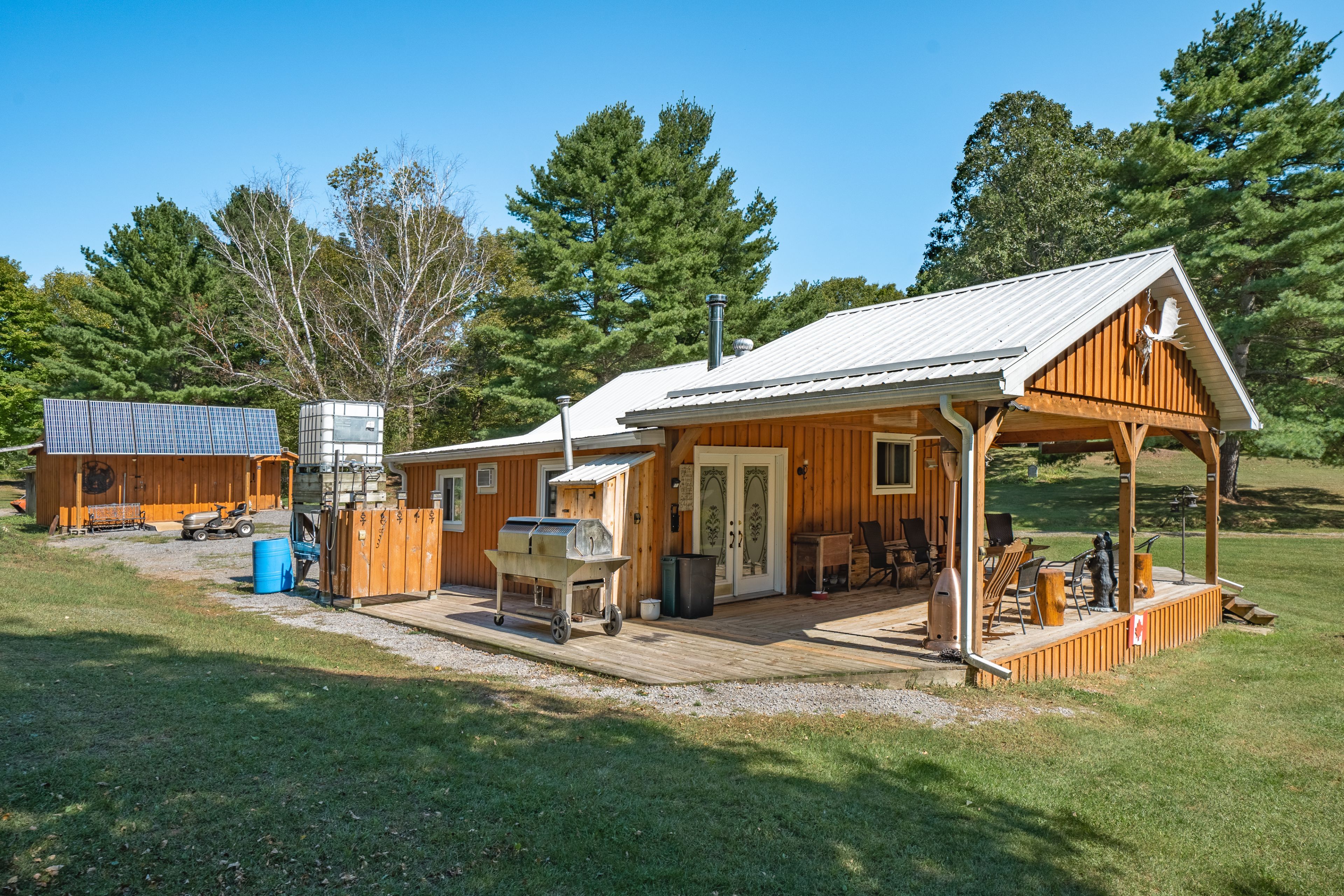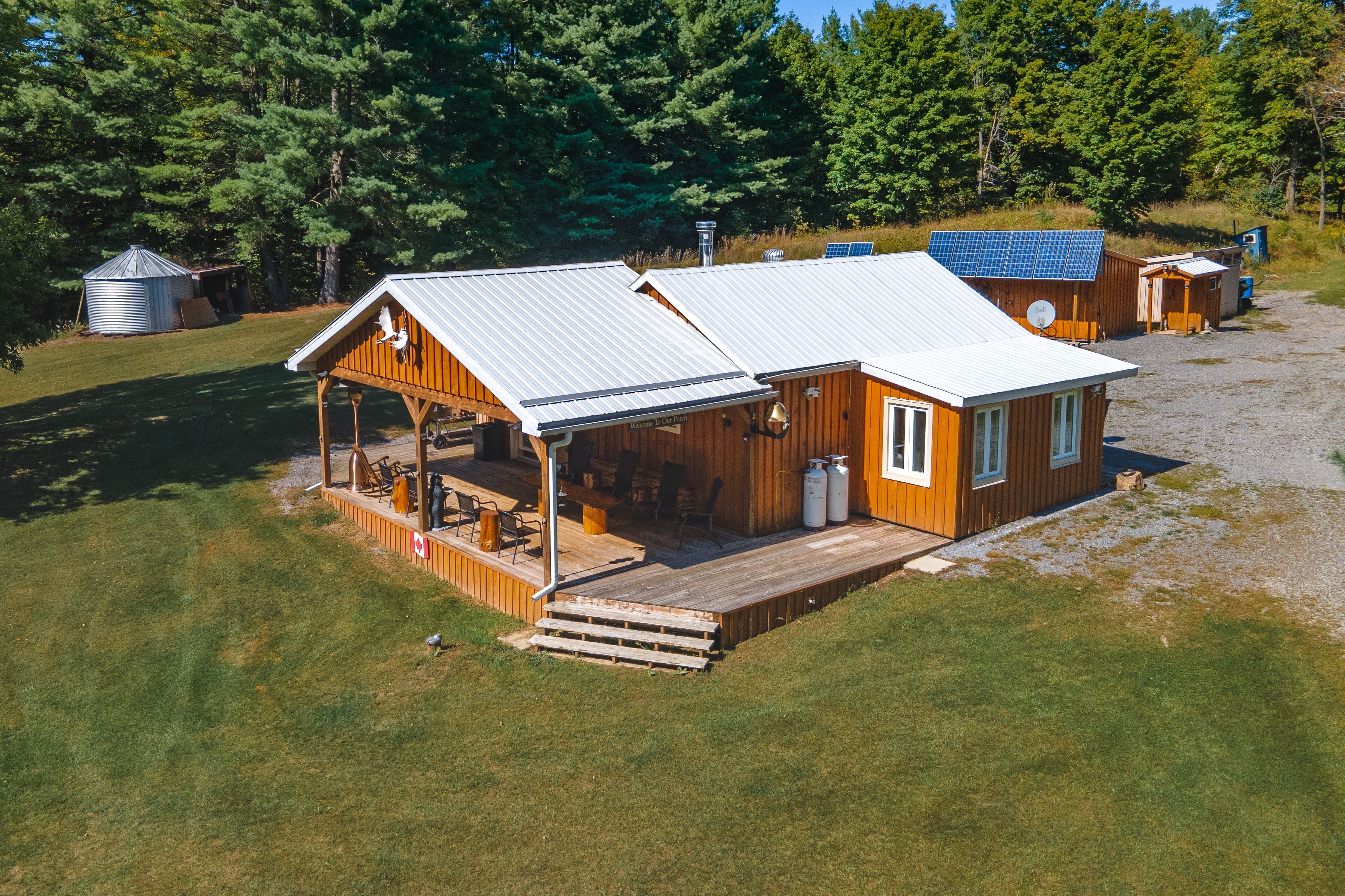 Three cottages! Looking for an off-grid private oasis with acreage? This 69-acre lot, located 2. 5 hrs from ottawa and 3 hrs from toronto, offers 3 unique cabins surrounded by lush forests and a large natural pond that is suitable for canoeing, kayaking and paddle-boarding. These inviting, partly winterized cabins are built with board and batten exterior and cozy interiors that will make any guest feel comfortable throughout the summer, spring, and fall months. The main cabin, built in the early 1900s, offers a nostalgic and spacious bedroom, kitchen and living/dining area that is equipped with a wood stove for the colder months, and a sitting area with stunning natural lighting and views. Built in the 70s, the bunkhouse has an open concept living and kitchen area heated by a wood stove, a bedroom, an additional room that can be used for storage or recreation, and an outdoor deck that is perfect for gatherings and entertainment. The 4-year-old bunkie has insulated spray foam walls and floor, an outdoor fire pit and shower, indoor propane fireplace, two bedrooms, and a family room with loft space looking over the main floor of the cabin. Property is being sold furnished. Offers welcome anytime. This property has three outhouse buildings and two outdoor showers.