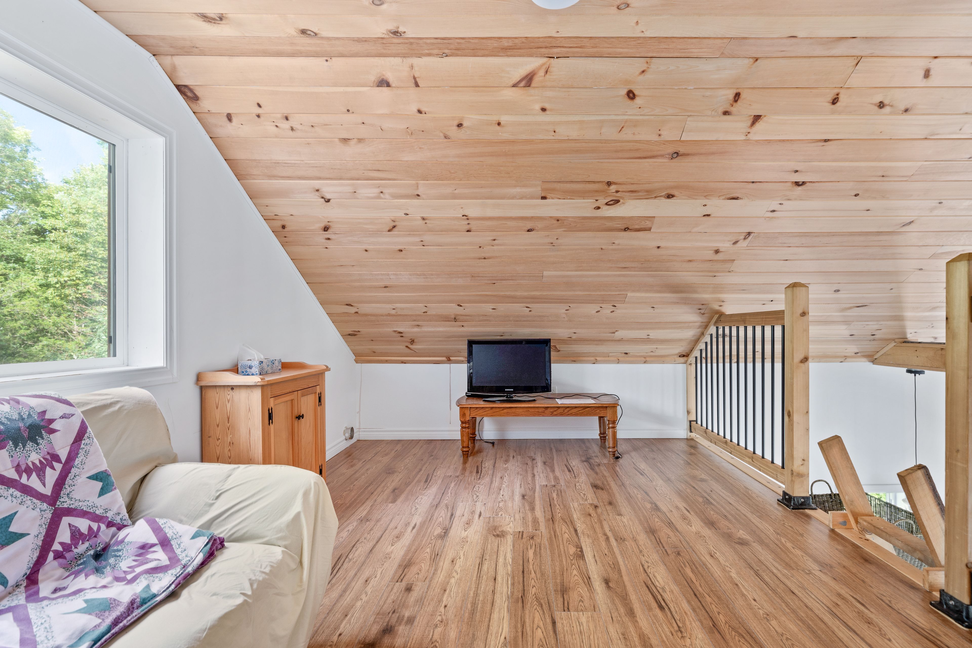 • Bunkhouse offers cozy living area, outdoor deck for entertainment.