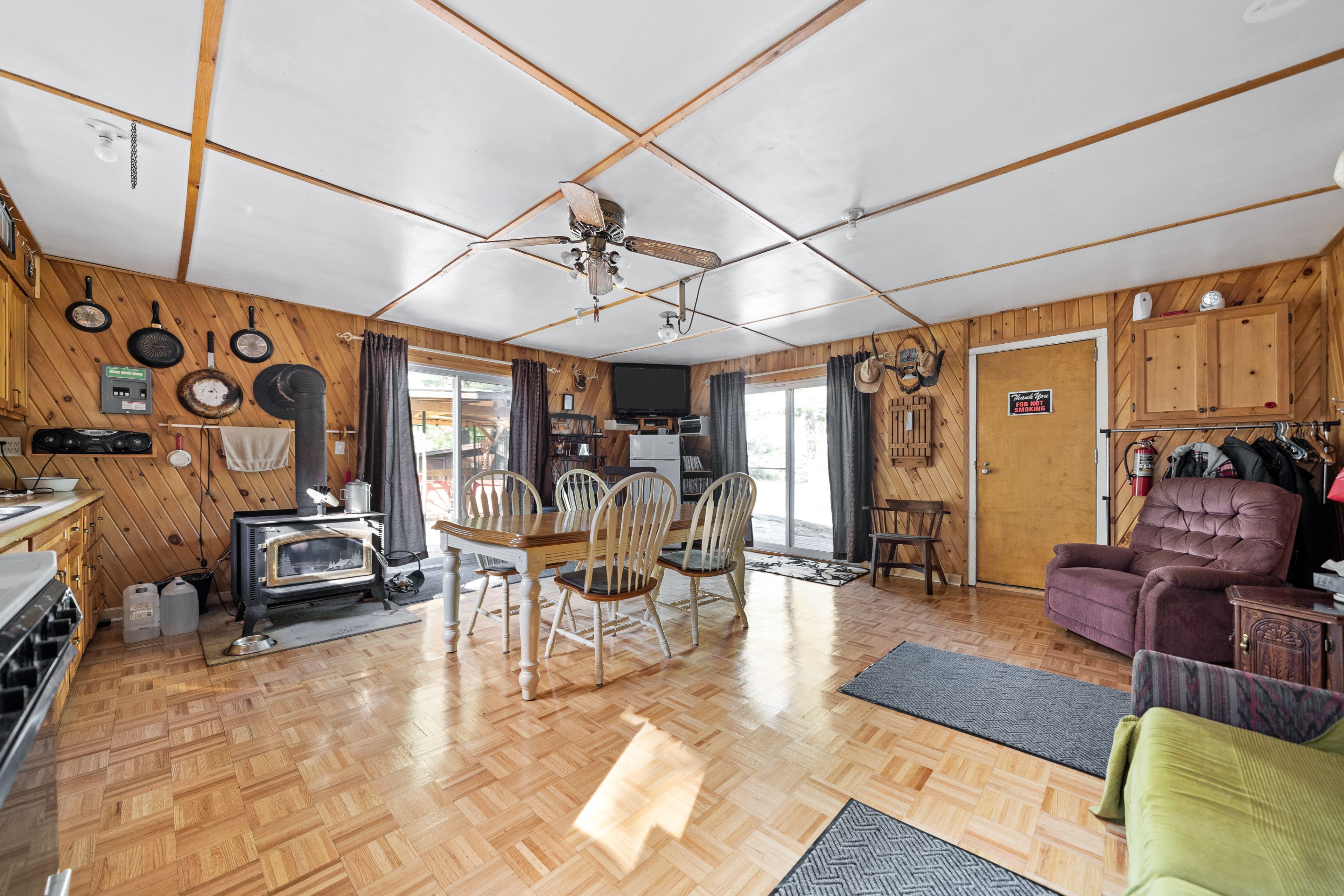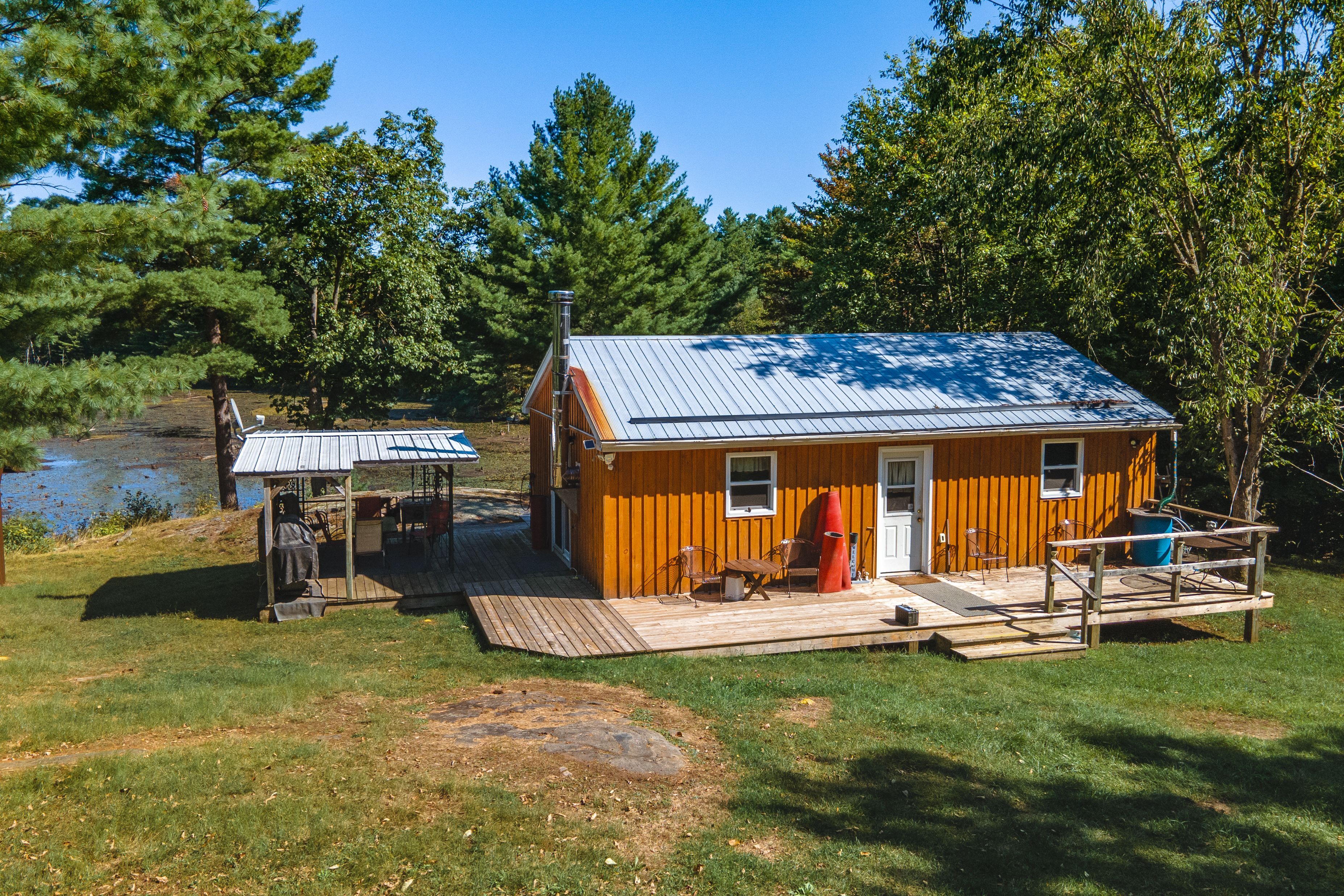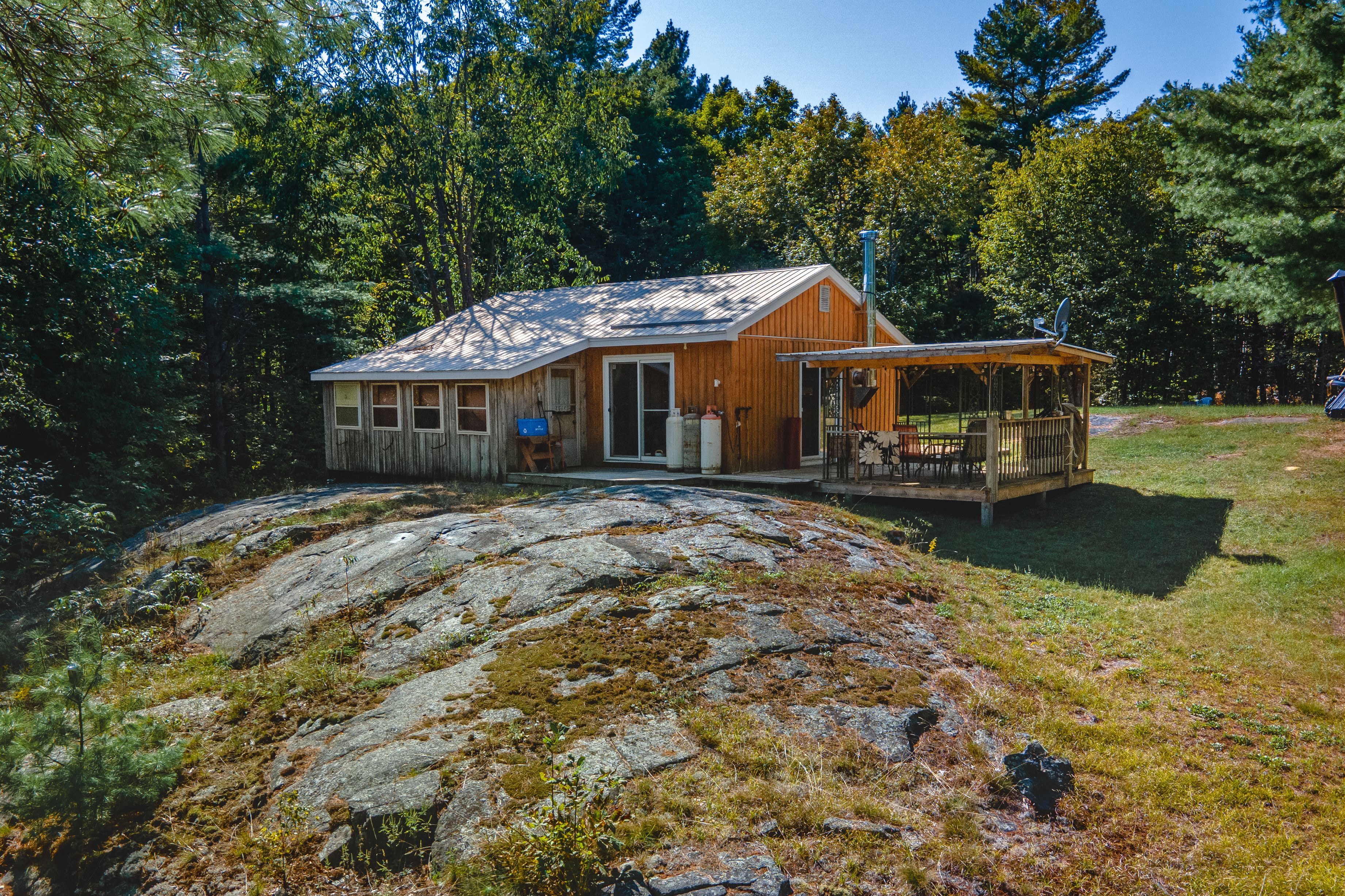 Three cottages! Looking for an off-grid private oasis with acreage? This 69-acre lot, located 2. 5 hrs from ottawa and 3 hrs from toronto, offers 3 unique cabins surrounded by lush forests and a large natural pond that is suitable for canoeing, kayaking and paddle-boarding. These inviting, partly winterized cabins are built with board and batten exterior and cozy interiors that will make any guest feel comfortable throughout the summer, spring, and fall months. The main cabin, built in the early 1900s, offers a nostalgic and spacious bedroom, kitchen and living/dining area that is equipped with a wood stove for the colder months, and a sitting area with stunning natural lighting and views. Built in the 70s, the bunkhouse has an open concept living and kitchen area heated by a wood stove, a bedroom, an additional room that can be used for storage or recreation, and an outdoor deck that is perfect for gatherings and entertainment. The 4-year-old bunkie has insulated spray foam walls and floor, an outdoor fire pit and shower, indoor propane fireplace, two bedrooms, and a family room with loft space looking over the main floor of the cabin. Property is being sold furnished. Offers welcome anytime. This property has three outhouse buildings and two outdoor showers.