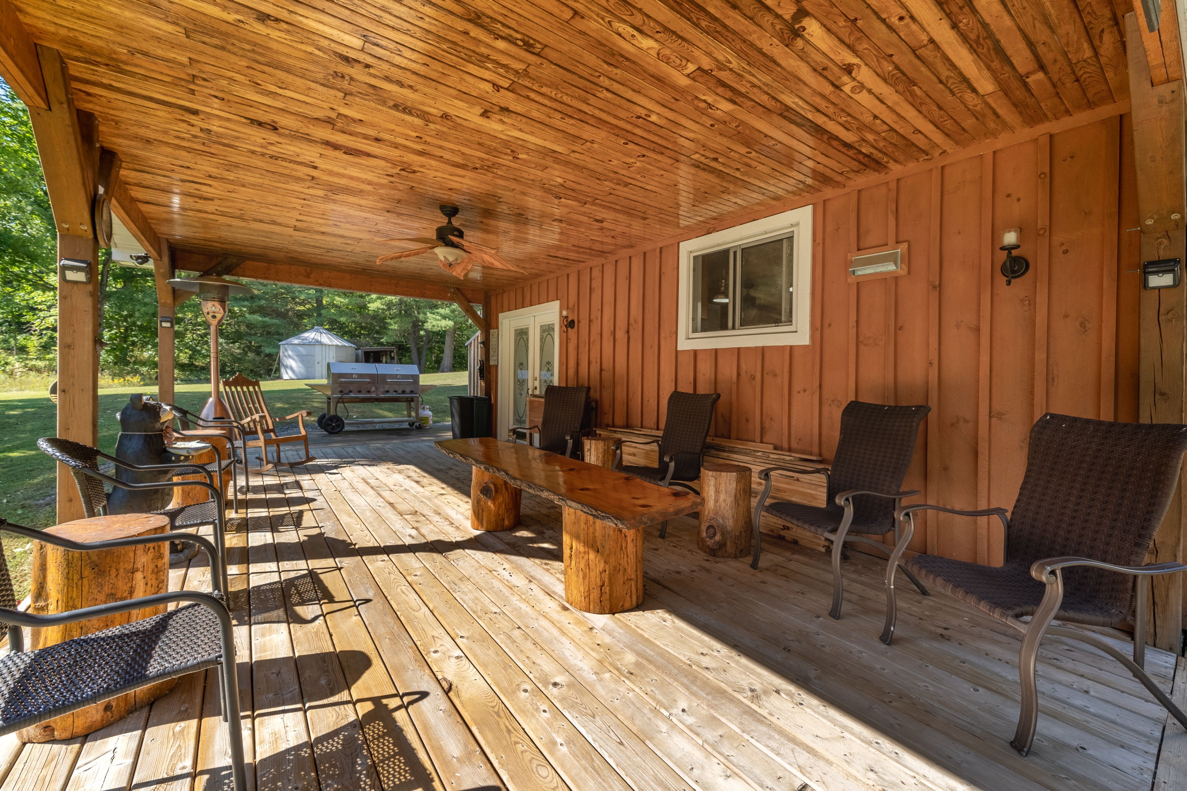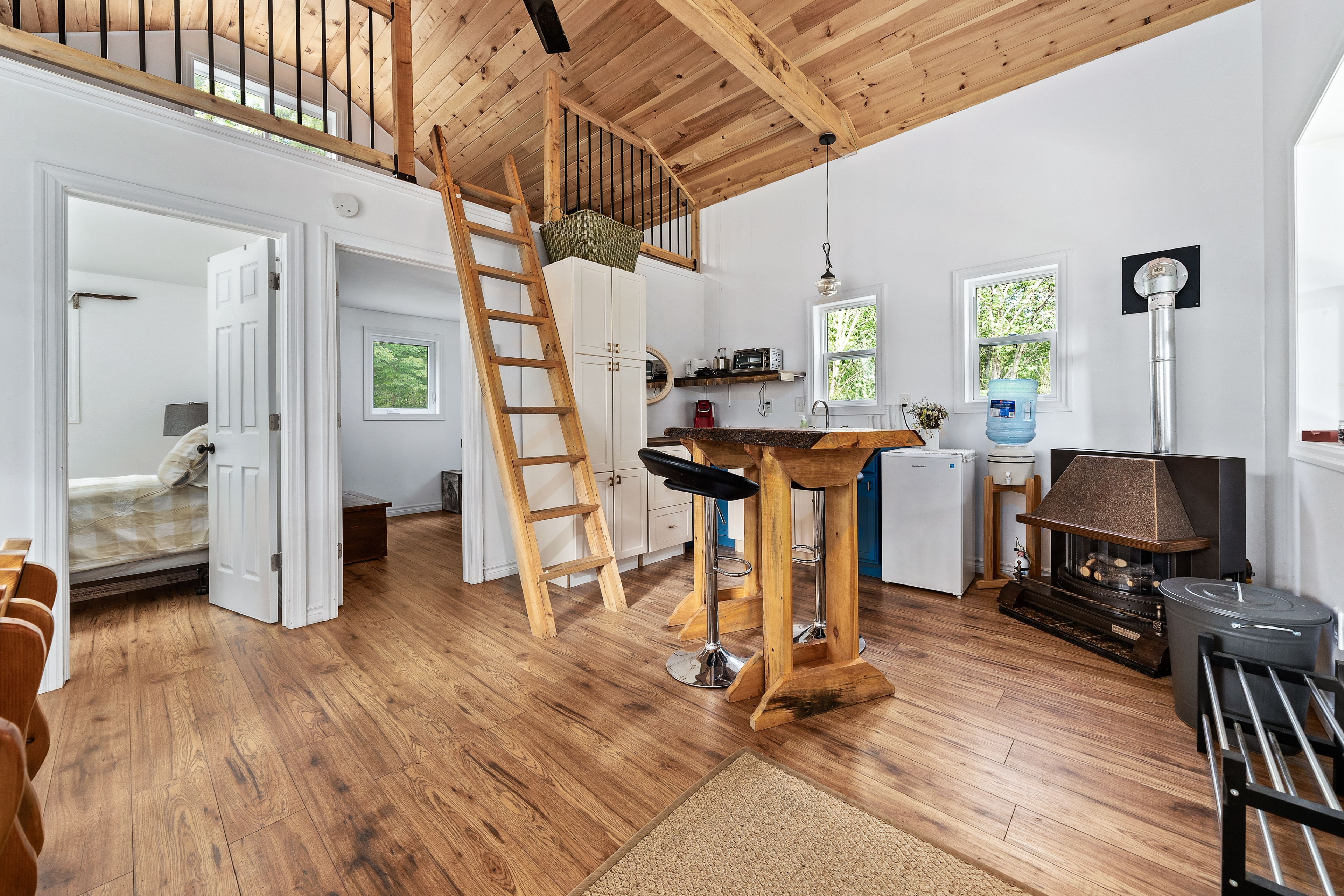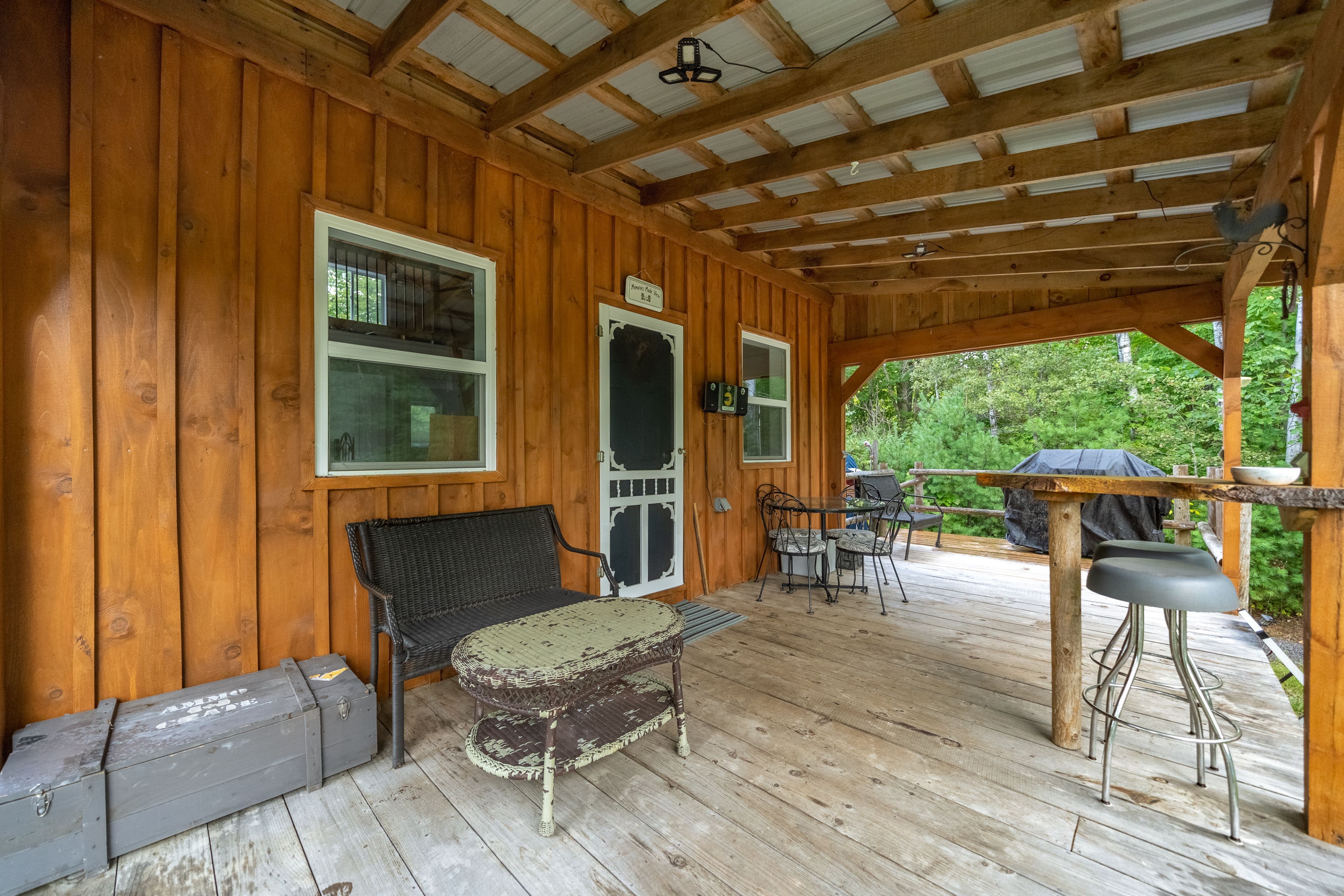 • Bunkie has modern amenities, outdoor fire pit, and cozy family room.