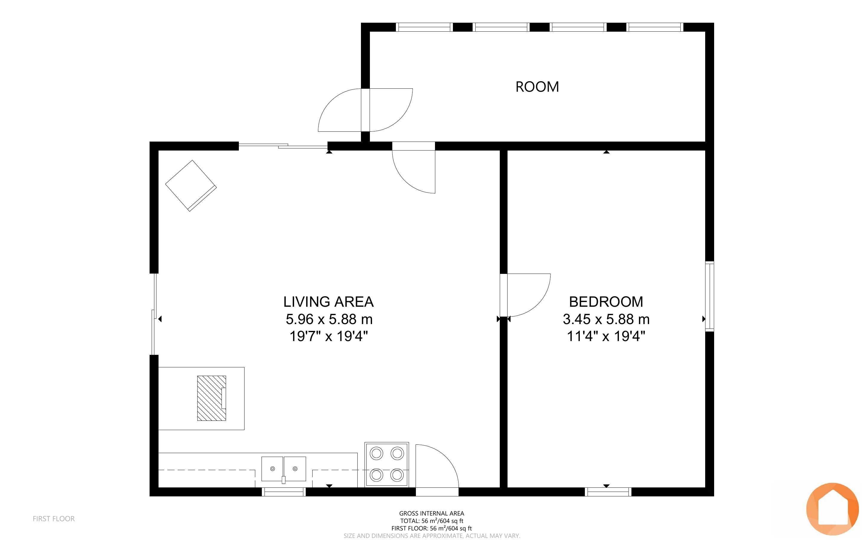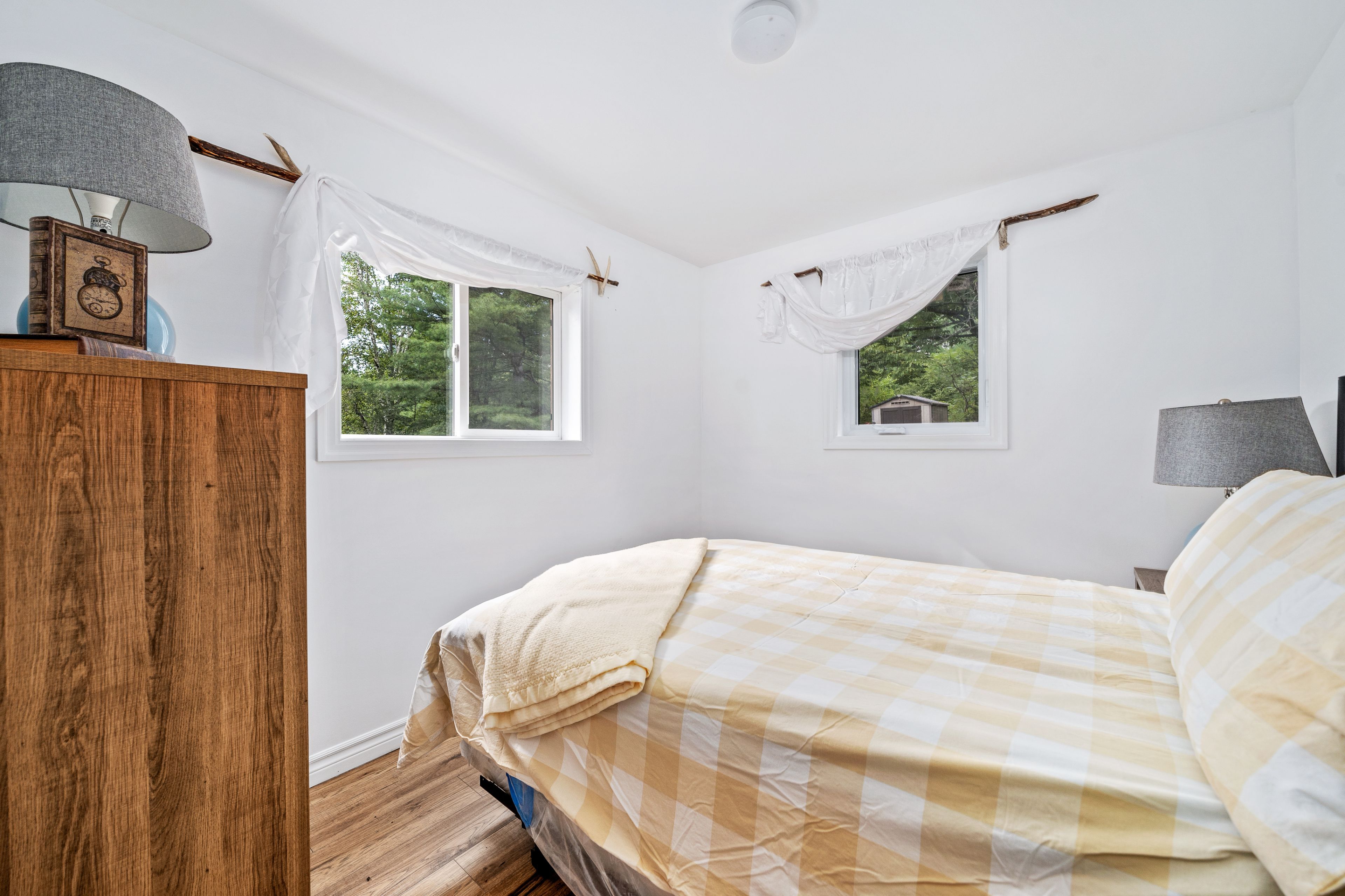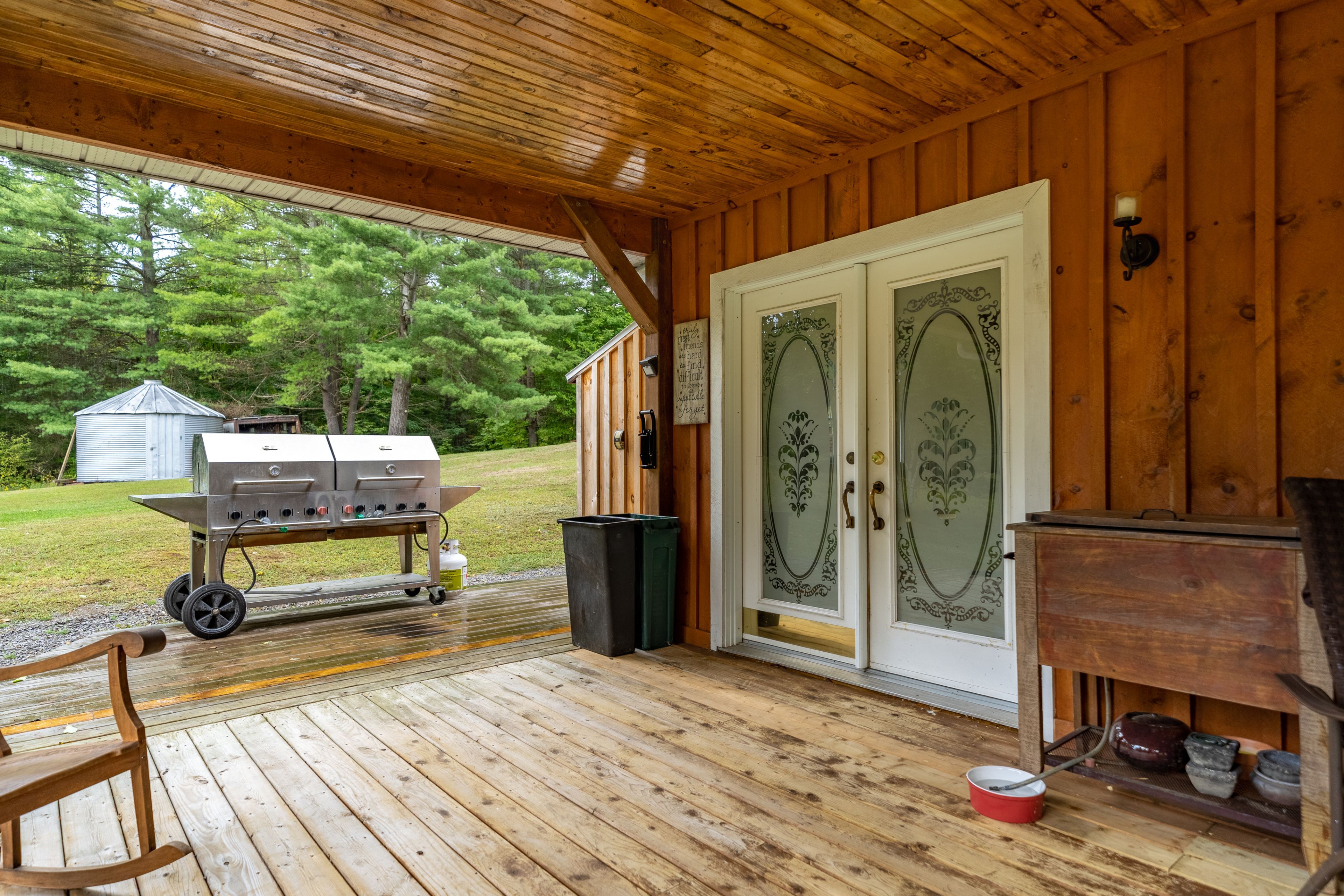 • Bunkie has modern amenities, outdoor fire pit, and cozy family room.