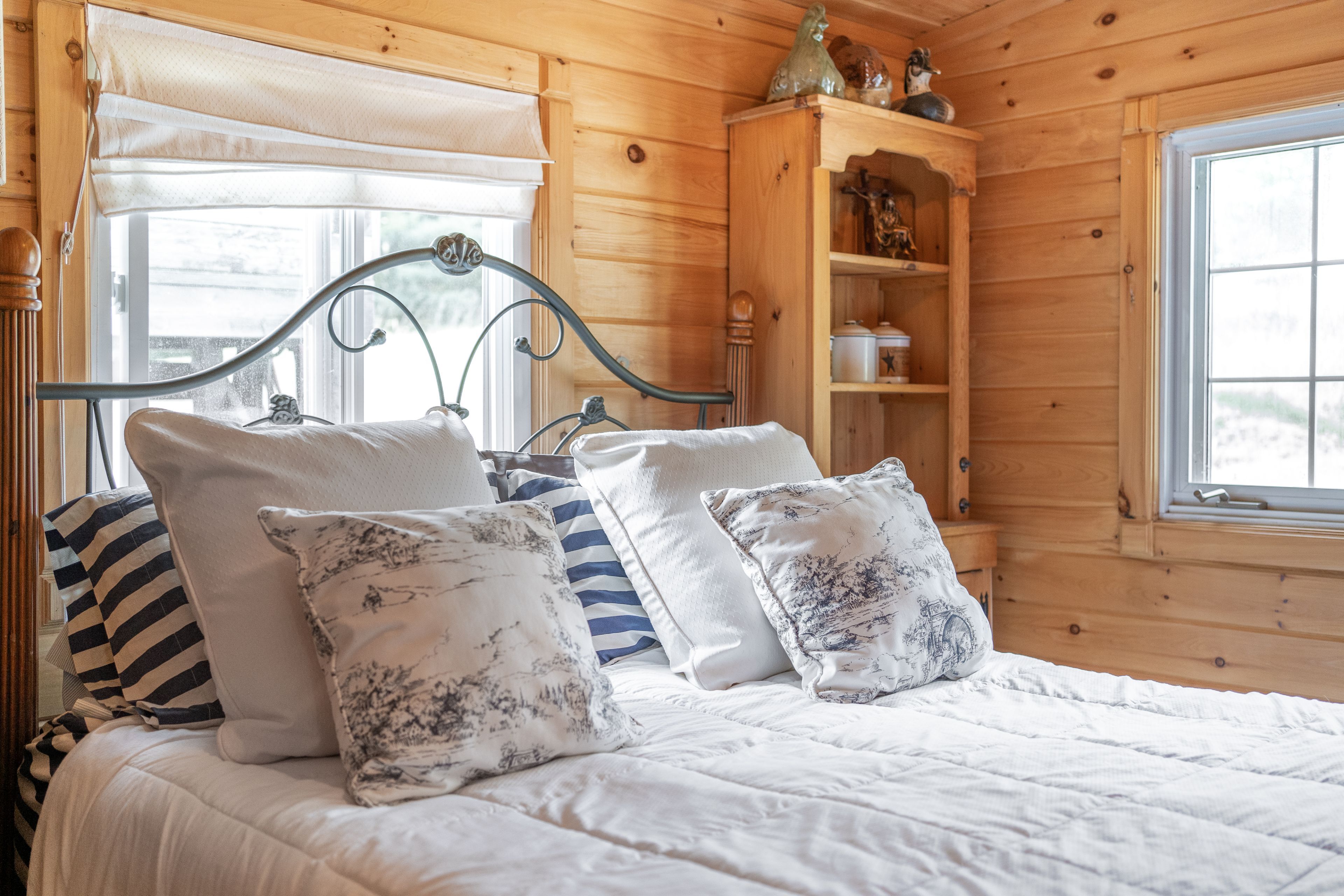 • Main Cabin features spacious living areas and charming vintage style.