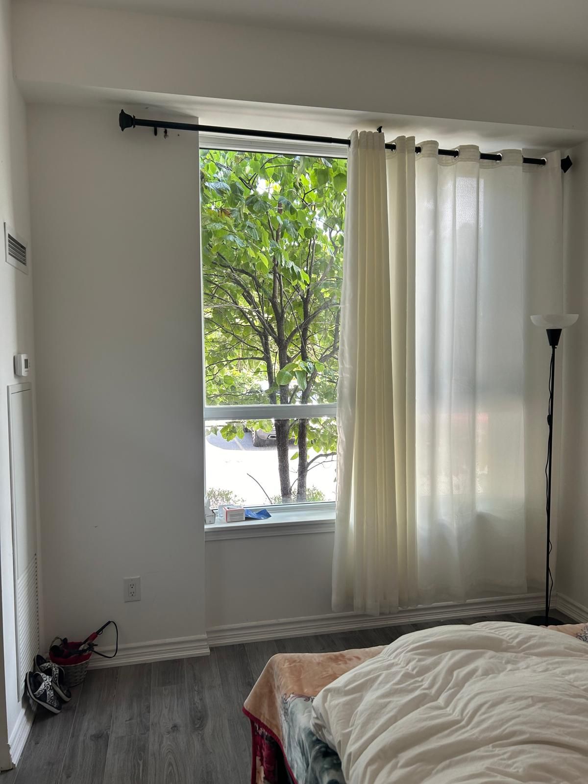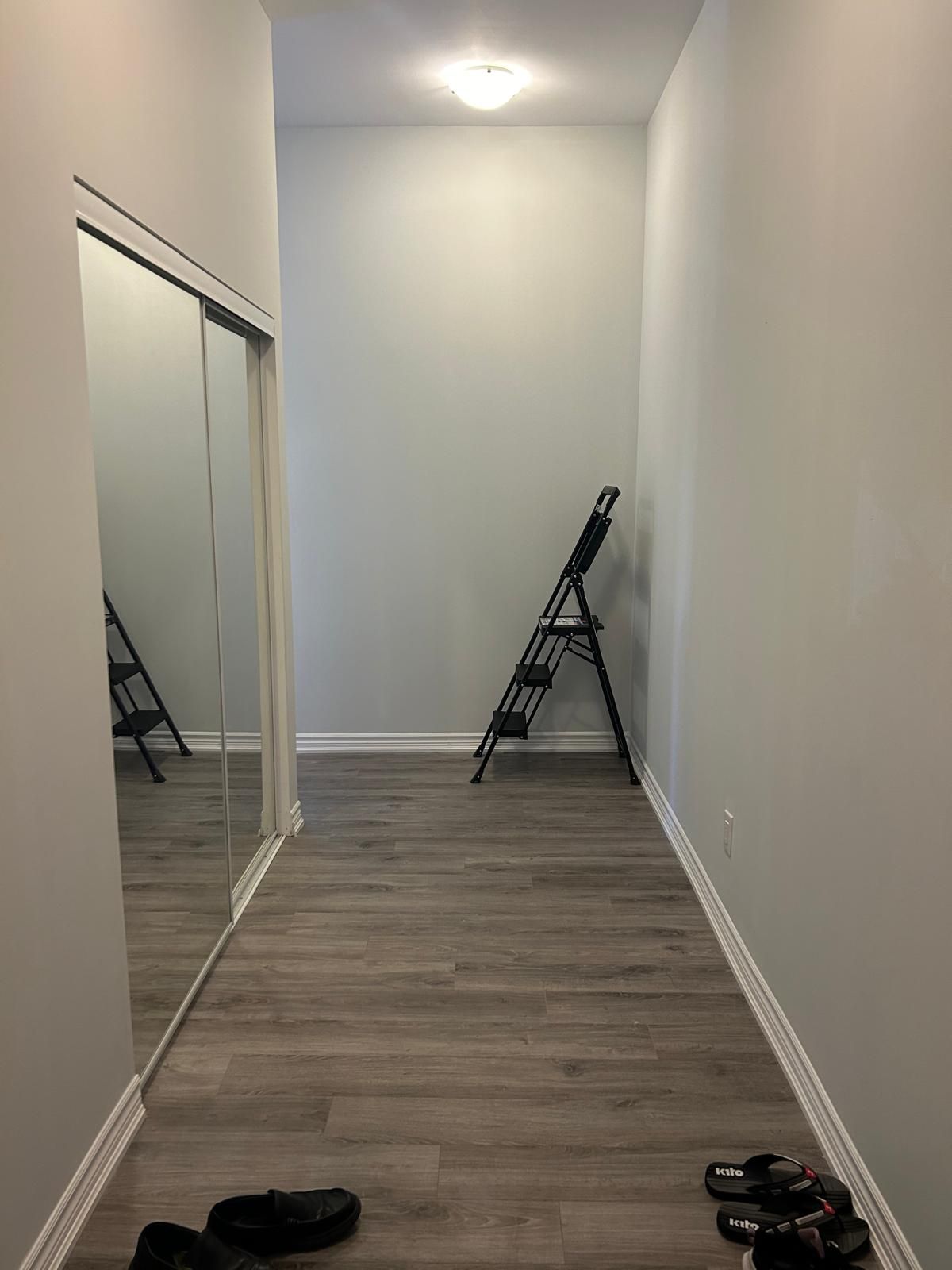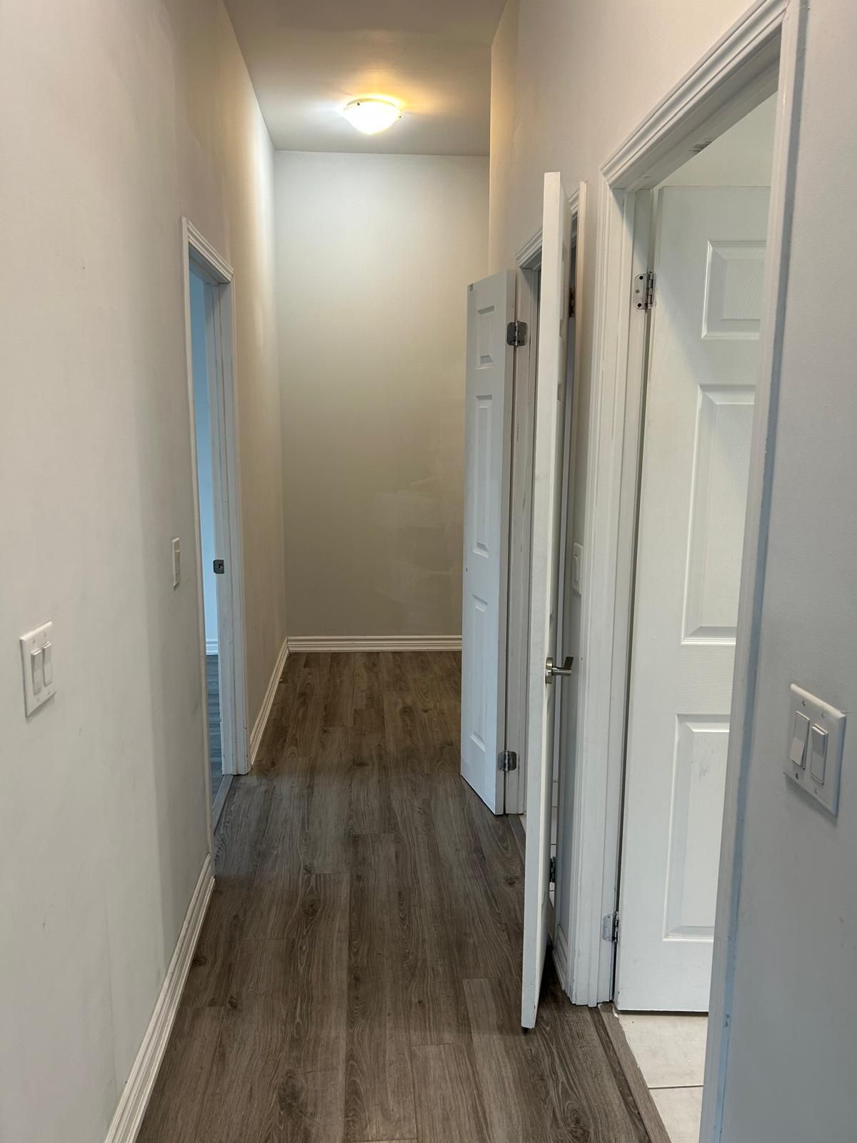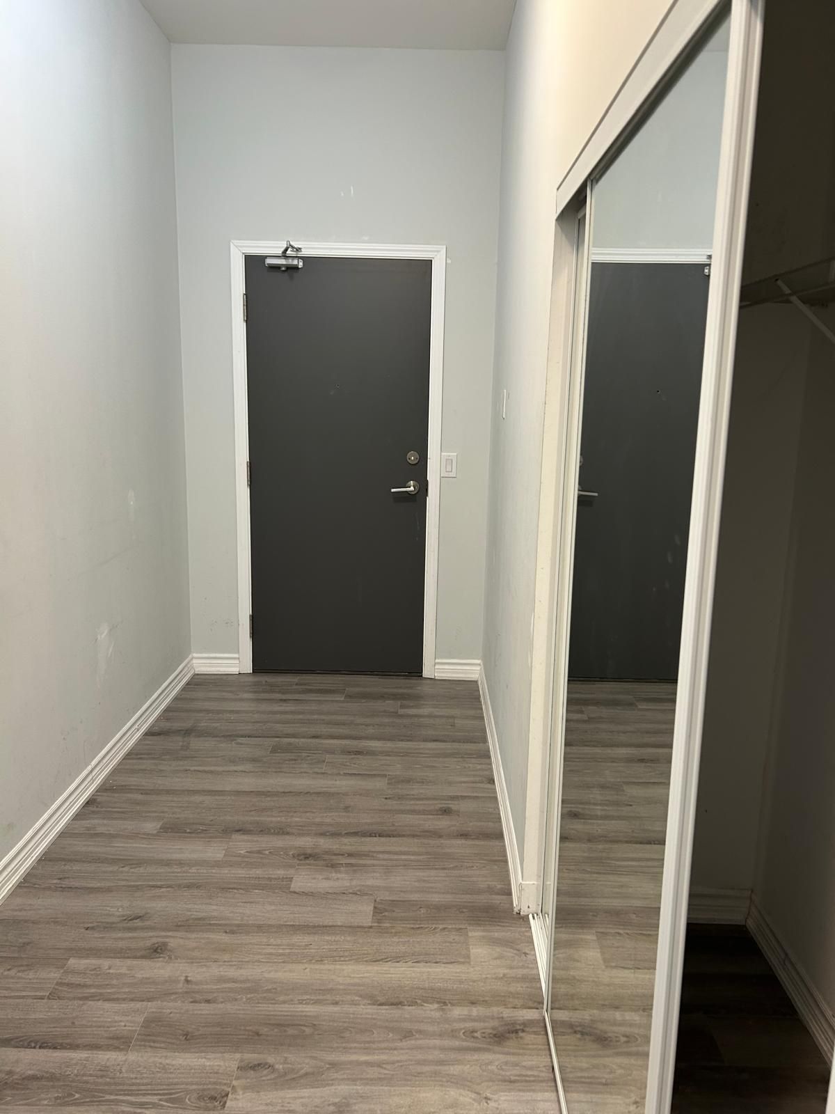 • Open-concept layout with 11-ft ceilings and modern laminate flooring.