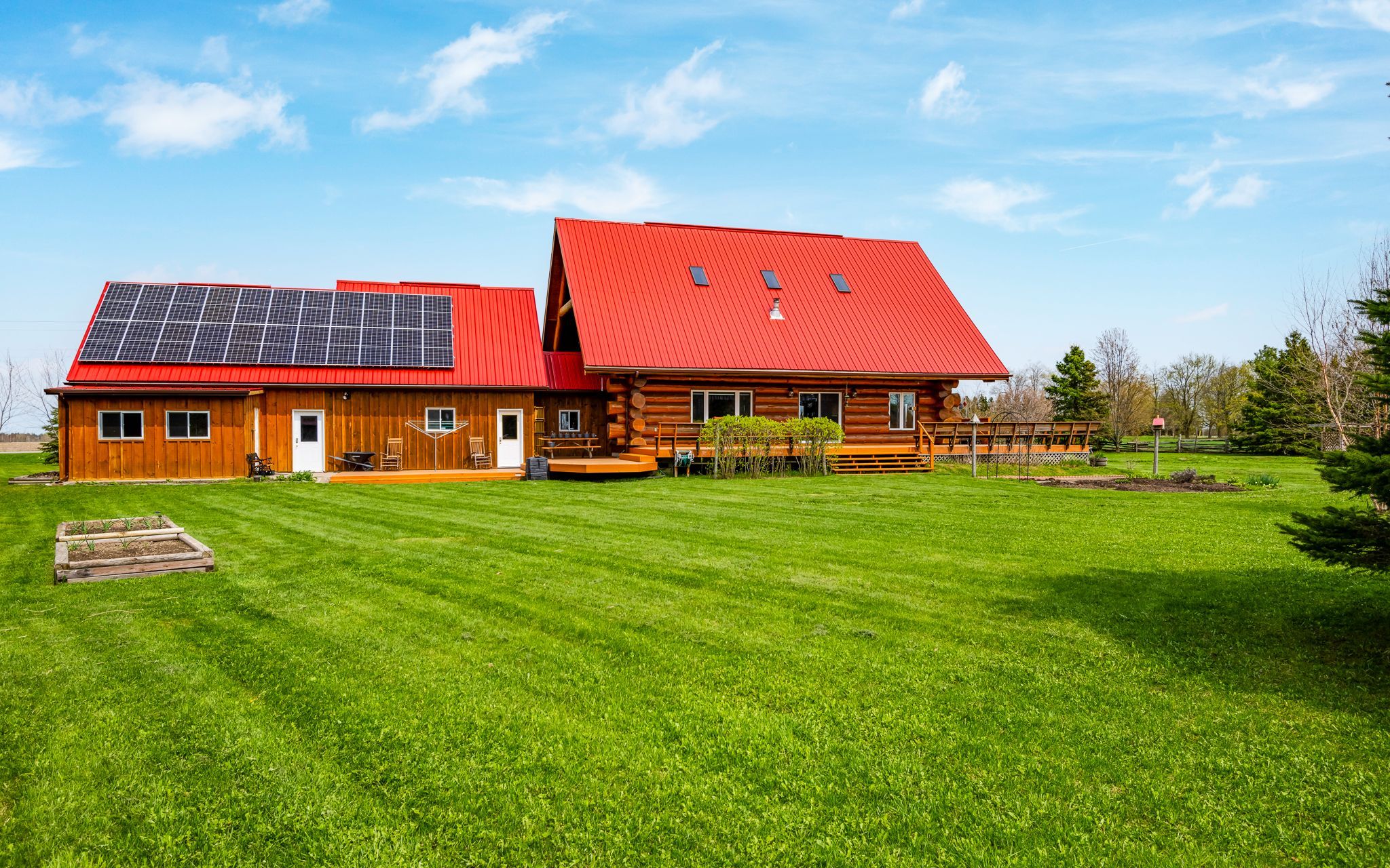One of kind exceptional property!! $$$... Upgrades ! Must be seen ! Hand-scribed log home on 2. 58 acres! Just minutes from shelburne, this stunning 4-bedroom, 2-bathroom custom log home offers the perfect blend of rustic charm and modern luxury. Nestled on a private 2. 58-acre lot, it promises sweeping views, complete privacy, and a tranquil lifestyle for those seeking peace and self-sufficiency. Inside, the warmth of the home is immediately apparent. Soaring vaulted ceilings and an open-concept layout create a bright, airy atmosphere, while a loft overlooking the living room enhances the sense of openness. Large windows flood the space with natural light and showcase the intricate craftsmanship of the hand-scribed logs that make this home truly unique. Built for comfort and efficiency, this home features natural gas heating, a cozy wood stove, a two-oven gas range, and a geothermal water furnace for eco-friendly living. A solar energy system in the garage helps reduce utility costs and minimize your carbon footprint, while a generator and dual sump pumps provide added peace of mind. Step outside to your own private sanctuary. Three levels of composite decking and a fenced backyard provide panoramic views of lush gardens and a sprawling lawn filled with mature perennials. Established fruit trees including apple and pears, rhubarb, along with raised garden beds, offer the perfect space to grow your own food and embrace a sustainable lifestyle. The beautifully landscaped grounds also features a six-person hot tub for relaxation, a charming gazebo, and a wraparound deck ideal for sunset dinners or starlit evenings with family and friends. More than just a home, this property is a sanctuary where privacy, nature, and beauty come together.! Experience the peaceful, self-sufficient lifestyle you've always dreamed of!