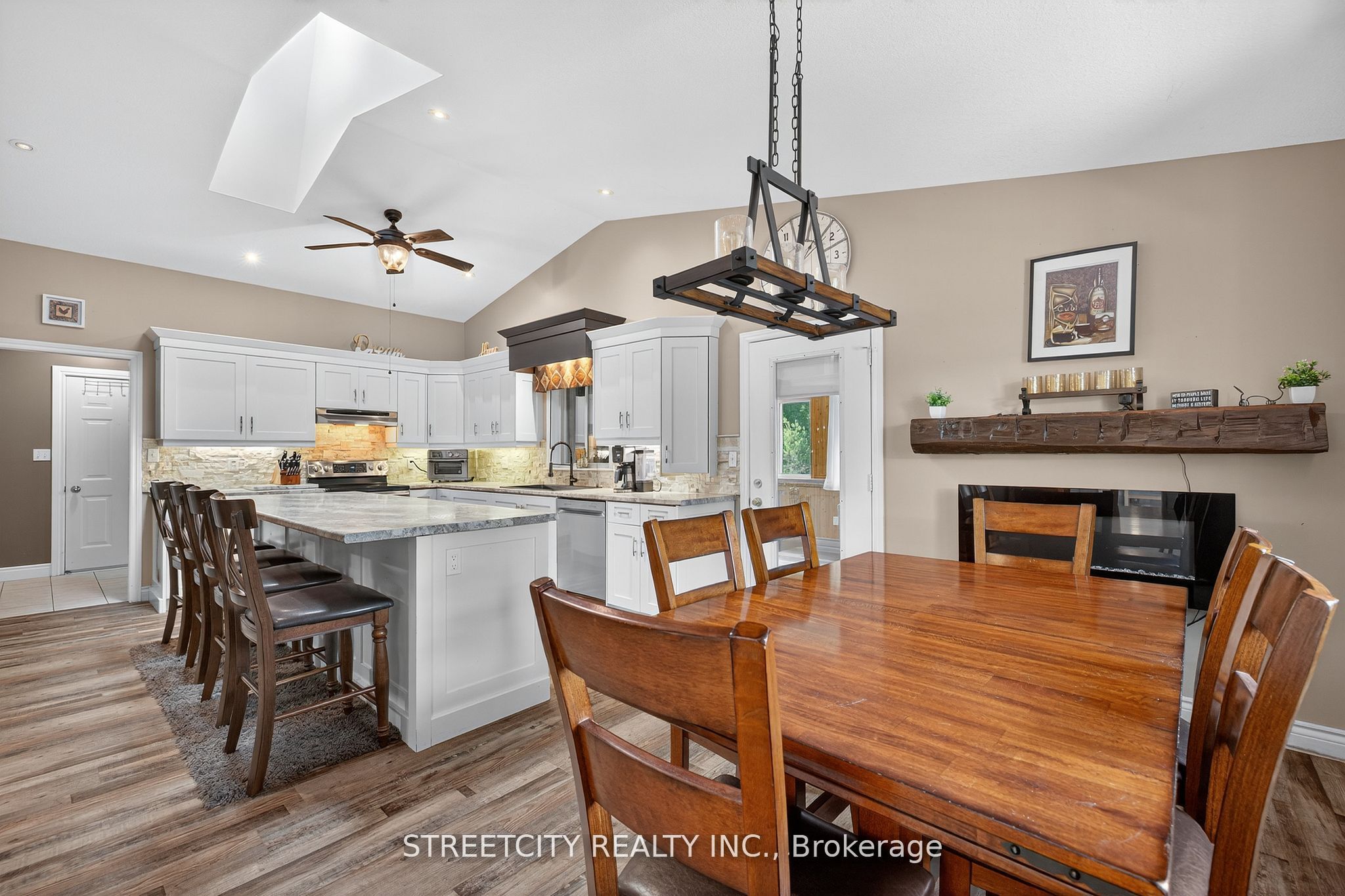 Where urban luxury meets private country calm. Hidden within a secluded setting just minutes from the 401 and airport, this one-of-a-kind estate offers an exceptional blend of city convenience and peaceful retreat-perfect for those who demand both sophistication and privacy. A true standout feature is the extraordinary 3-car garage-an automotive enthusiast's or mechanic's dream. Designed with oversized doors, impressive ceiling height suitable for a hoist, a dedicated mezzanine for additional storage, and a private staircase providing direct access to the fully finished lower level, this space is far more than a garage-it's a fully functional workshop and rare asset seldom found in residential properties. The outdoor living spaces are equally impressive, featuring a private backyard oasis with lush landscaping, multiple decks, an inviting pool, a serene koi pond, and intimate patios-ideal for enjoying quiet moments in nature. Inside, over 3,500 sq. Ft. O finished living space showcases thoughtful architectural details and high-end finishes throughout. Warm and inviting living areas include custom wood beam fireplace mantels, stylish accent walls, and a barn-style door leading into the chef-inspired kitchen. The kitchen is a culinary centerpiece, offering generous workspace, premium appliances, and refined finishes. The expansive primary suite impresses with a cozy fireplace, luxurious details, and a spacious layout. Three full bathrooms and a powder room blend style with everyday functionality. The fully finished lower-level in-law suite-accessible from the main floor, directly from the garage, or through a private exterior entrance-provides outstanding flexibility for multi-generational living or income potential. This exceptional property delivers refined living in a tranquil setting, offering the serenity of a country estate with all the advantages of city life-anchored by a truly remarkable garage that sets this home apart.